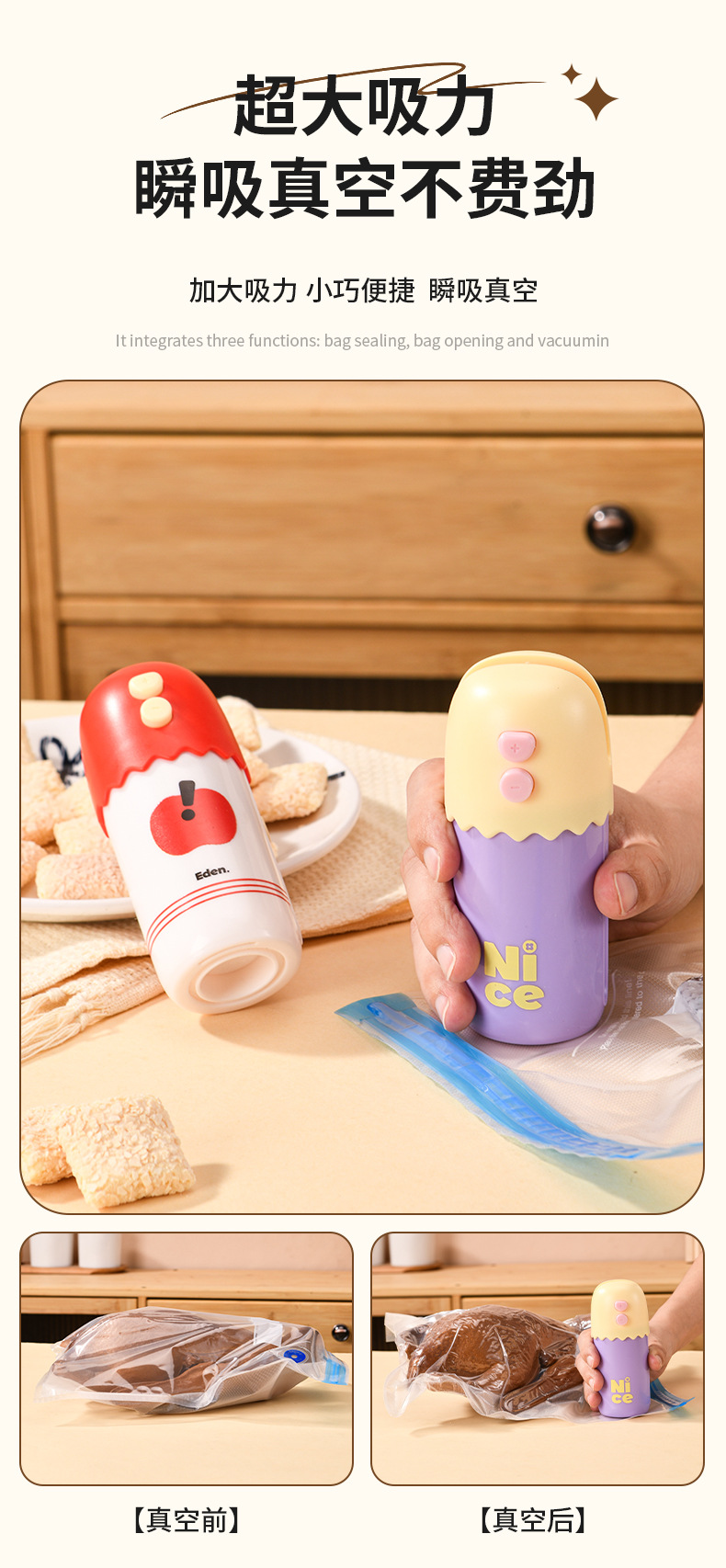 跨境三合一手持充电自动真空封口机保鲜密封塑封机真空机封口机