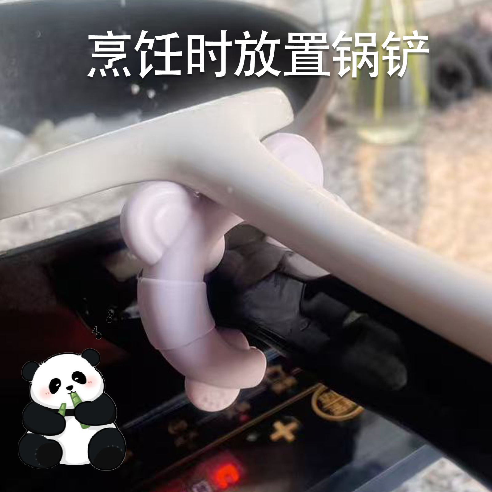 新款熊猫硅胶锅铲架创意多功能置物架防烫防溢厨房用品锅盖架
