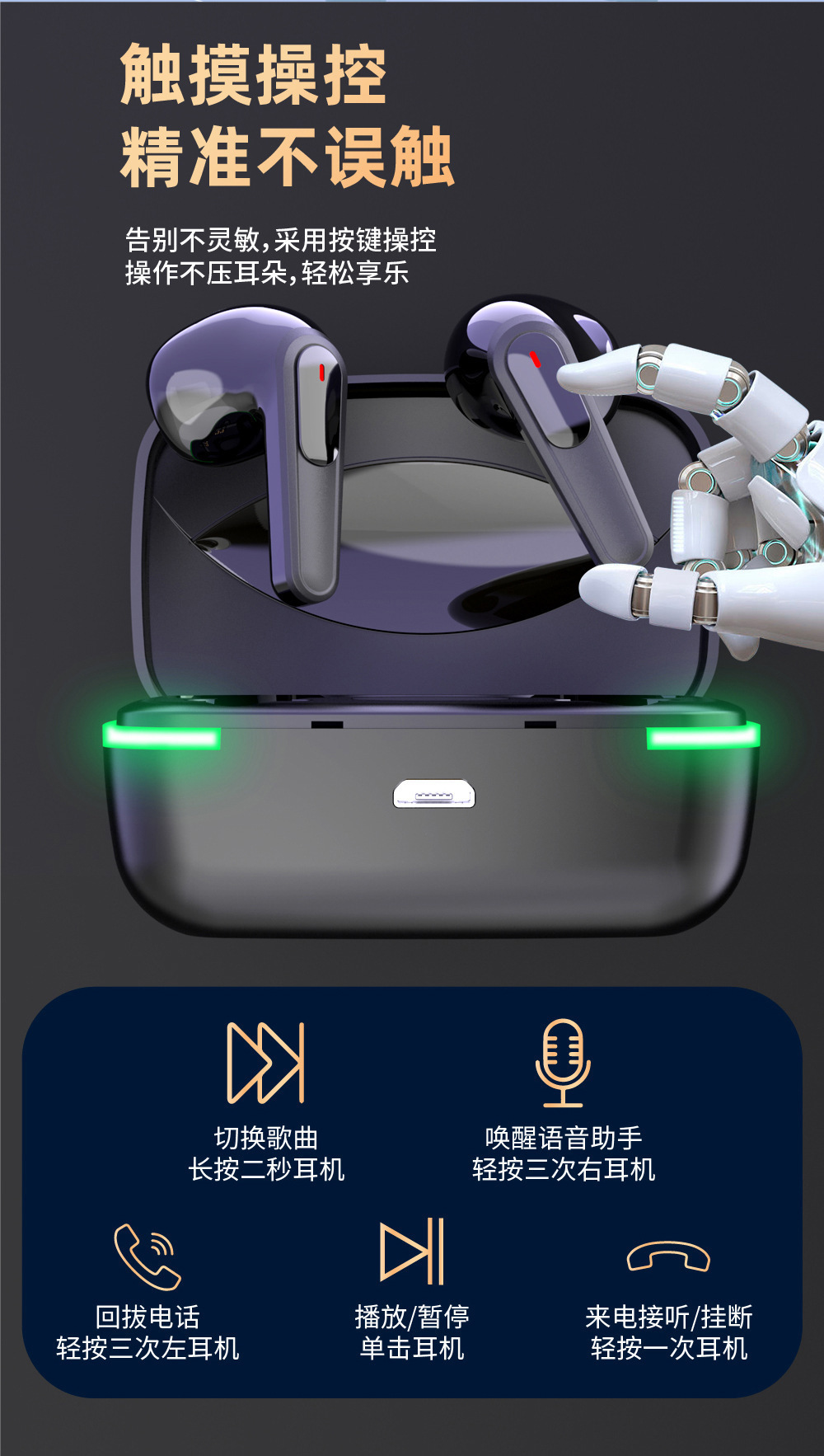 支持接打电话、播放音乐、音量加减、上下曲切换 ,语音唤醒。