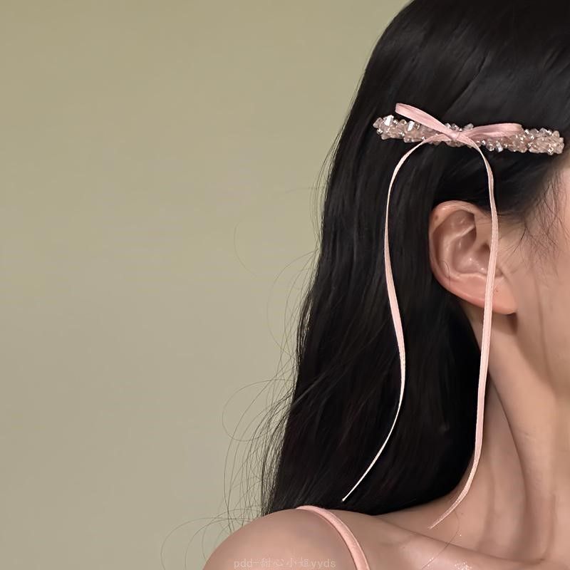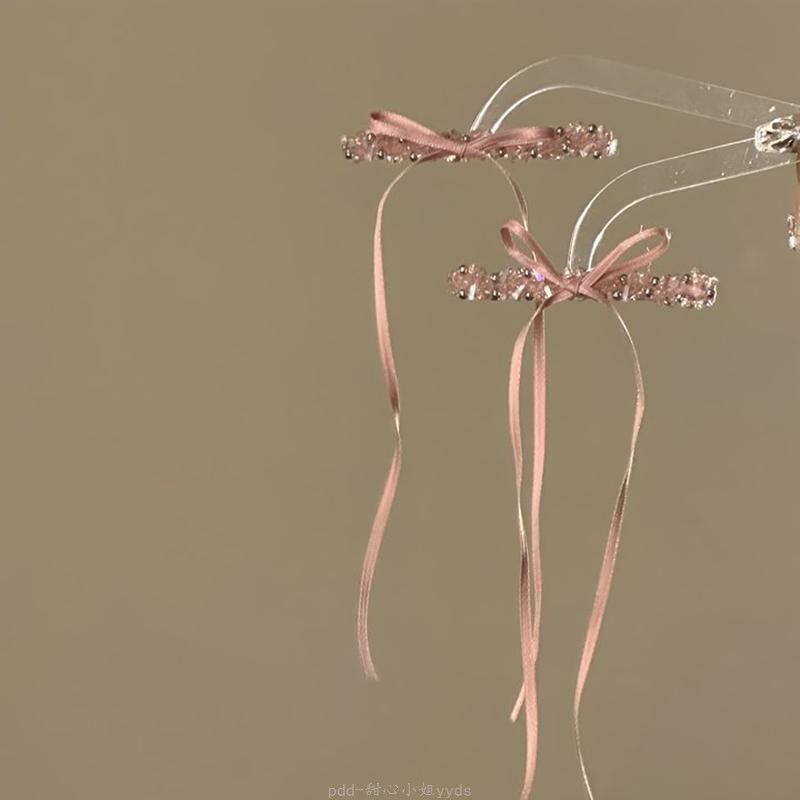 野心家原创【温柔仙】粉色甜美镶钻发夹蝴蝶结丝带侧边夹头饰发卡