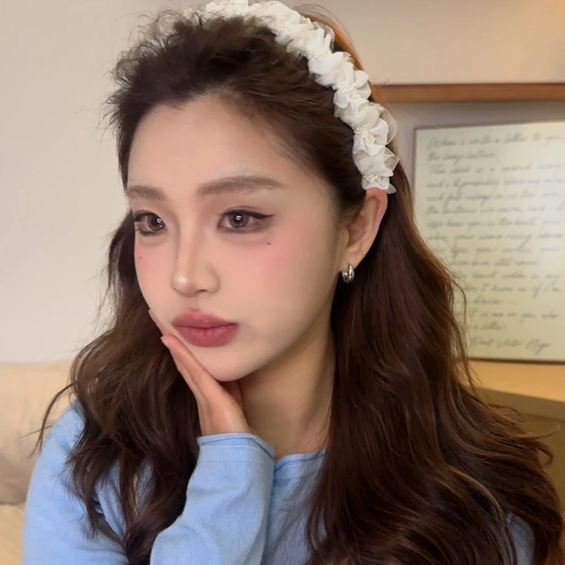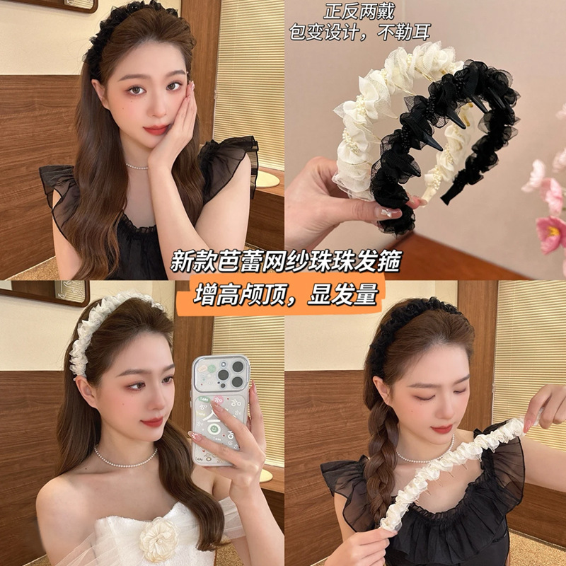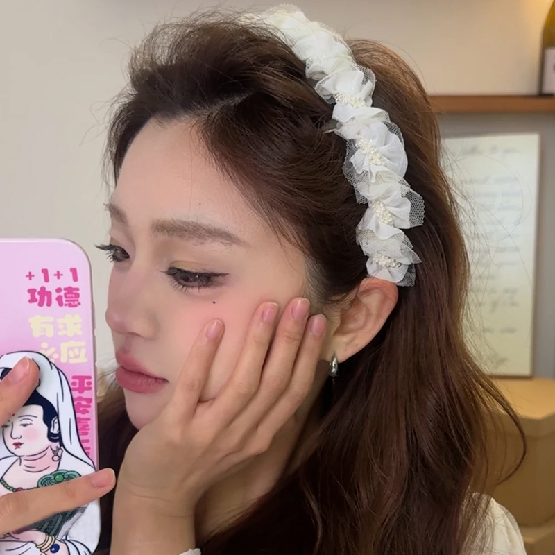 甜美网纱褶皱高颅顶发箍女2025年新款头箍洗脸压发显脸小发卡头饰