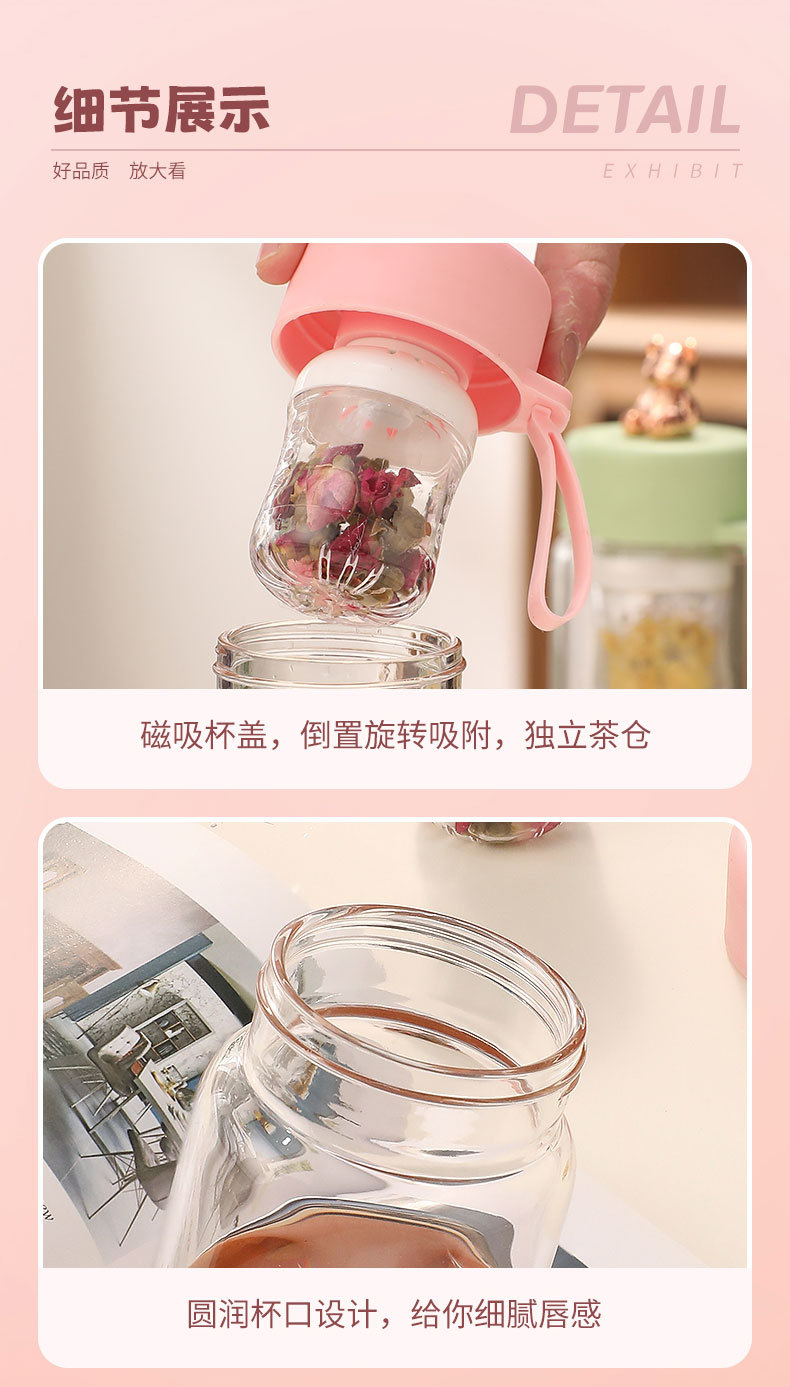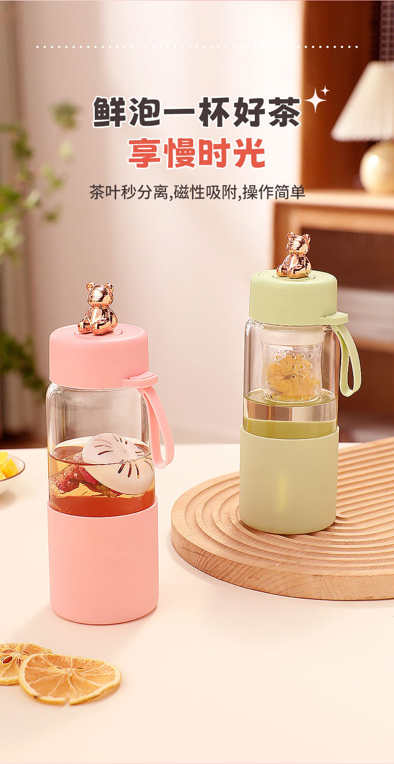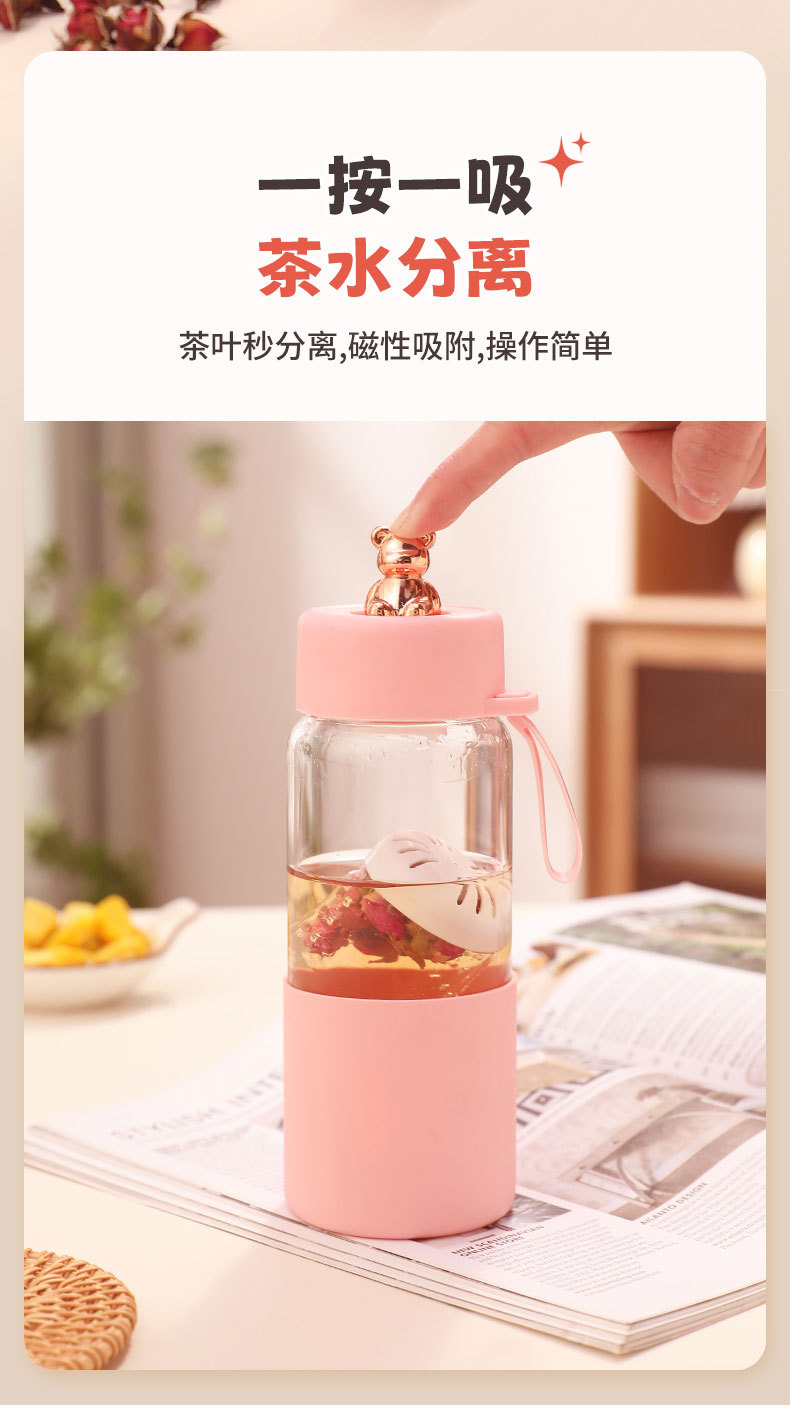 磁弹茶水分离泡茶杯颜值耐高温泡茶玻璃水杯夏季水杯办公室喝水杯