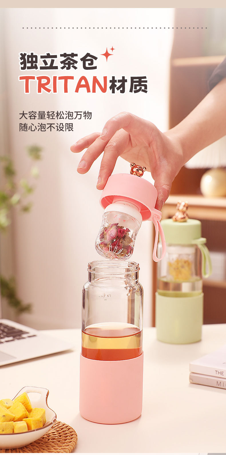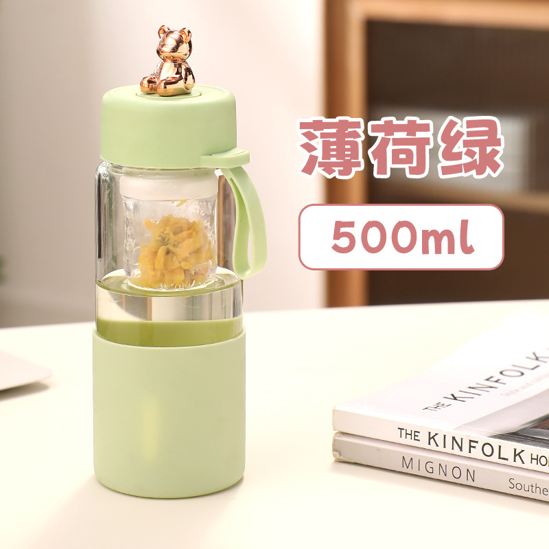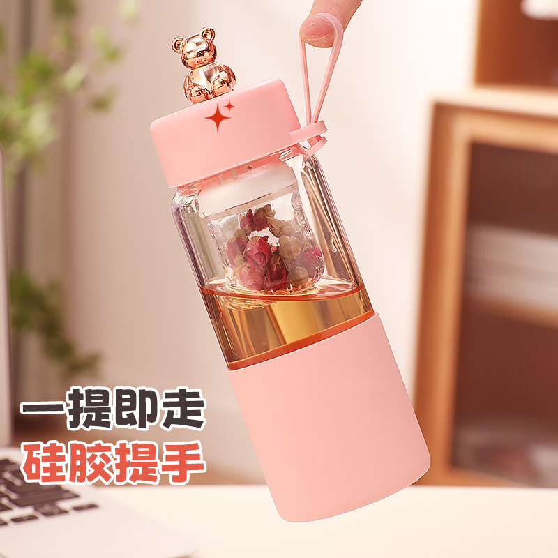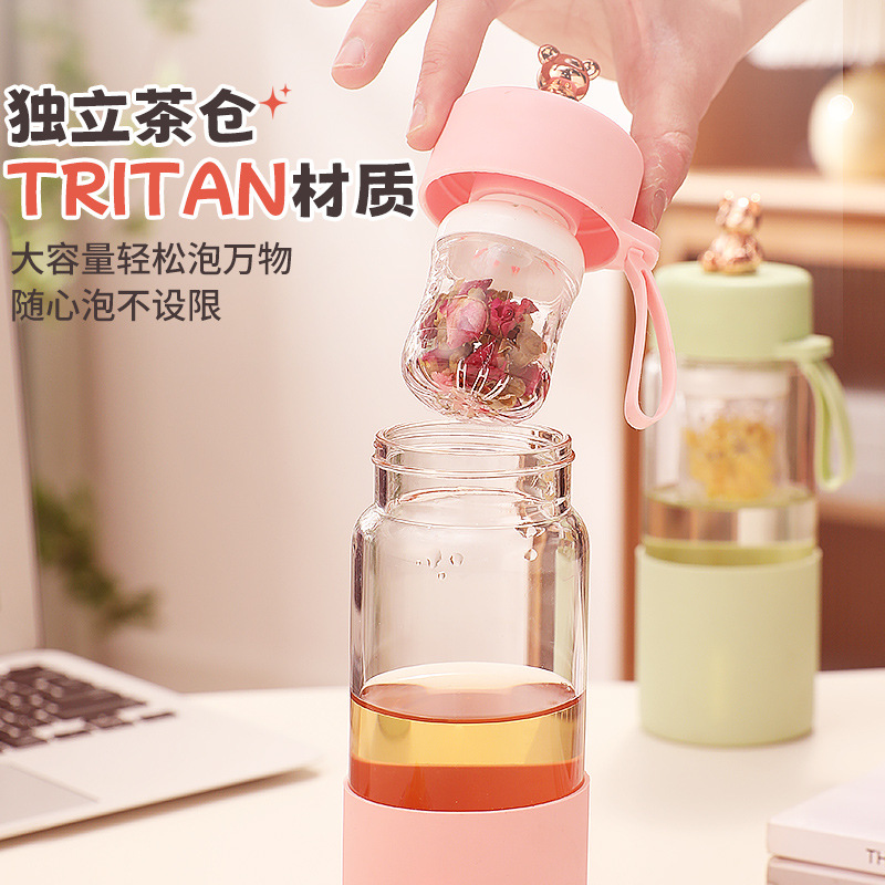 磁弹茶水分离泡茶杯颜值耐高温泡茶玻璃水杯夏季水杯办公室喝水杯