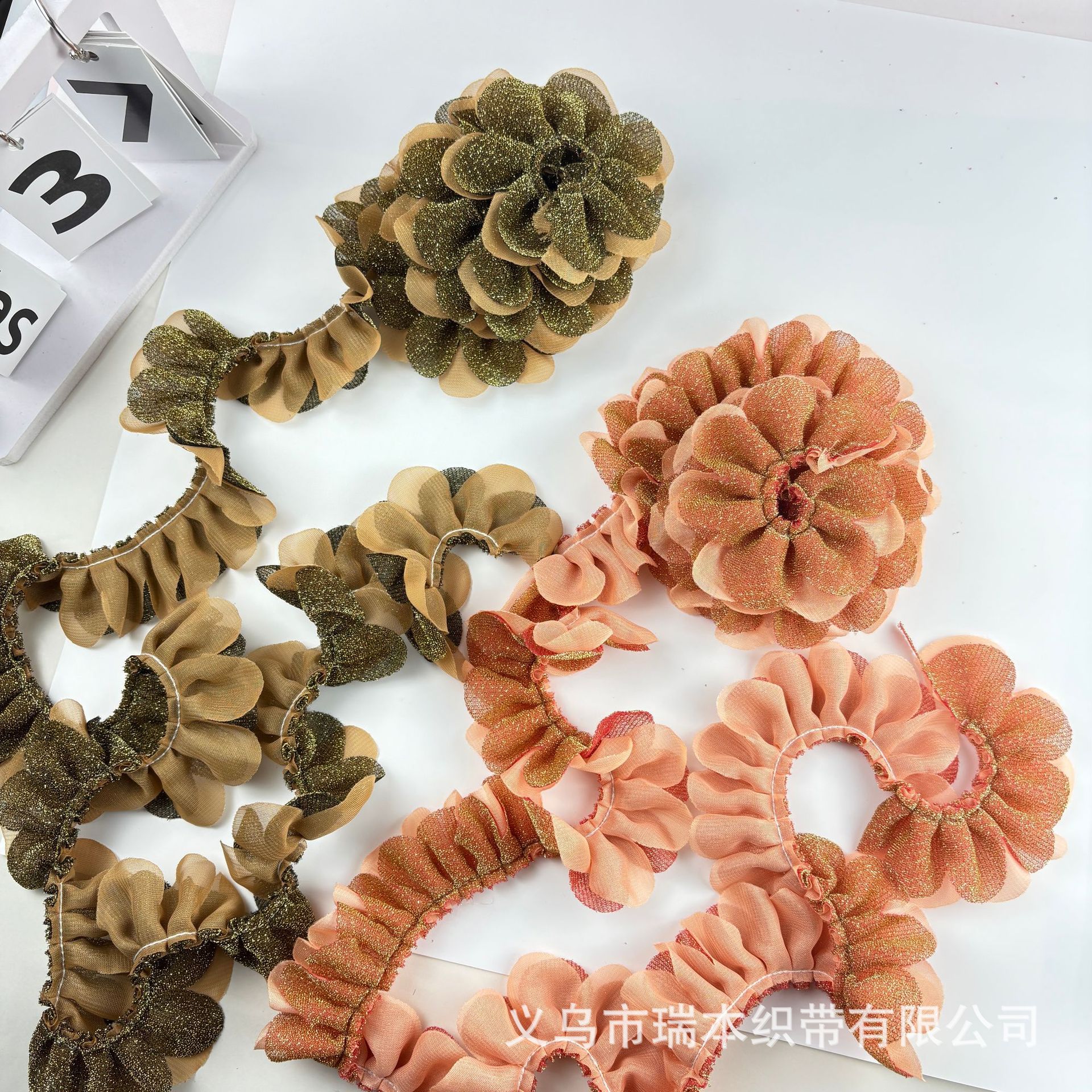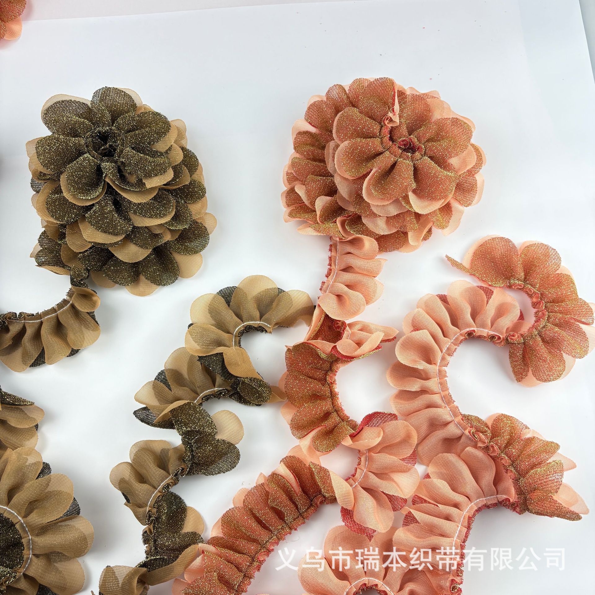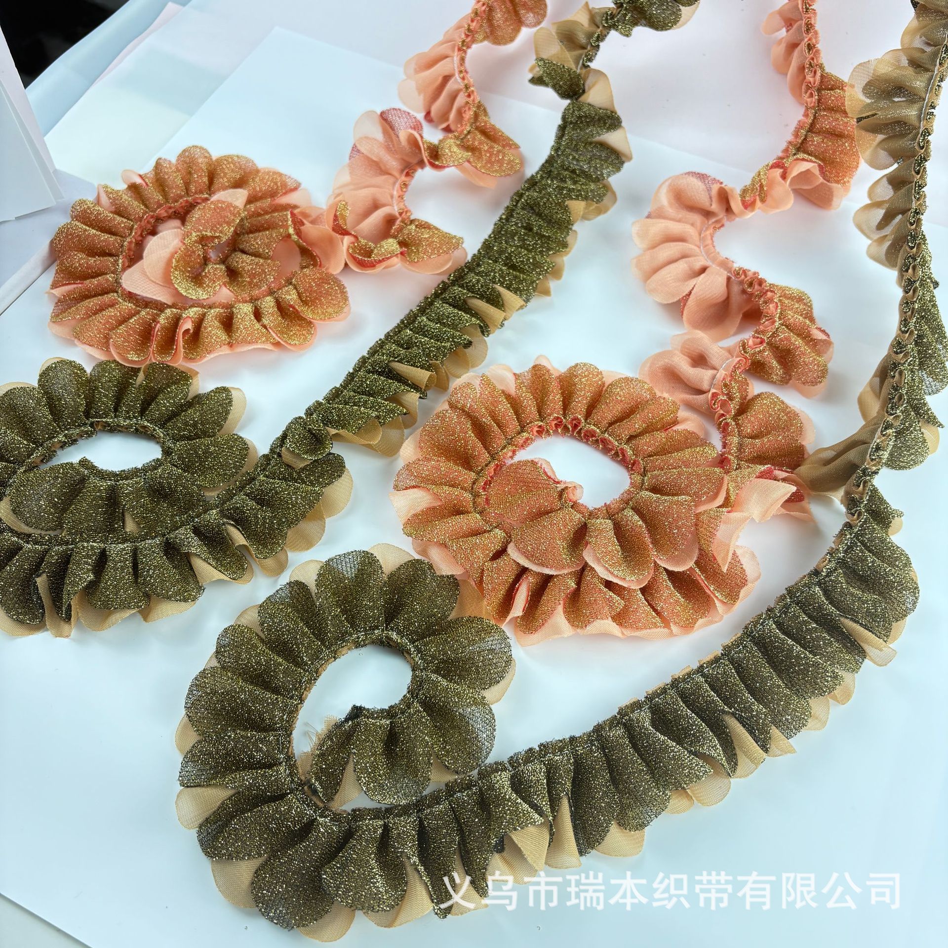 定制双层褶皱花边手纹点布艺波浪花朵织带饰品配件服装辅料 English | 投诉