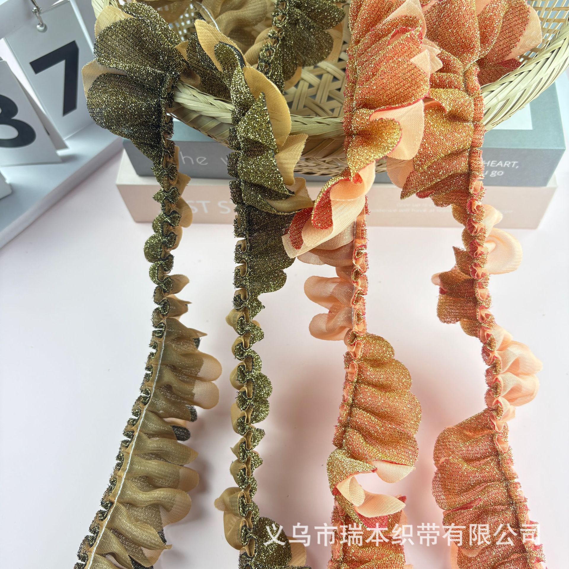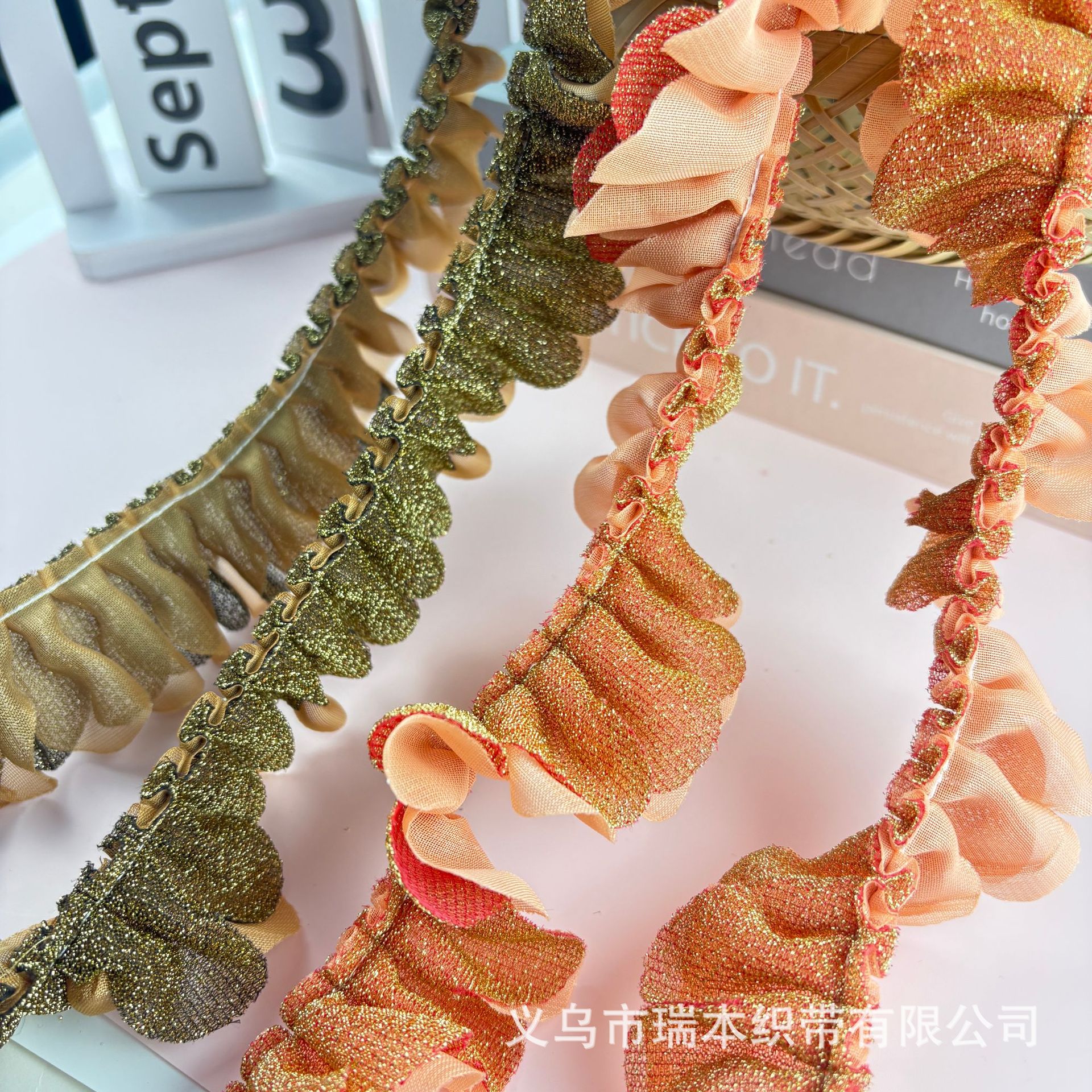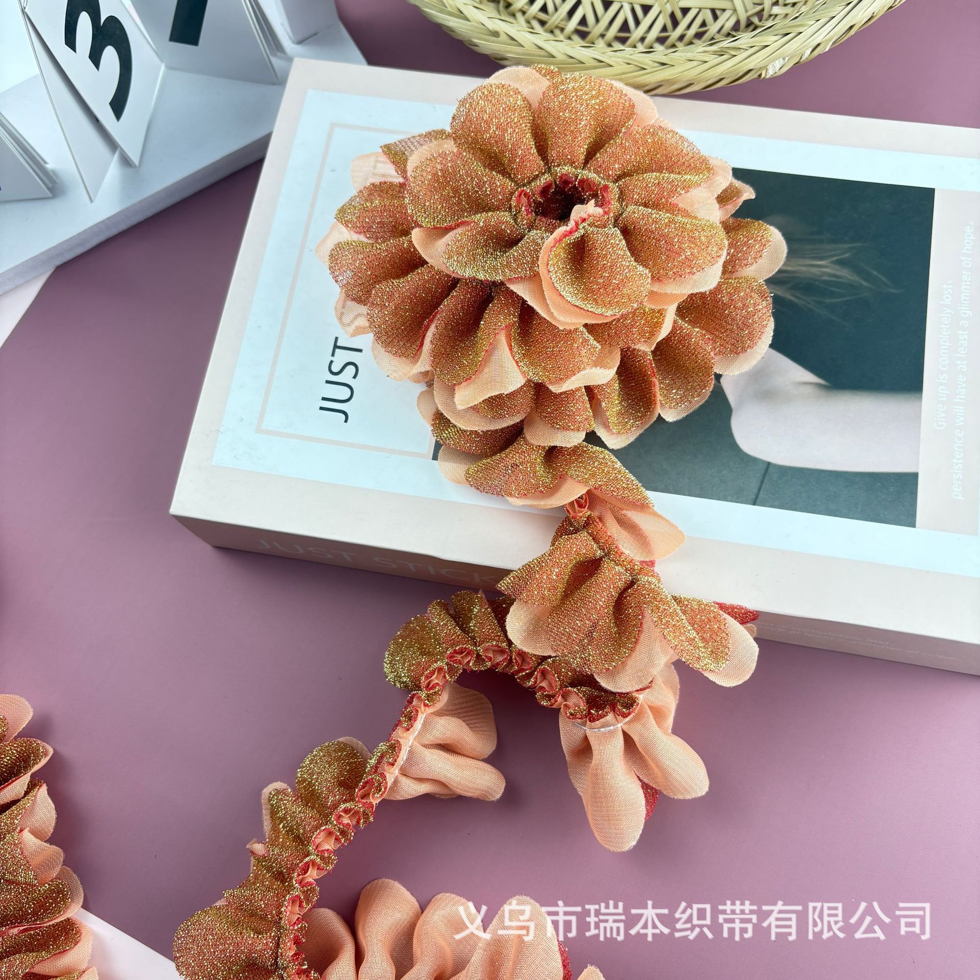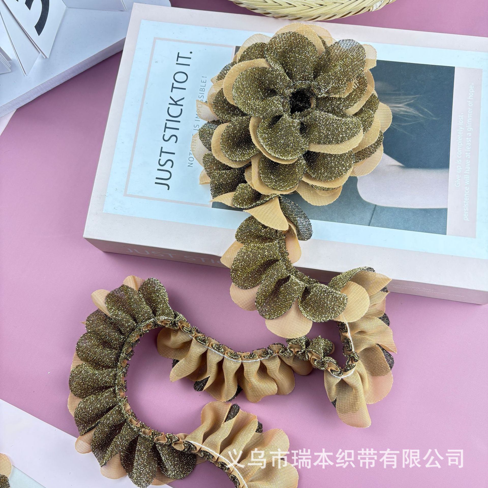 定制双层褶皱花边手纹点布艺波浪花朵织带饰品配件服装辅料 English | 投诉