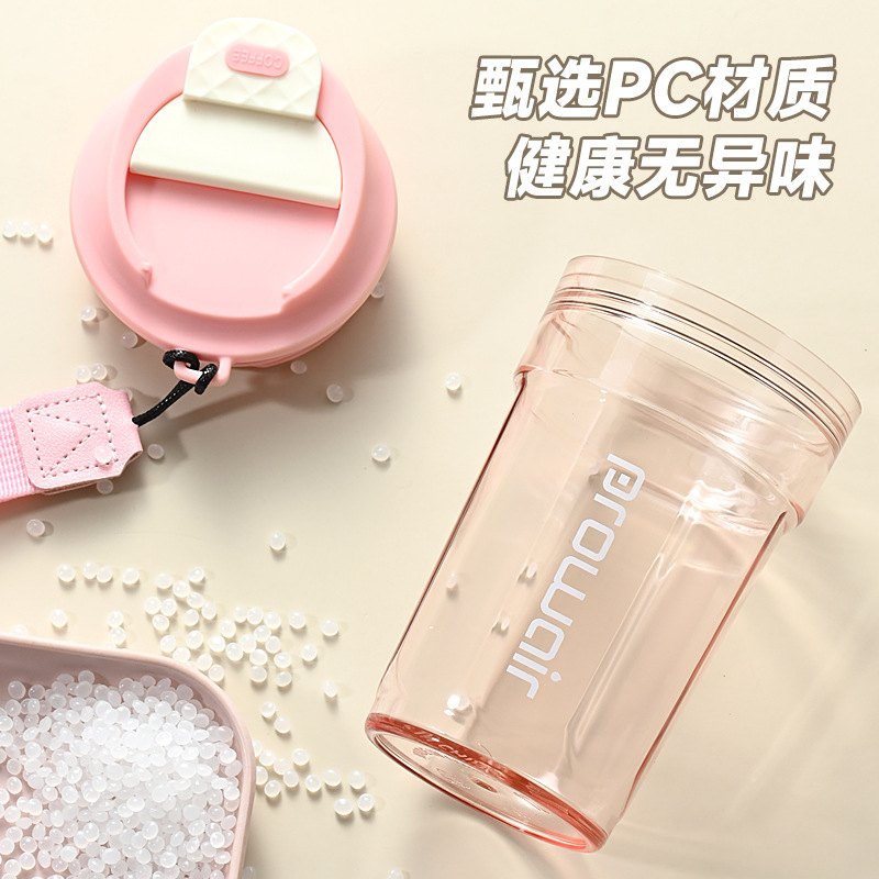 夏季高颜值提绳随行杯男女情侣随手咖啡杯家用一盖双饮塑料杯批发