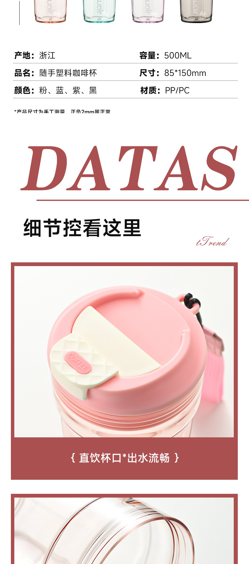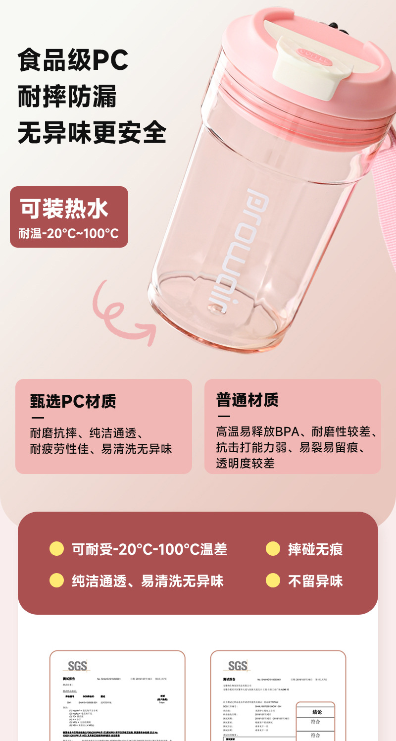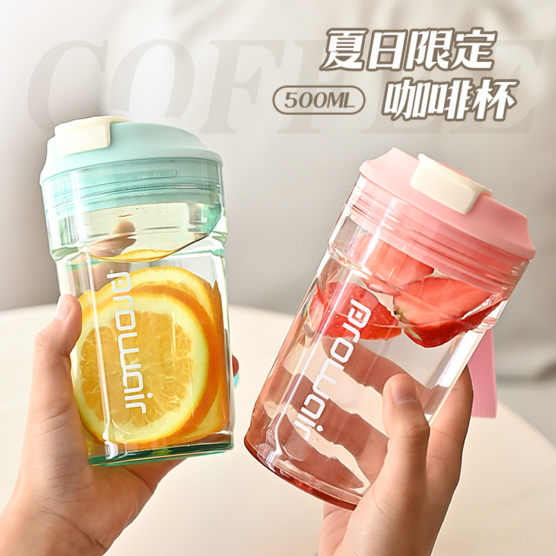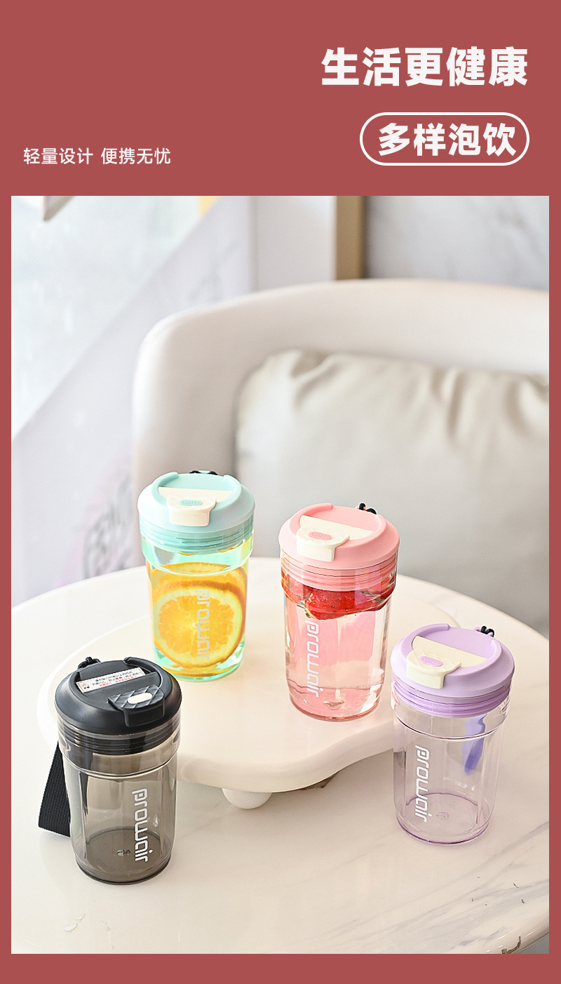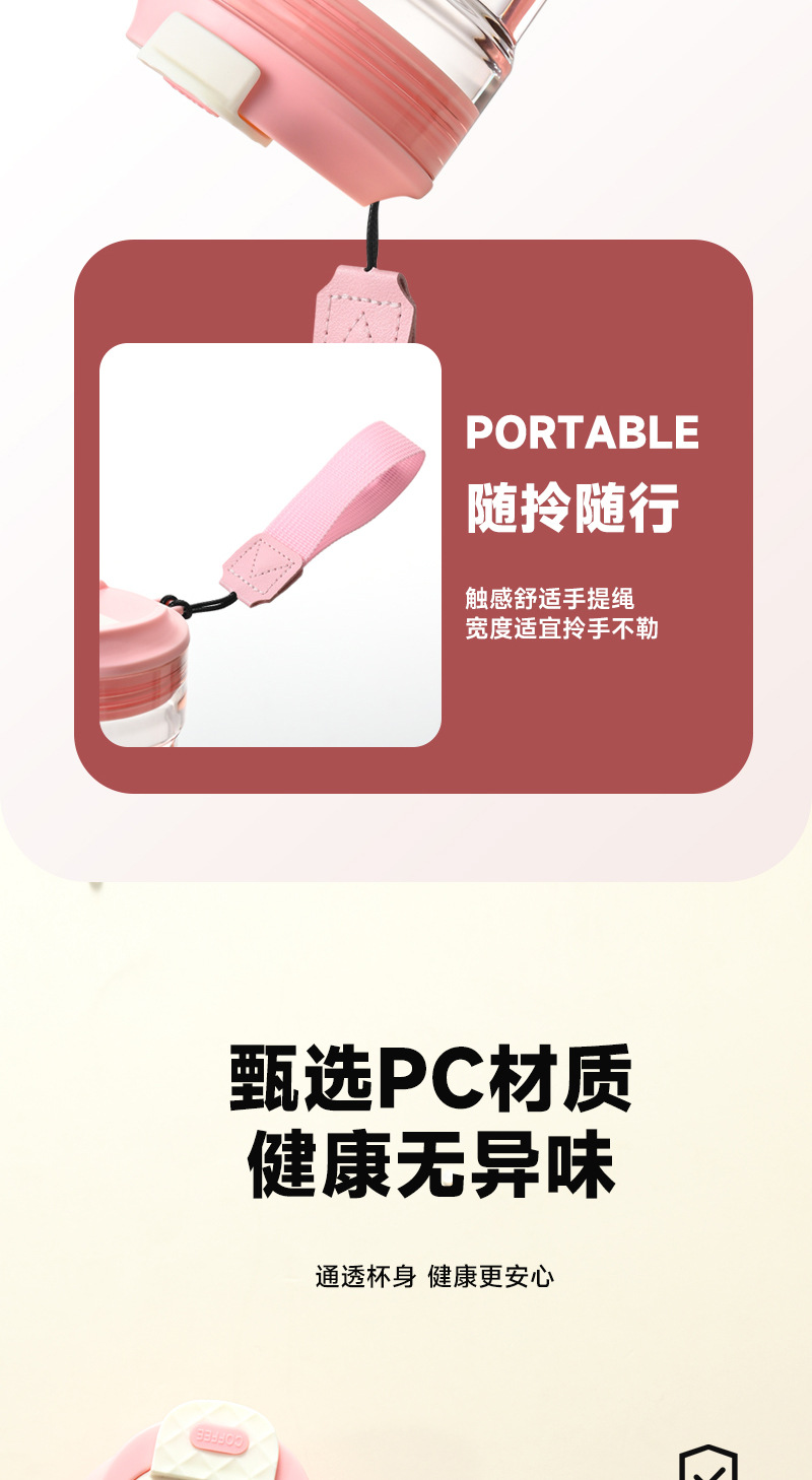 夏季高颜值提绳随行杯男女情侣随手咖啡杯家用一盖双饮塑料杯批发 投诉