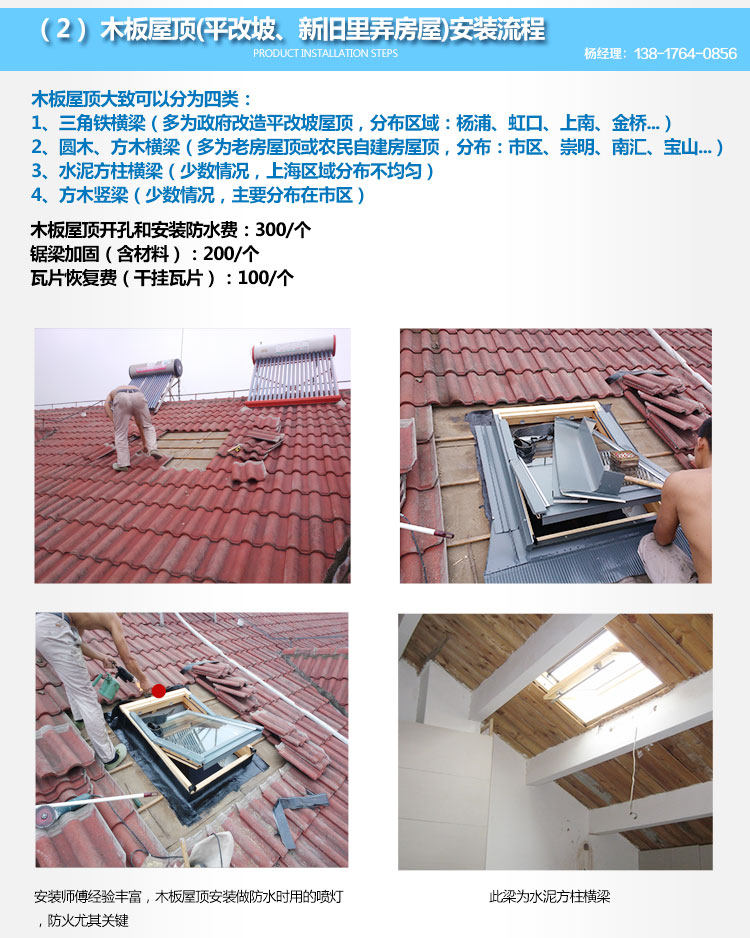 | 木板屋顶开孔和安装、防水费 | ¥41595 | 99881件可售 |