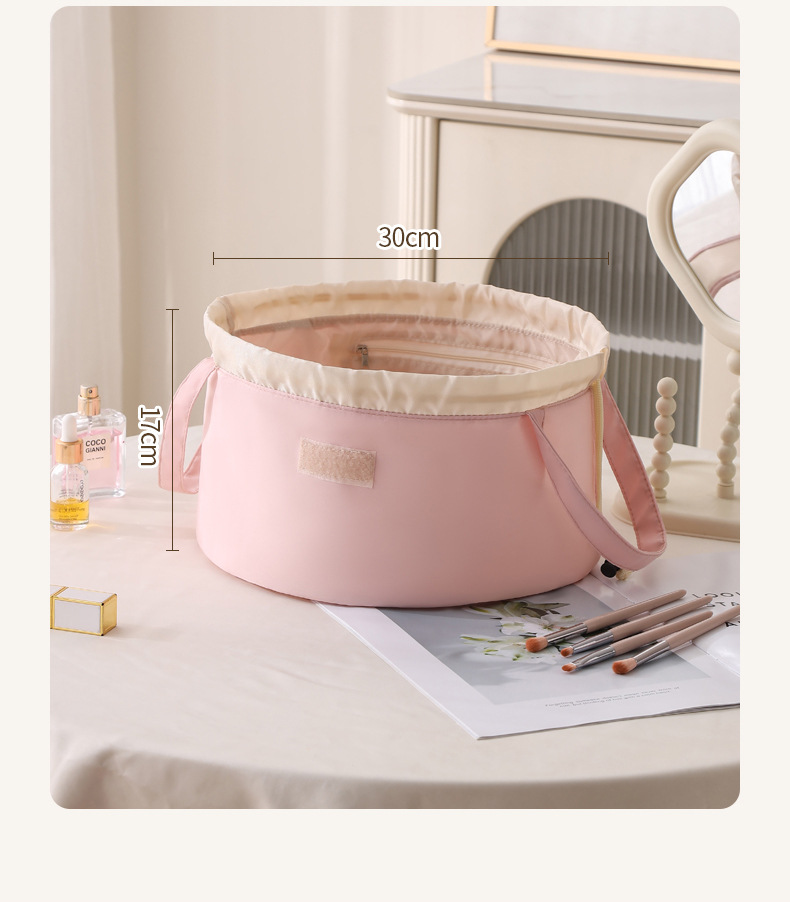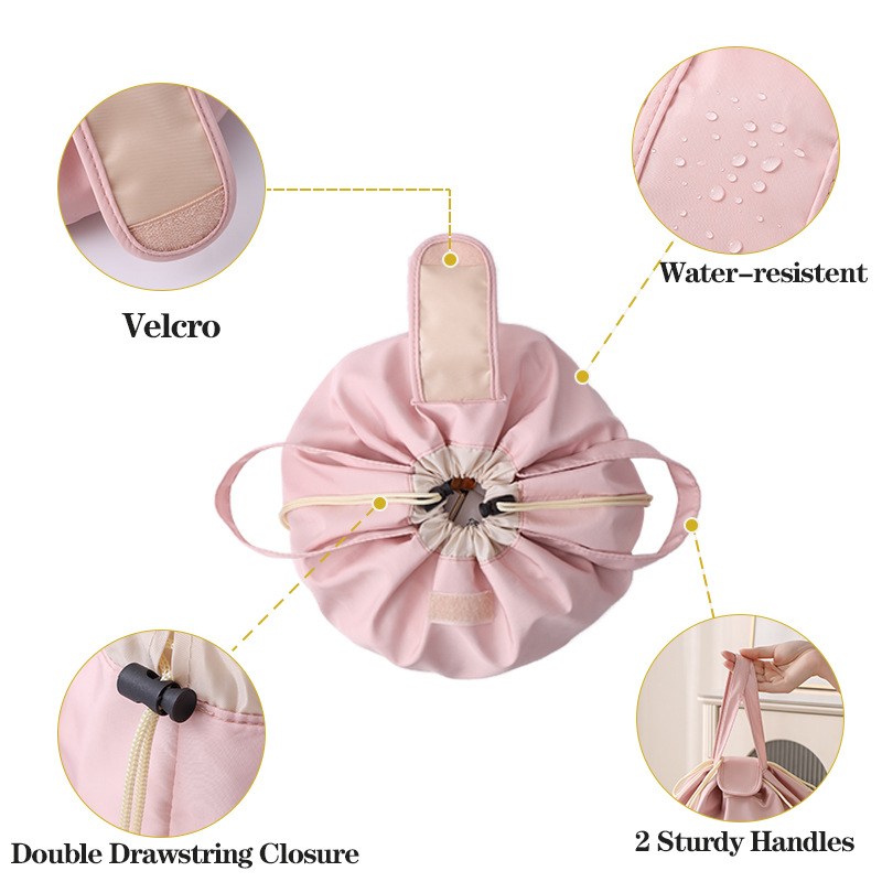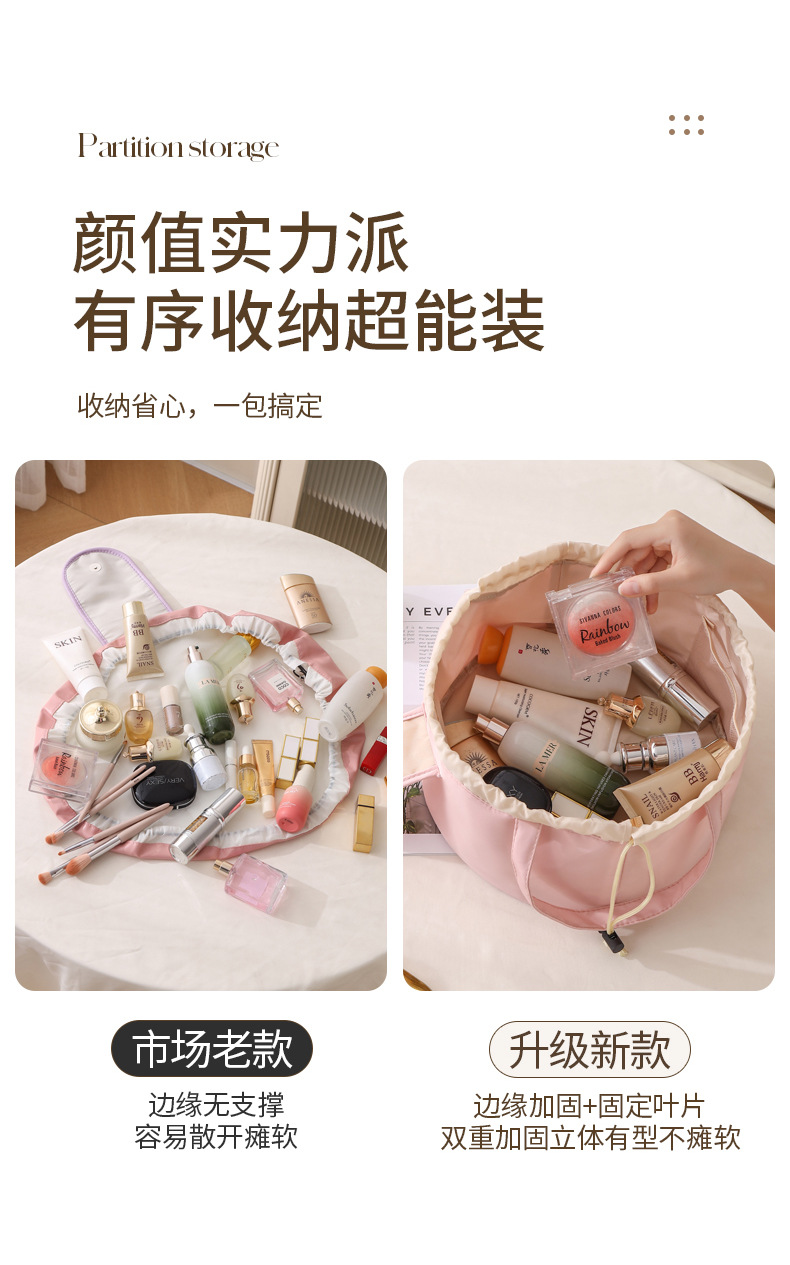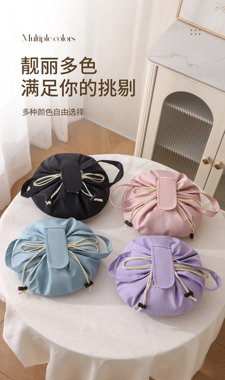2025新款抽绳化妆包大容量便携旅行洗漱收纳袋抽绳束包水桶包跨境 投诉