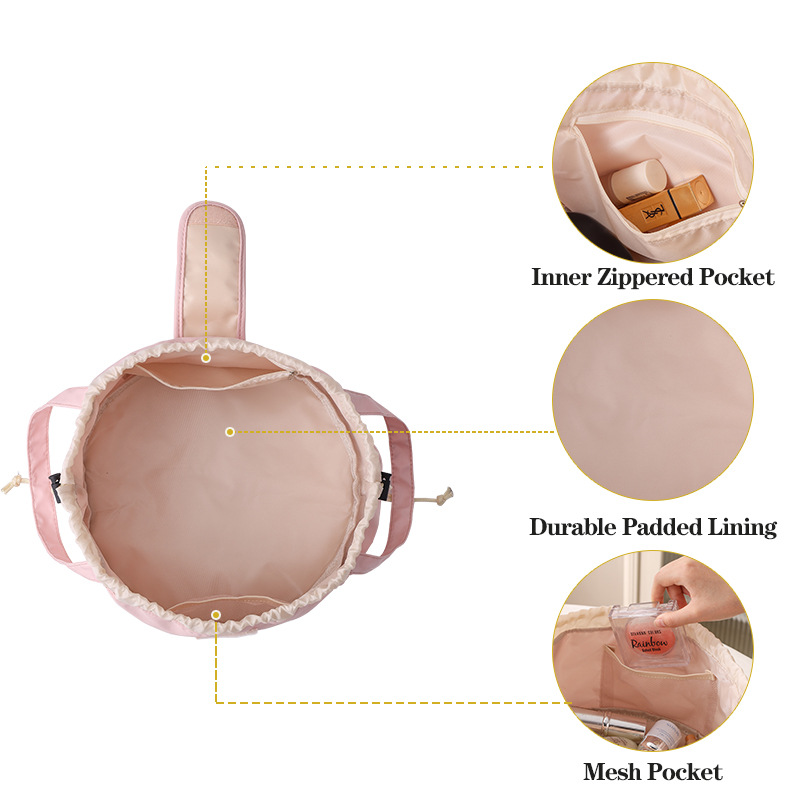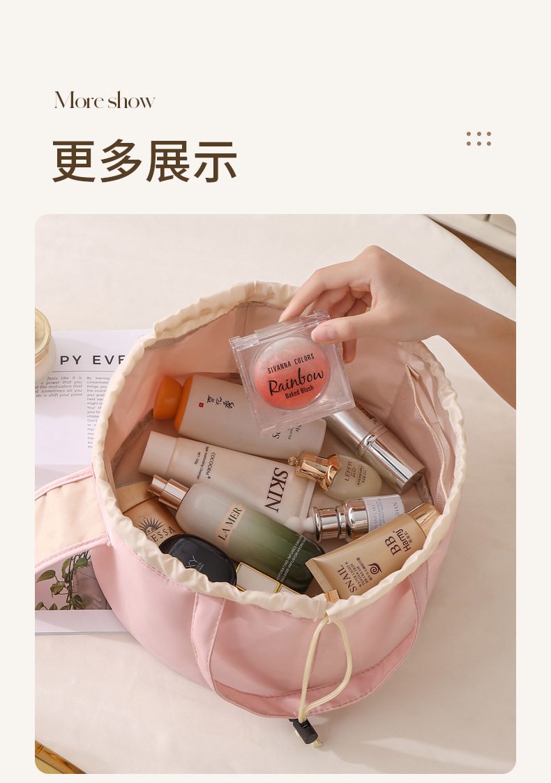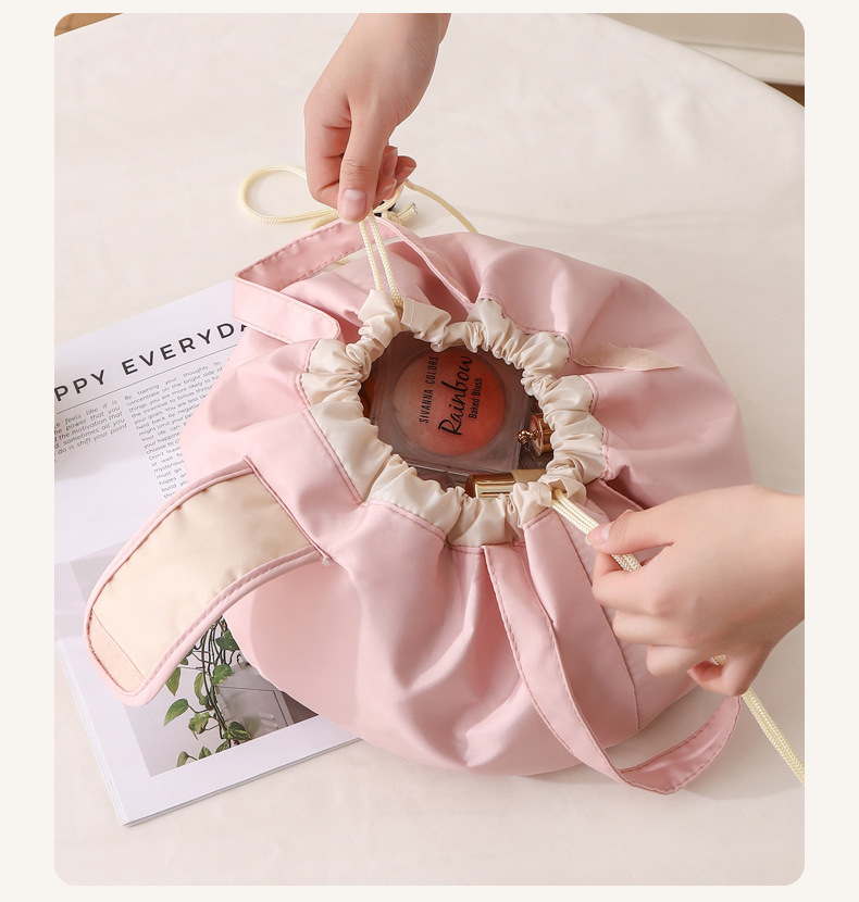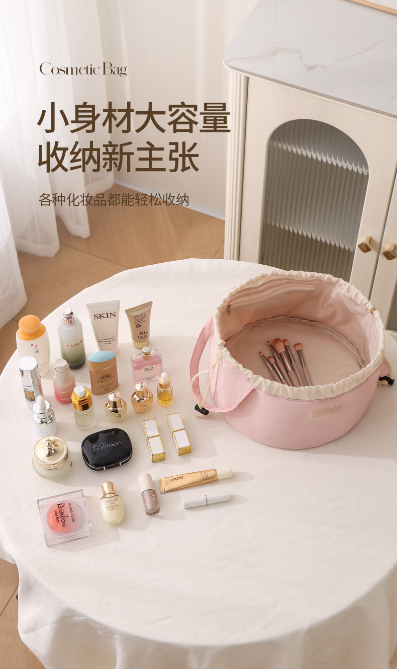 2025新款抽绳化妆包大容量便携旅行洗漱收纳袋抽绳束包水桶包跨境