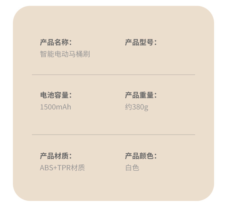 是否进口: 否 颜色: 电动马桶刷 材质: 塑料 重量: 0.5 kg/个 装箱信息:长宽高:21X24X25cm 装箱重量: 22KG 装箱数量:29pcs
