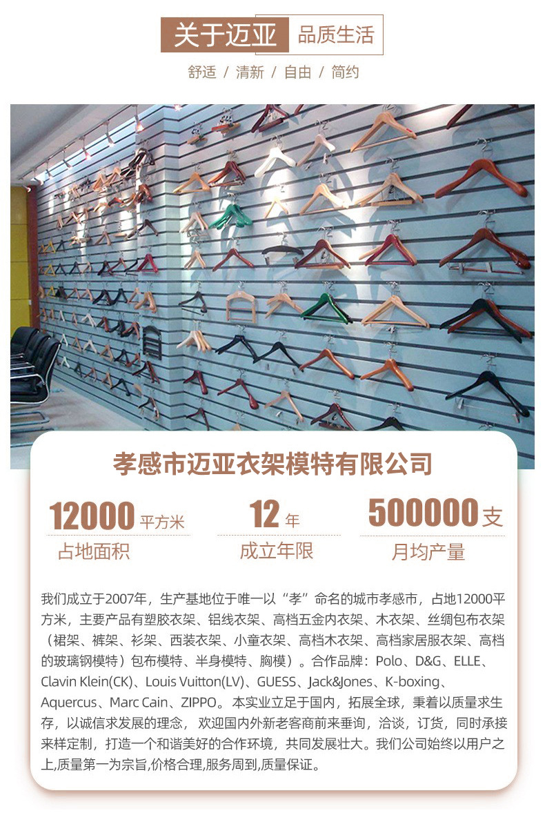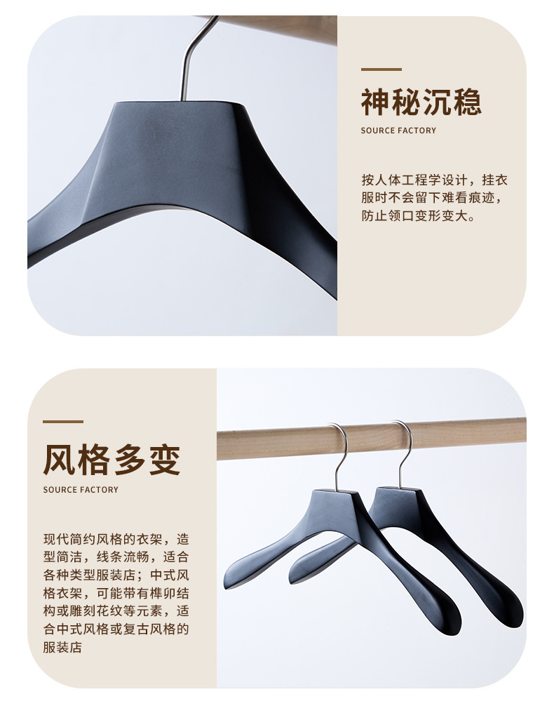 产品类别: 衣架 风格: 现代简约 是否有专利: 否 版权: 无 3: 木衣架防滑无痕 2: 实木衣架 重量: 0.5 kg/个 装箱信息:长宽高:21X24X25cm 装箱重量: 22KG 装箱数量:29pcs