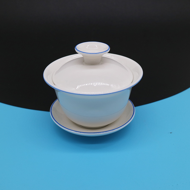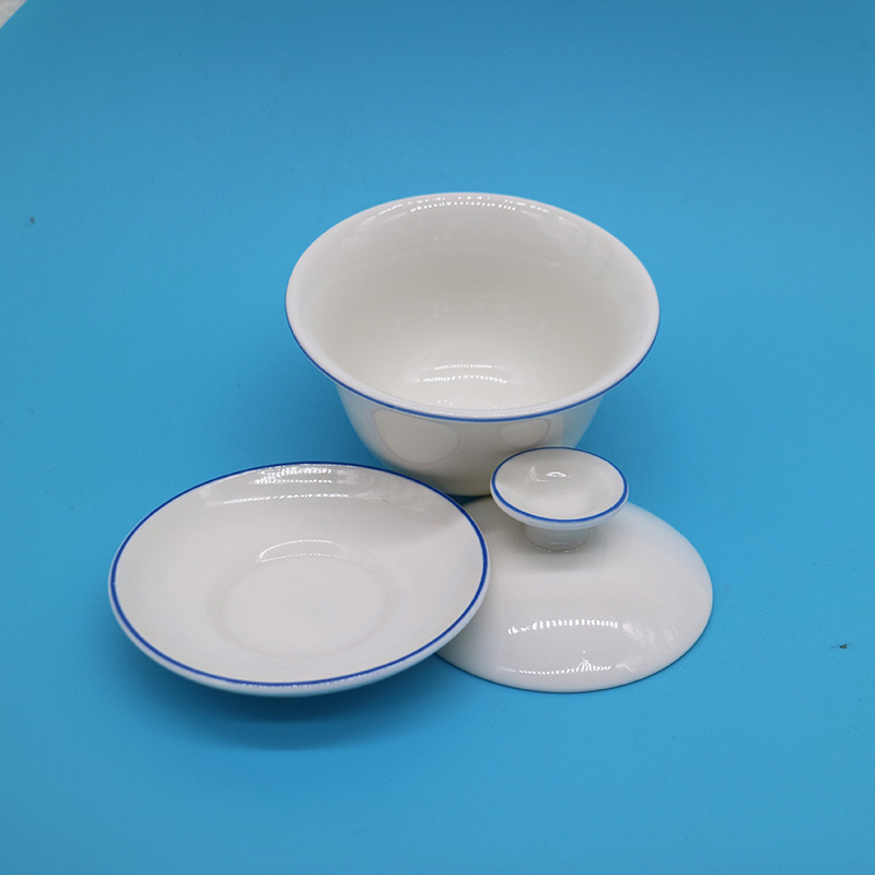 二麻酒馆酒具 网红小酒馆贰麻酒具斗酒 描蓝线晕茶杯套装白瓷酒碗