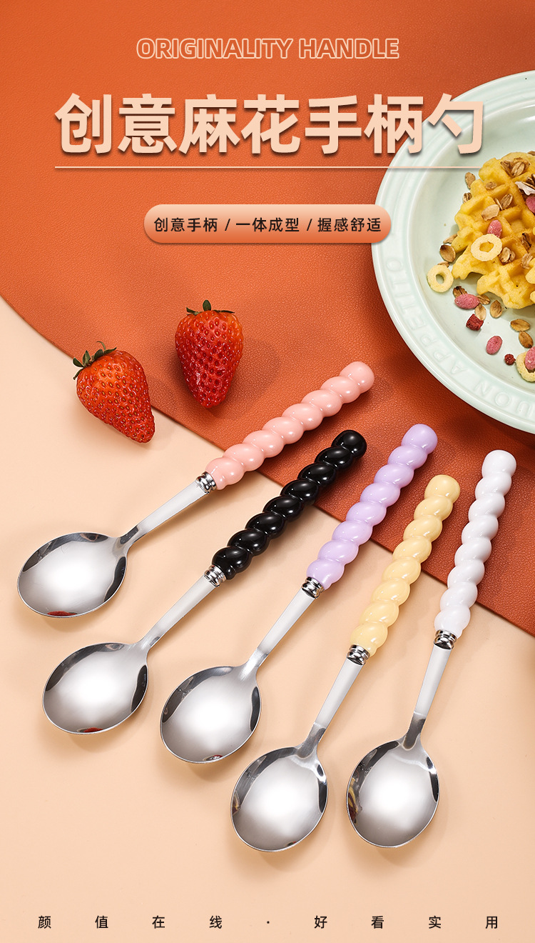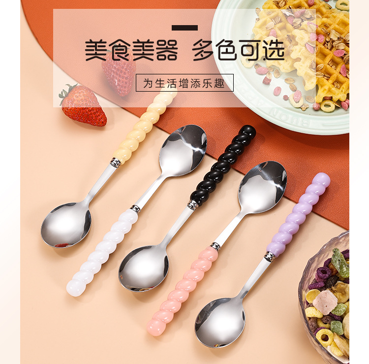 家用不锈钢勺子五色海浪勺加长珍珠勺调羹搅拌勺网红饭勺汤勺批发 English | 投诉