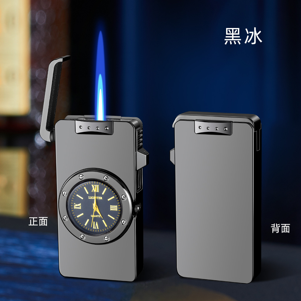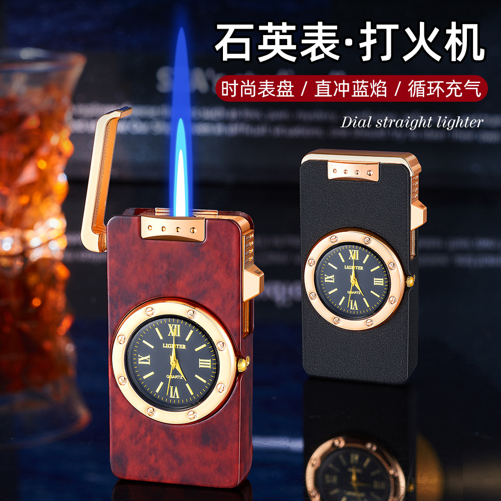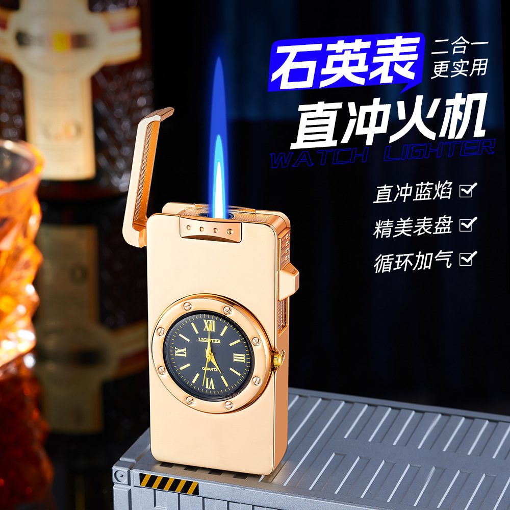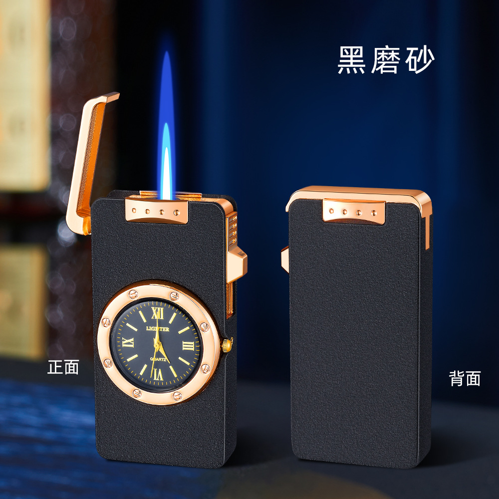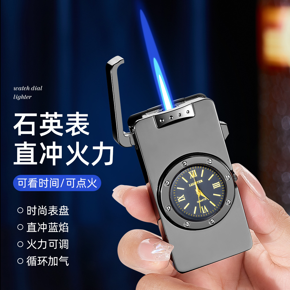 新款HF647拉丝工艺手表打火机充气蓝焰火机商务礼品厂家直销