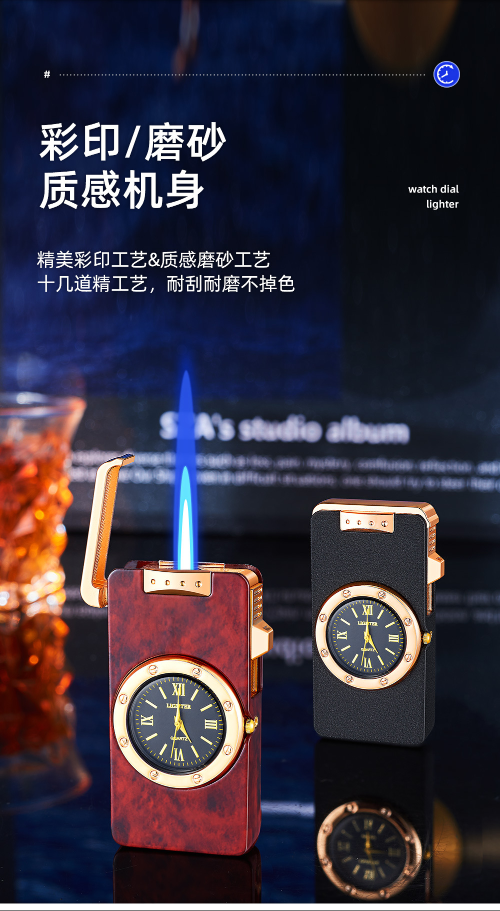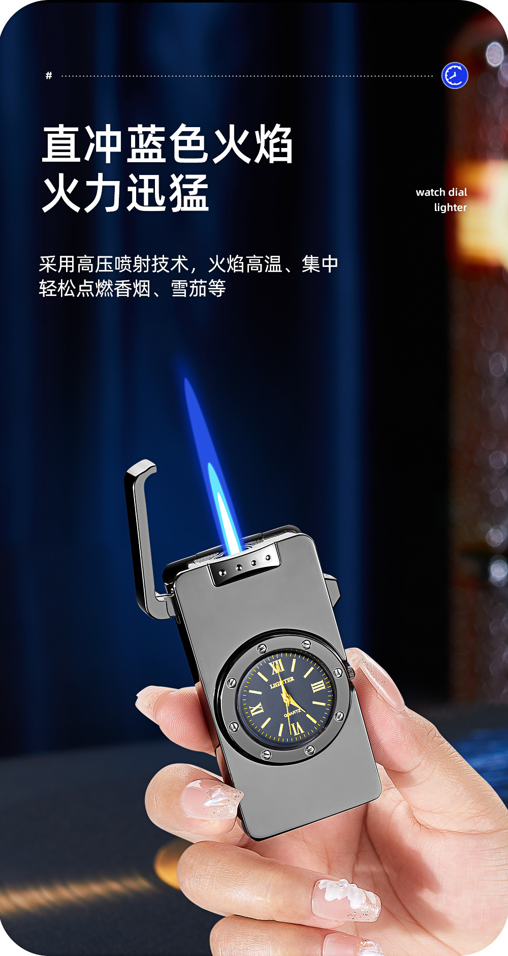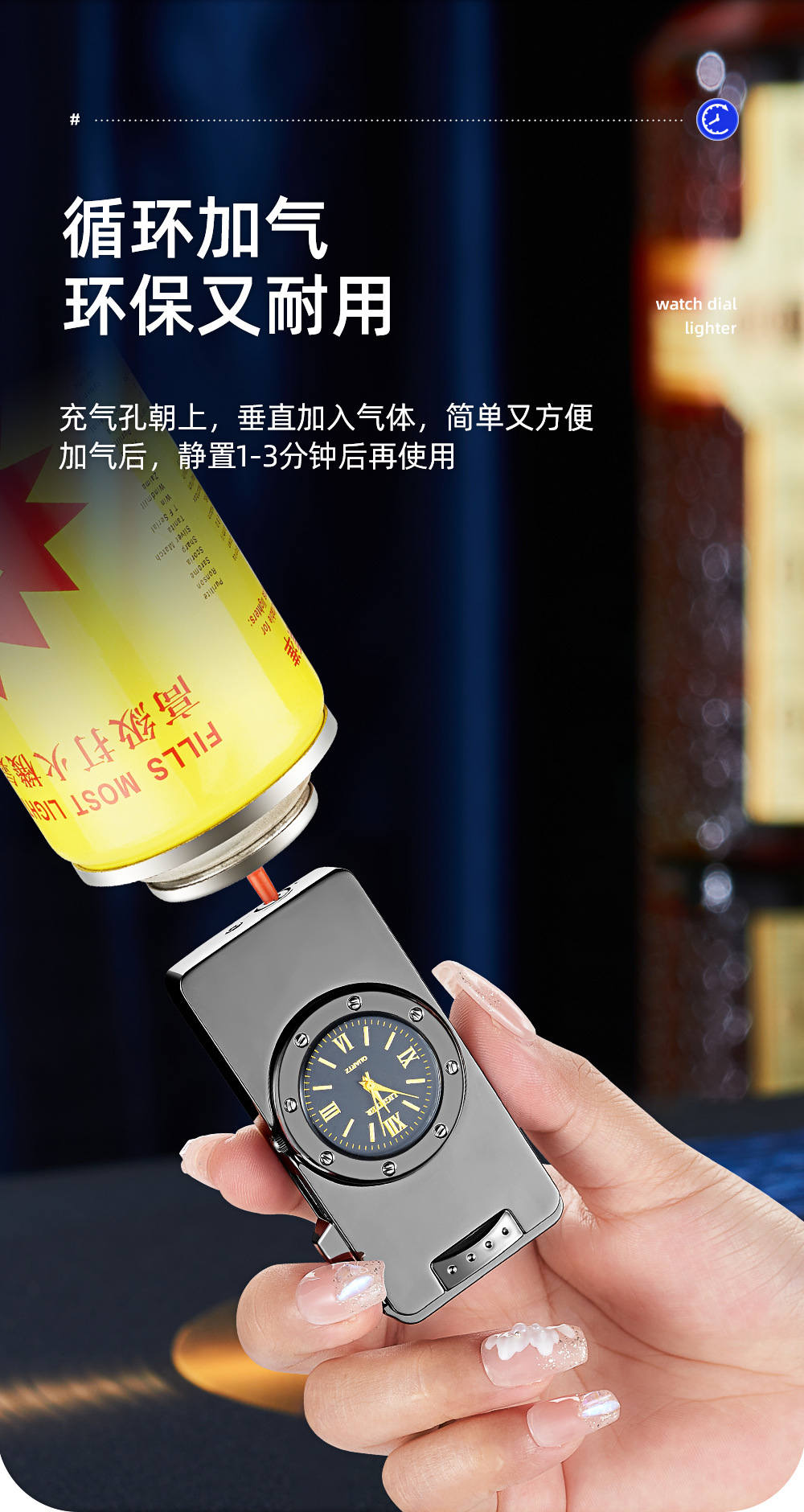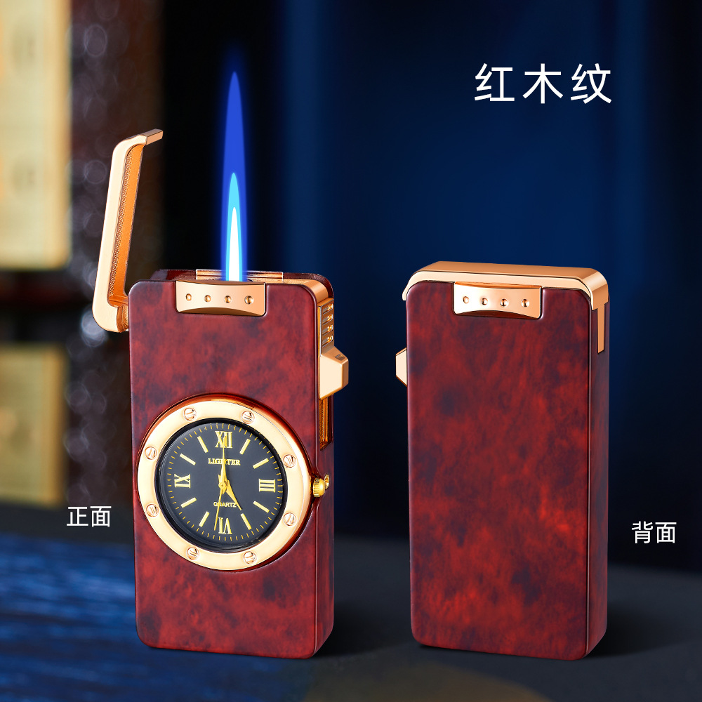 新款HF647拉丝工艺手表打火机充气蓝焰火机商务礼品厂家直销