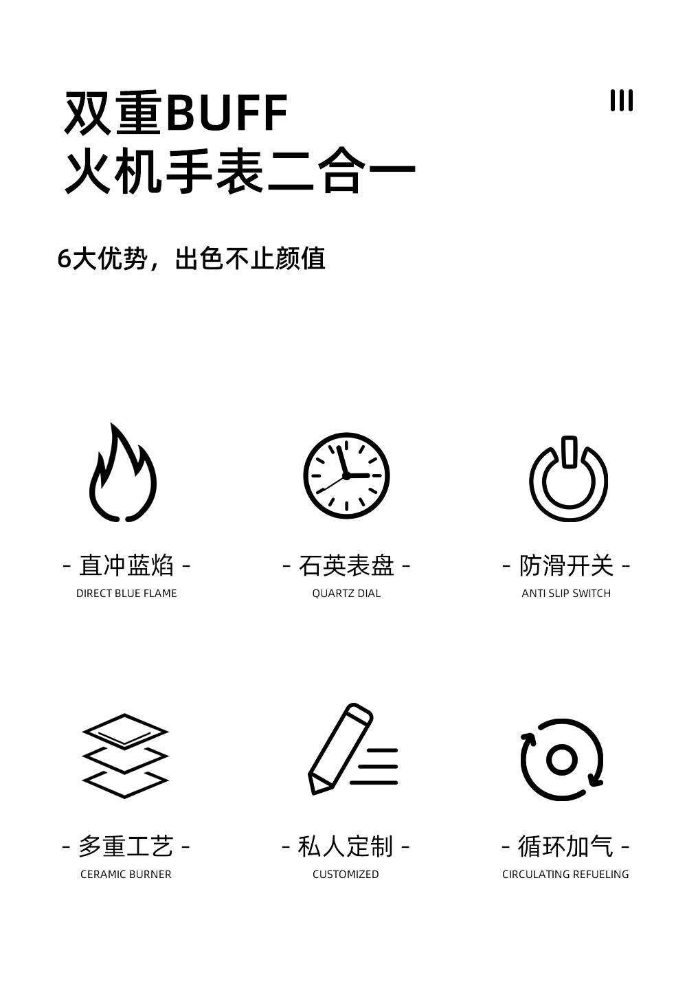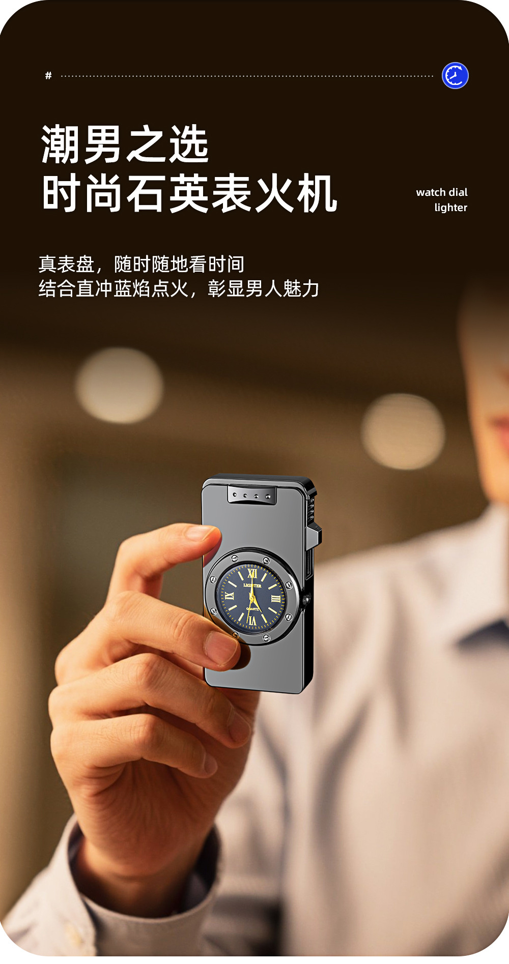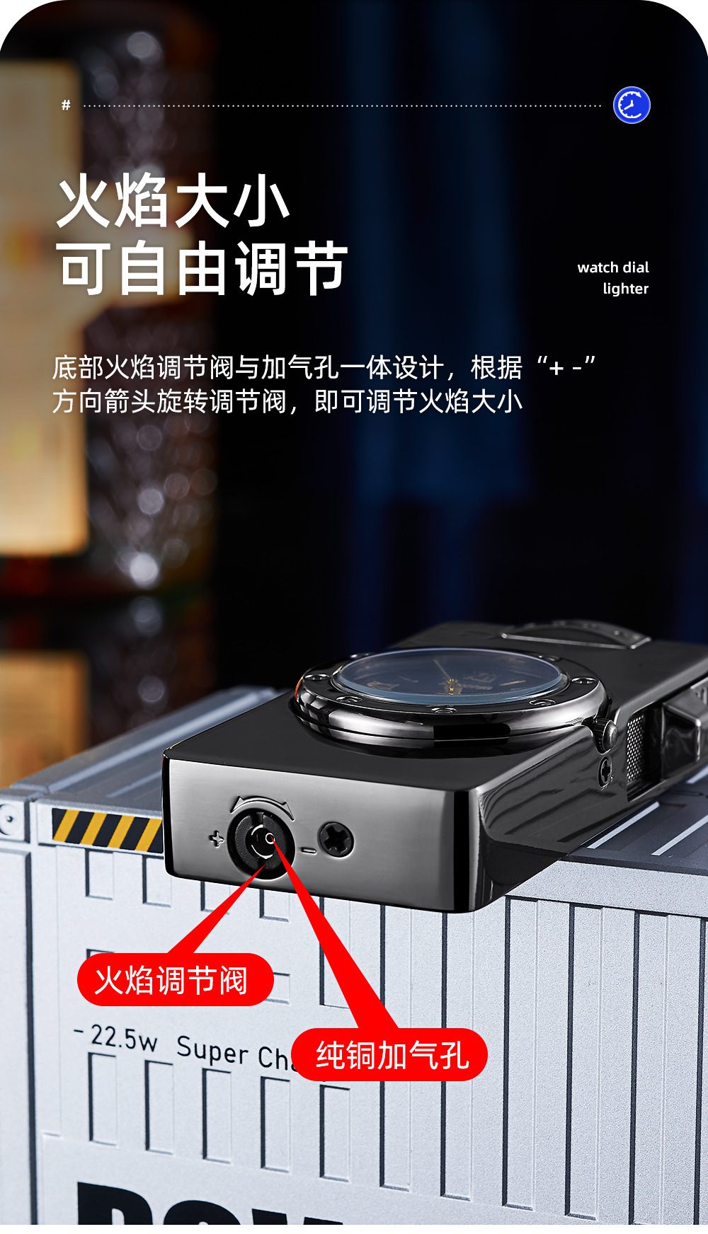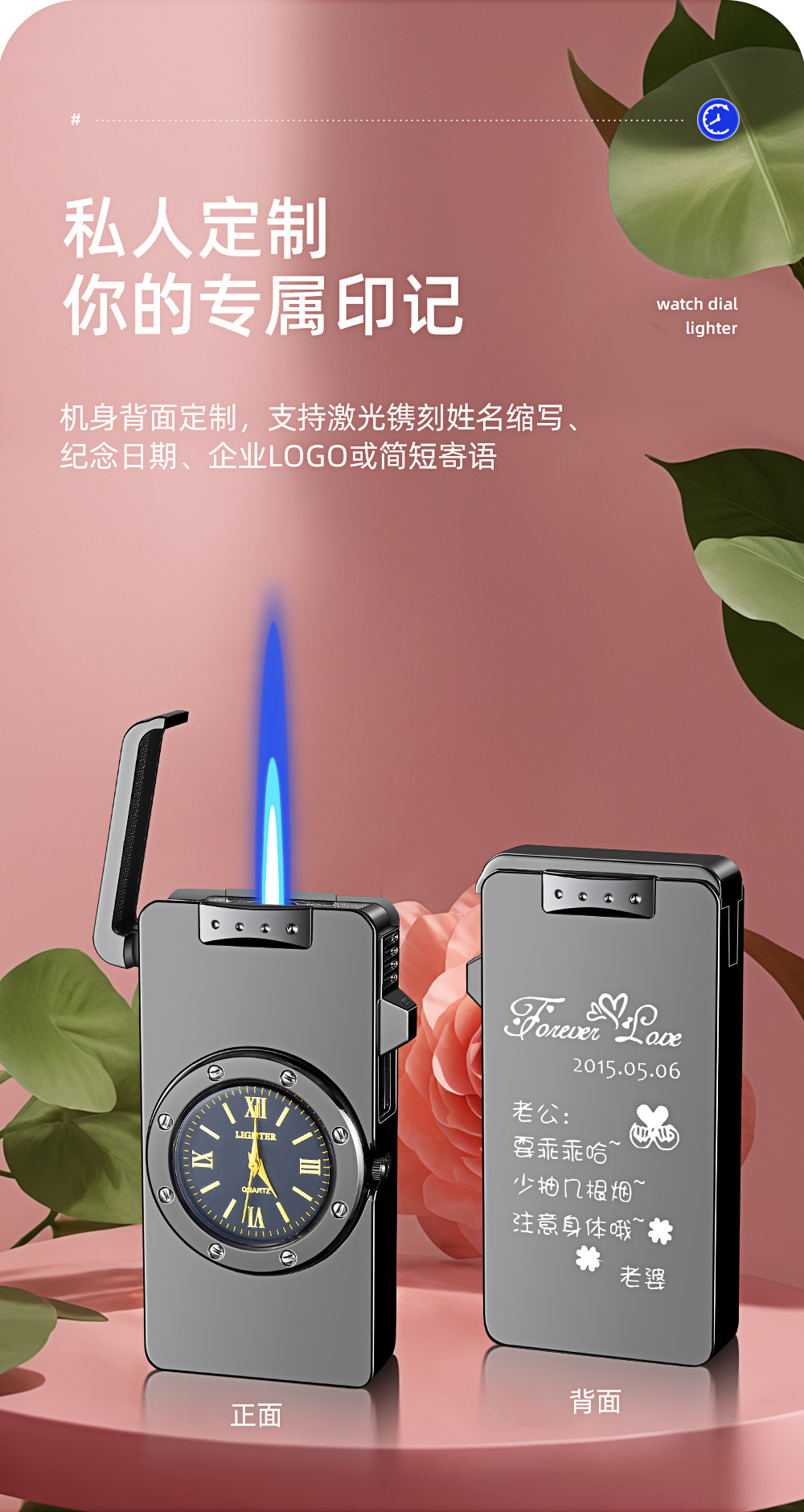新款HF647拉丝工艺手表打火机充气蓝焰火机商务礼品厂家直销