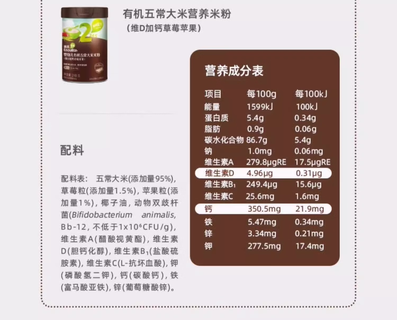 | 有机五常大米营养米粉(维D加钙草莓苹果)2阶段 | ¥0 | 12002听可售 |
