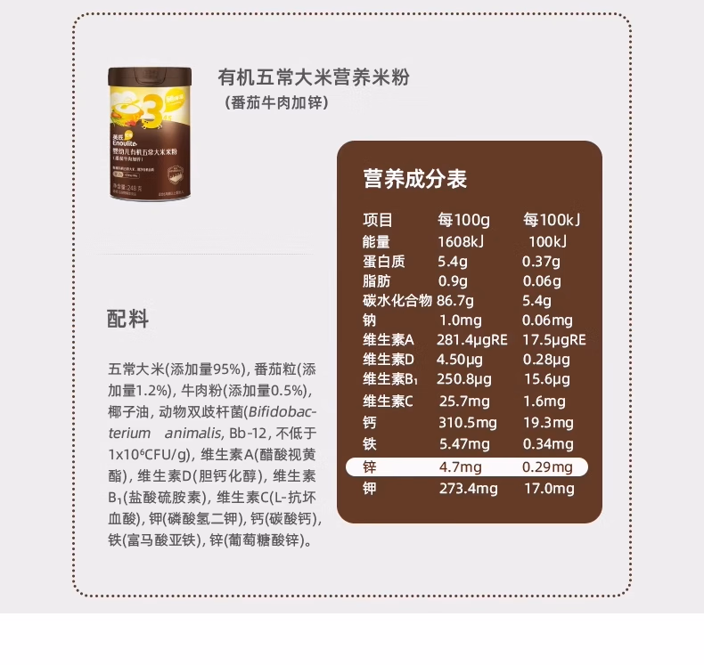 | 有机五常大米营养米粉(番茄牛肉加锌)3阶段 | ¥0 | 12122听可售 |