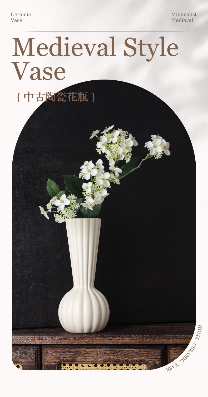 陶瓷插花瓶中古风高级感法式水培花器房间装饰摆件简约白色干花瓶 English | 投诉