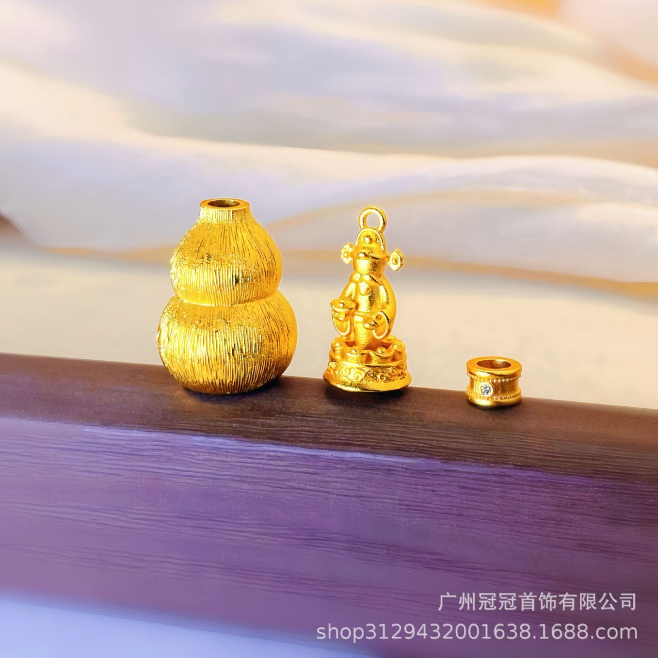 金店同款古法沙金拉丝财神爷配件葫芦吊坠单坠项链不掉色女高级感
