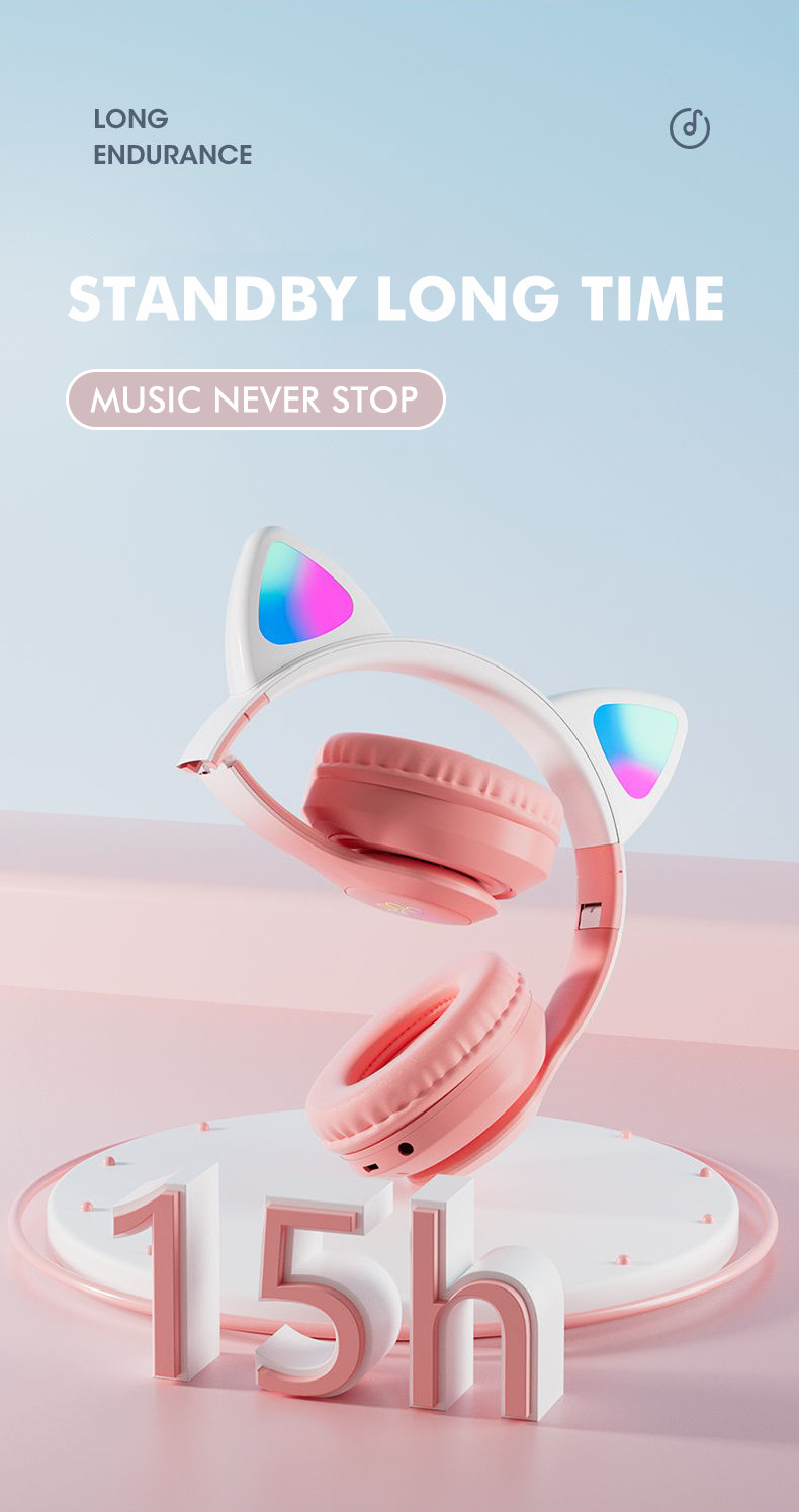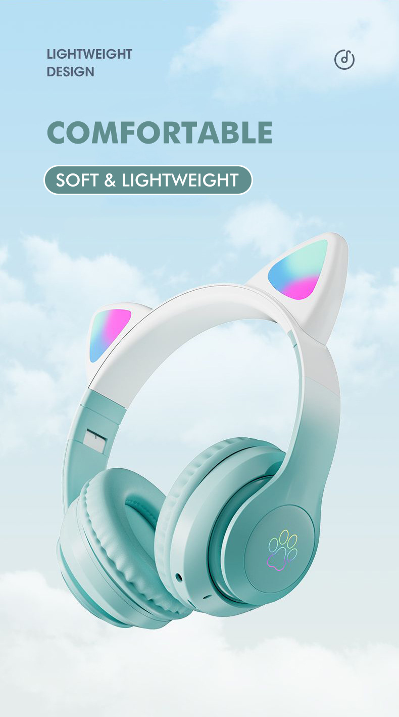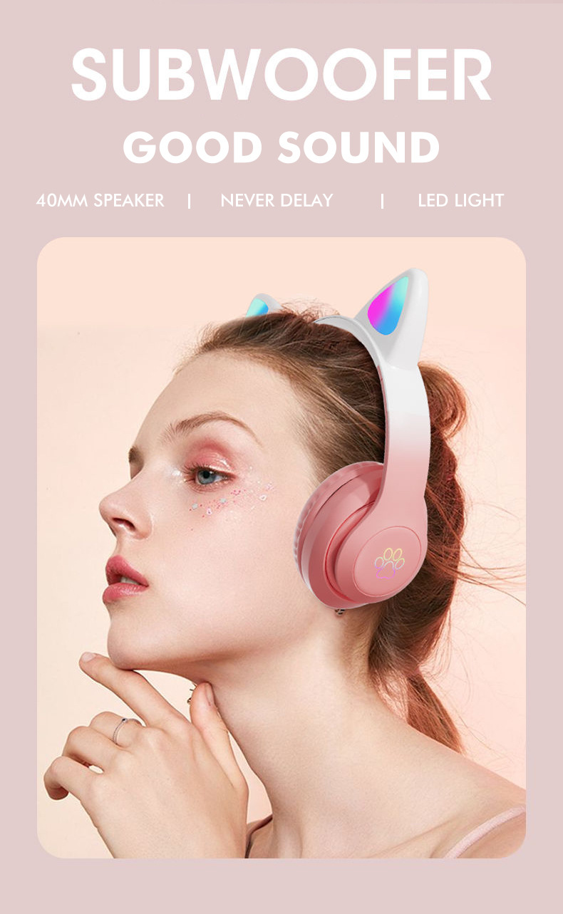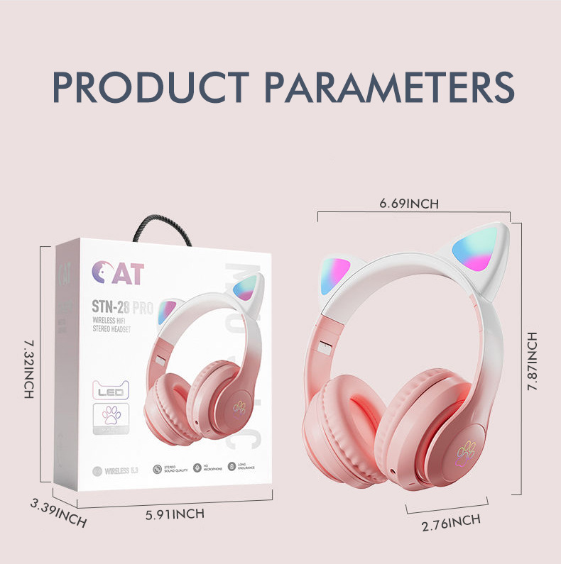 STN-28pro可爱猫耳朵头戴式蓝牙耳机LED发光女生礼物立体声耳机