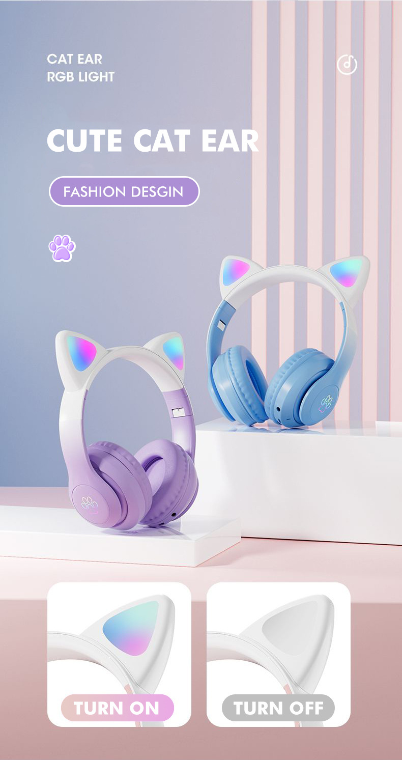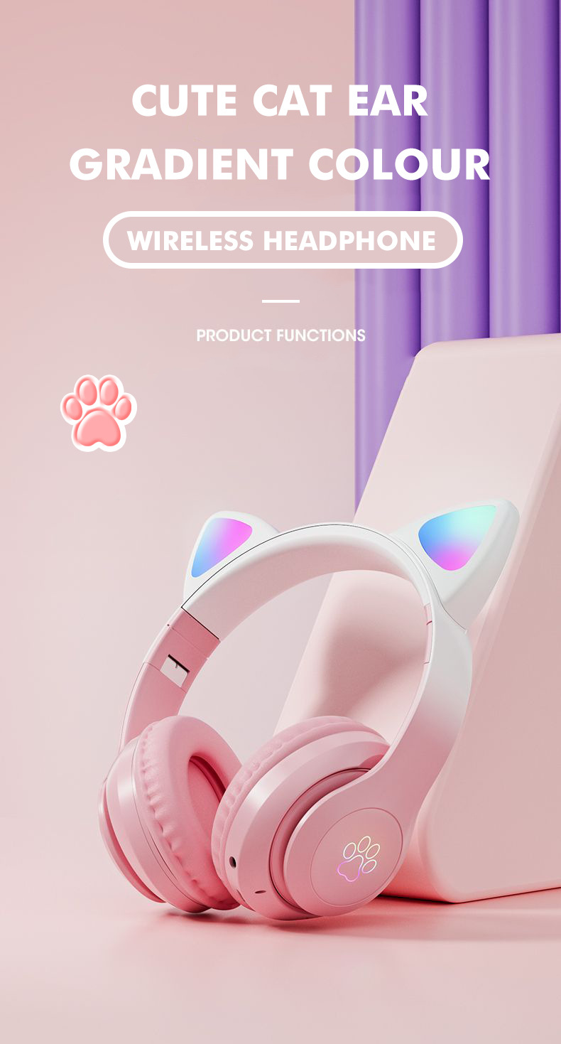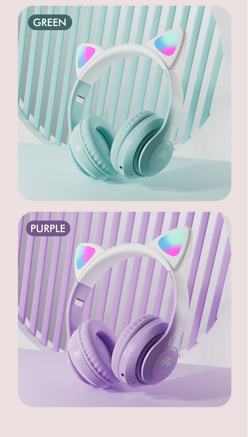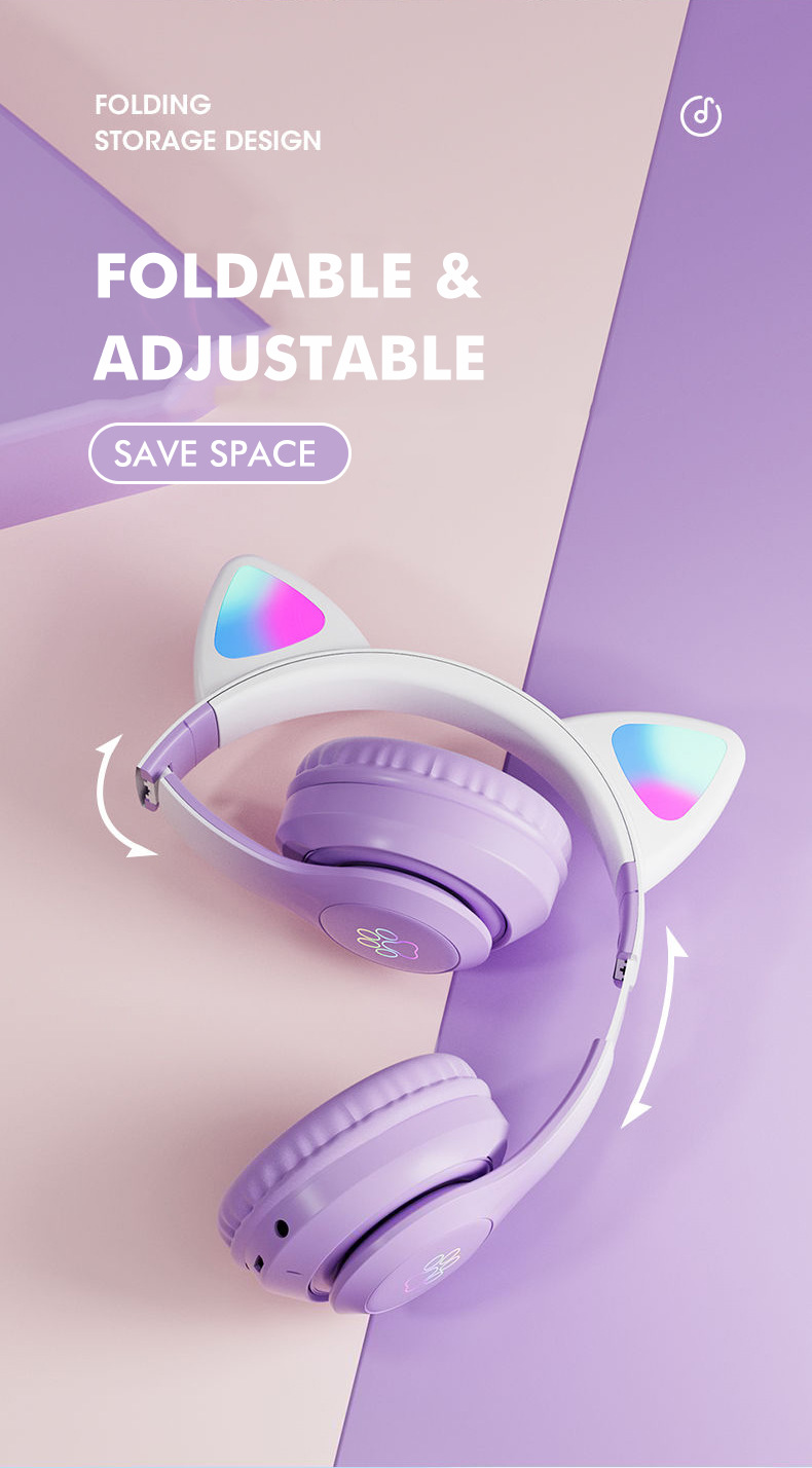 STN-28pro可爱猫耳朵头戴式蓝牙耳机LED发光女生礼物立体声耳机