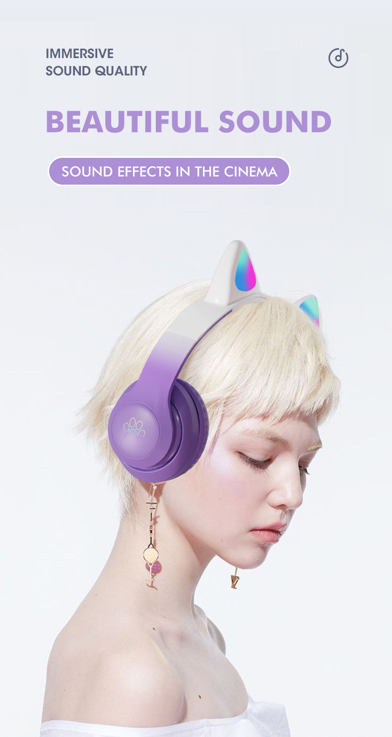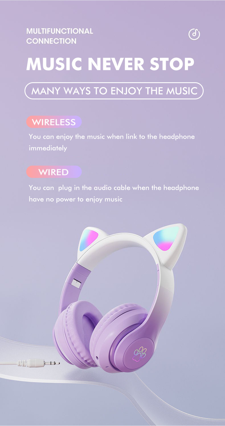 STN-28pro可爱猫耳朵头戴式蓝牙耳机LED发光女生礼物立体声耳机 投诉
