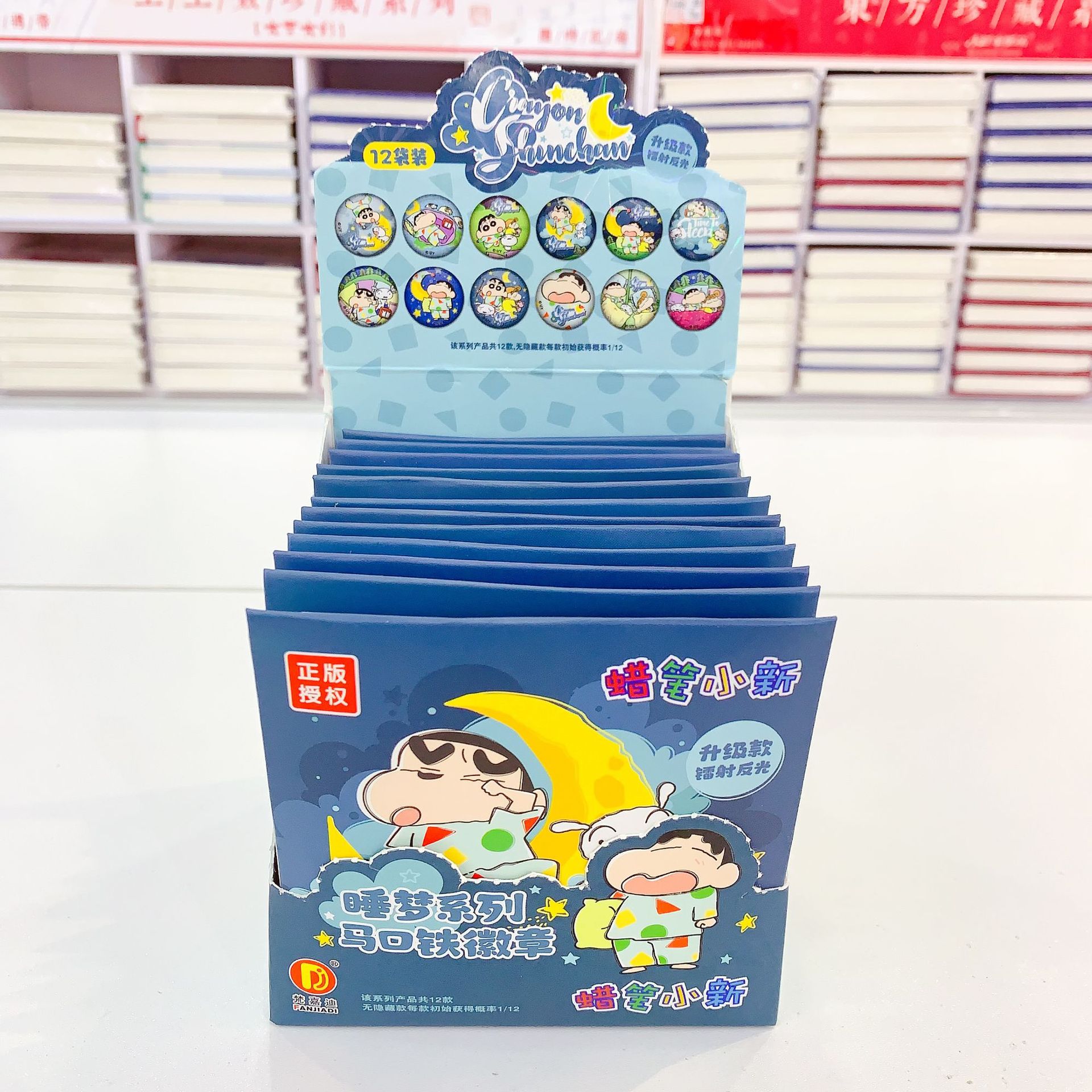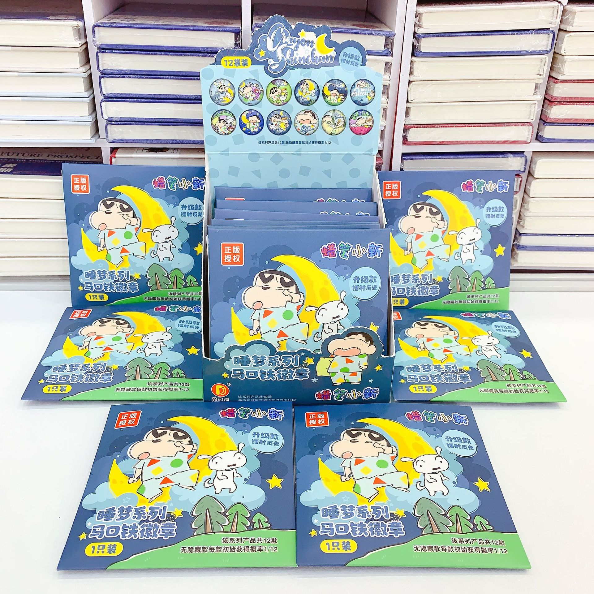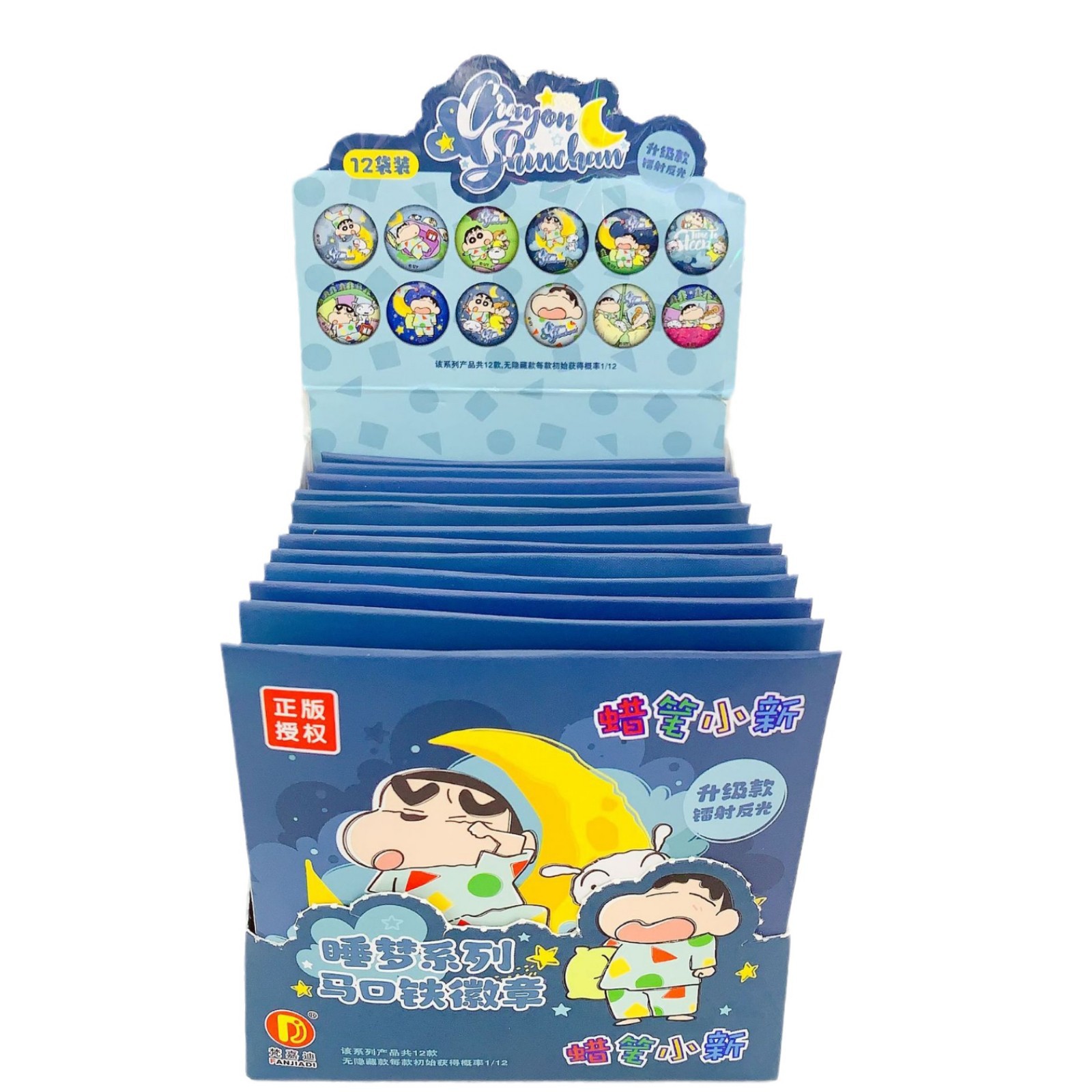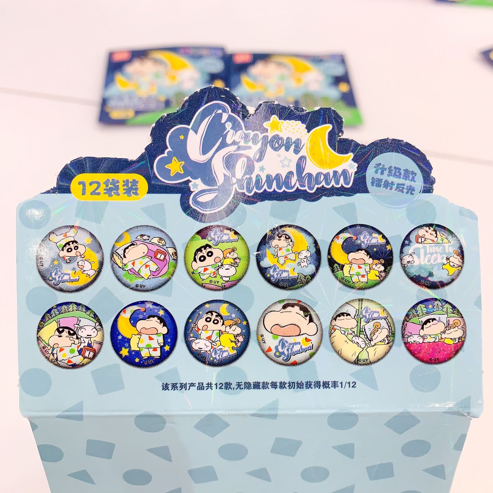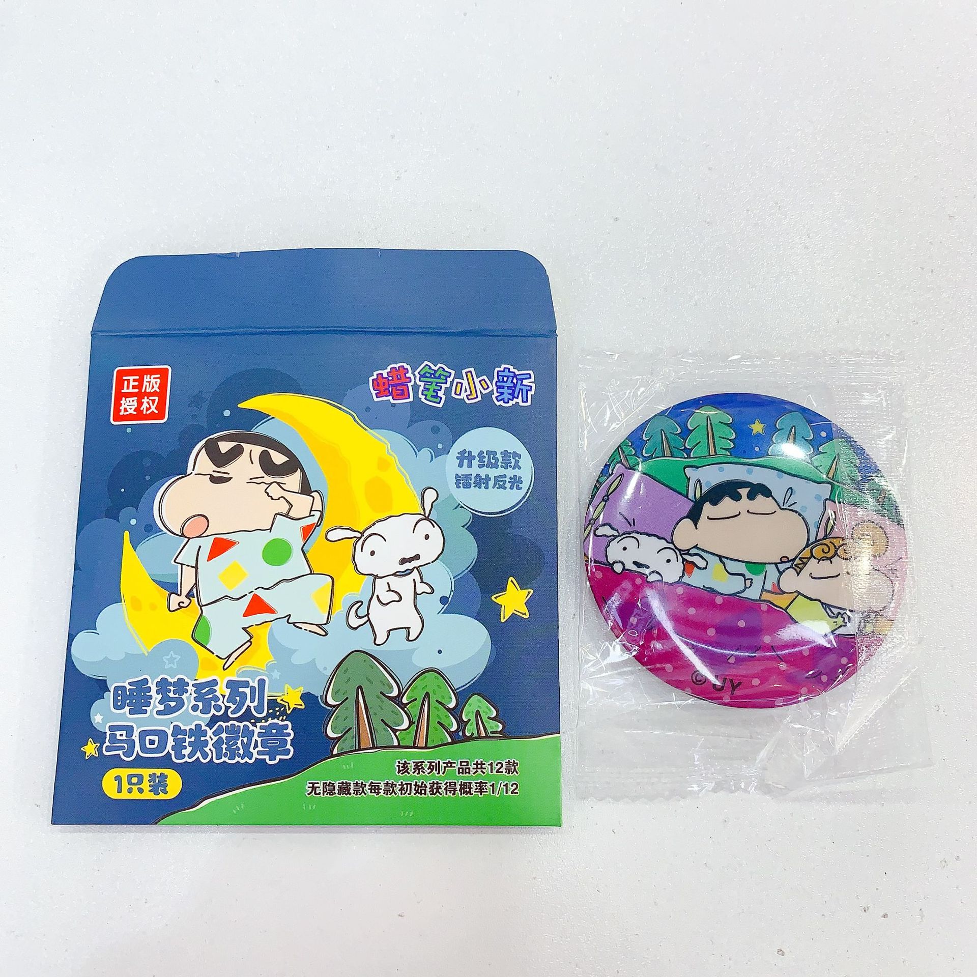 正版授权创意卡通蜡笔小新睡梦系列马口铁徽章镭射吧唧盲盒套装 English | 投诉