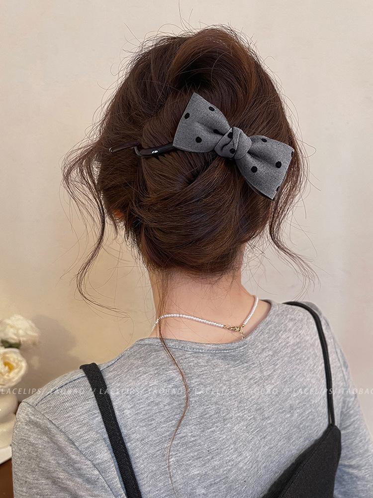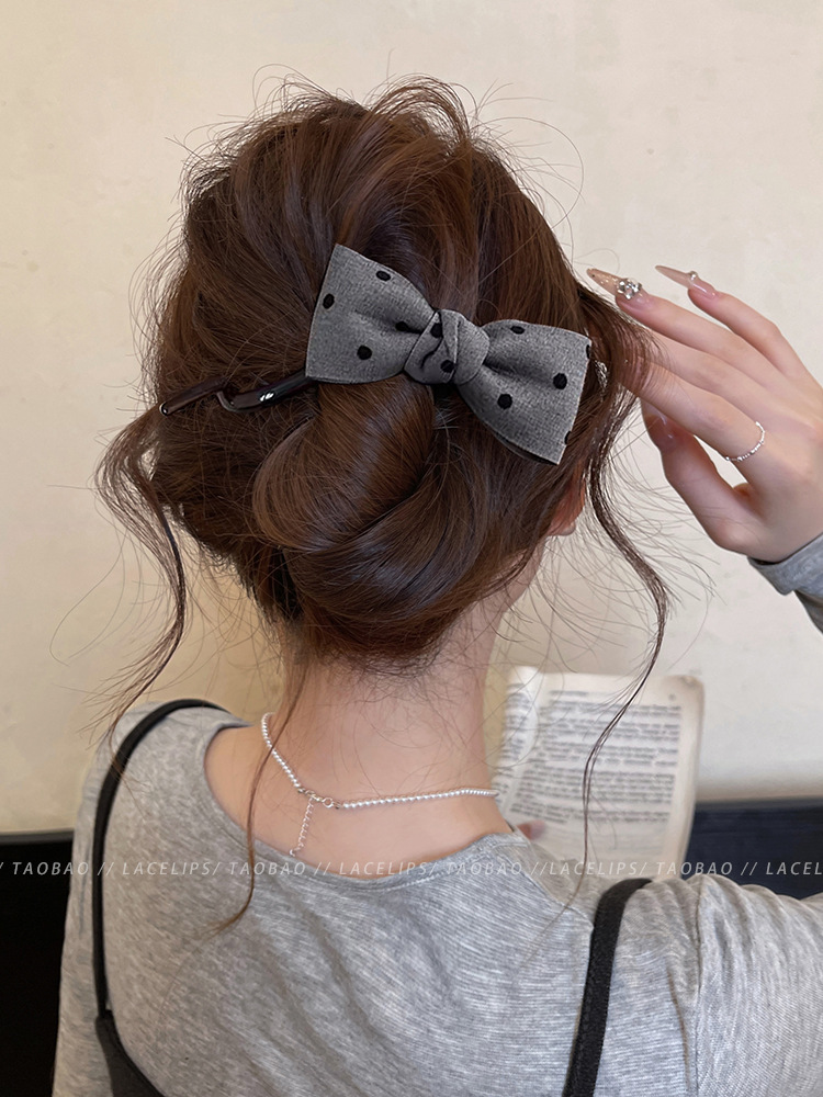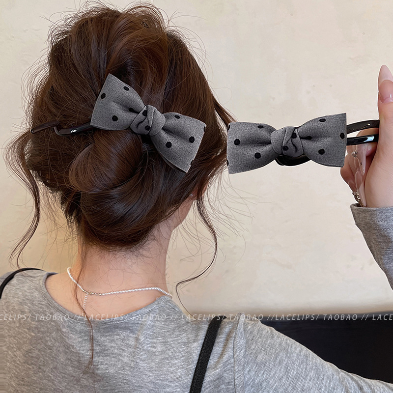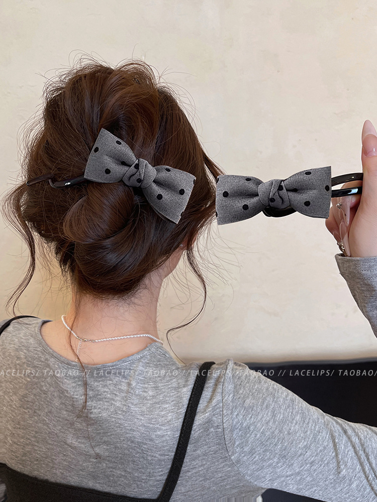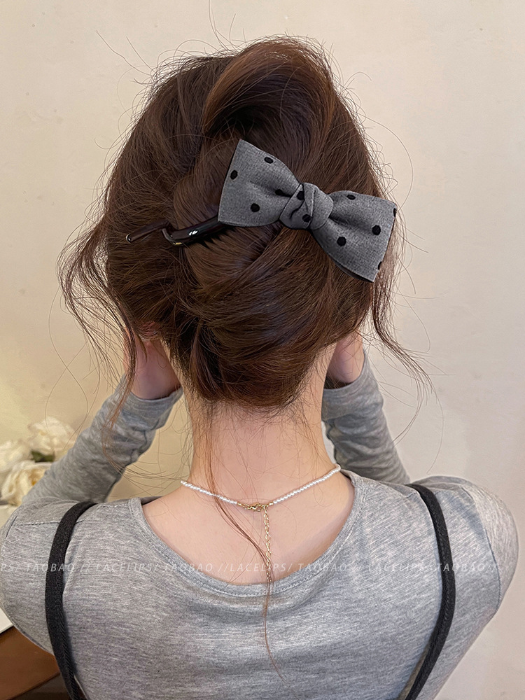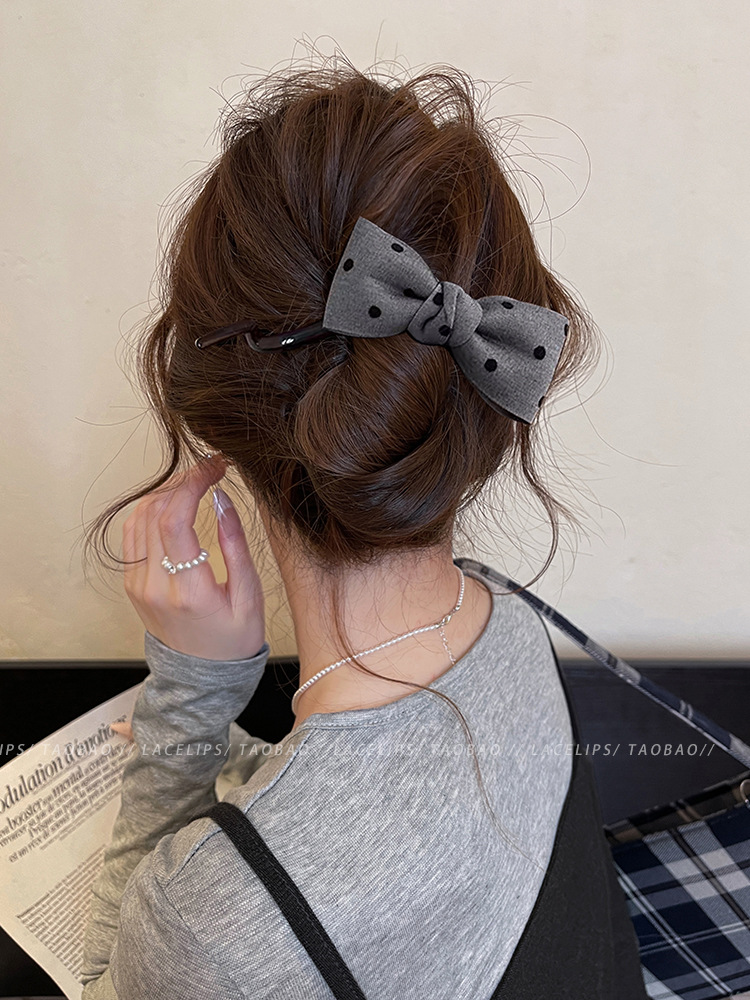 Miu系波点蝴蝶结扭扭夹抓夹女高级感2025新款盘发夹子一字夹发饰 English | 投诉