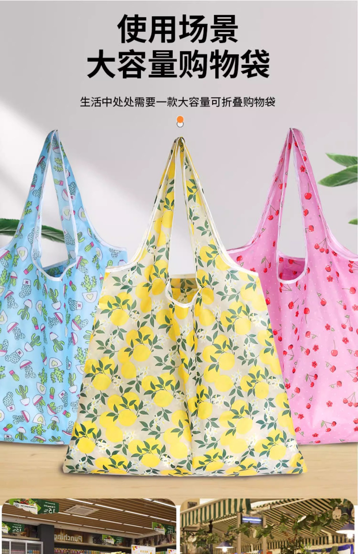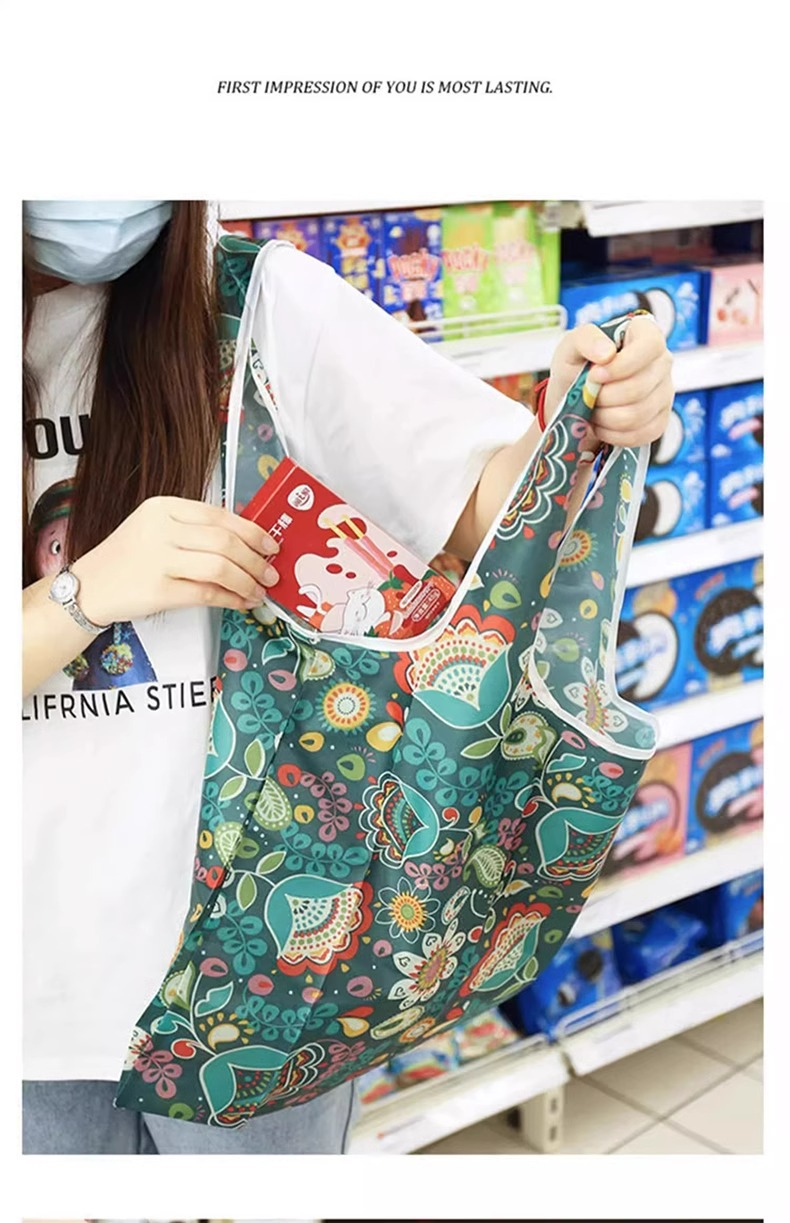 便携超市购物袋加大加厚可折叠杂物收纳袋环保材质印花买菜手提袋 English | 投诉