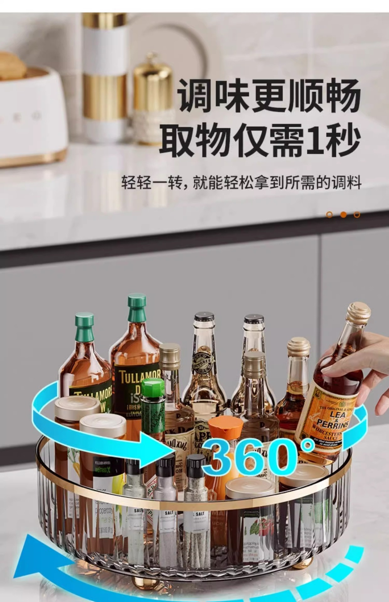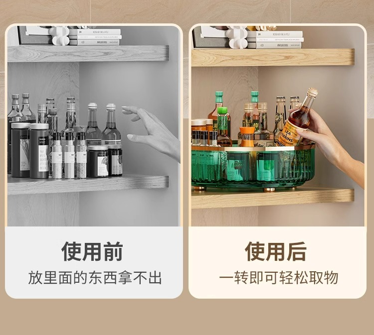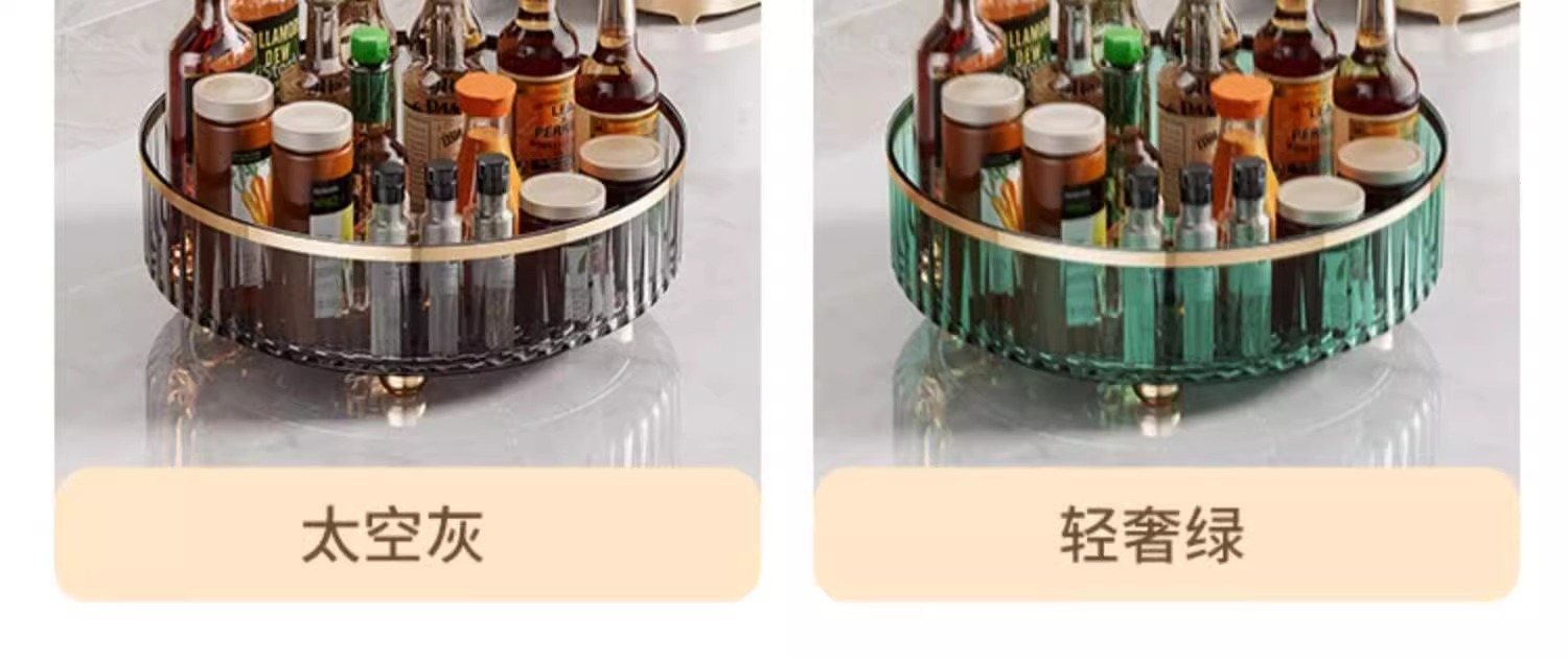 轻奢厨房360旋转置物架台面透明多功能收纳整理架调料佐料收纳盒 English | 投诉