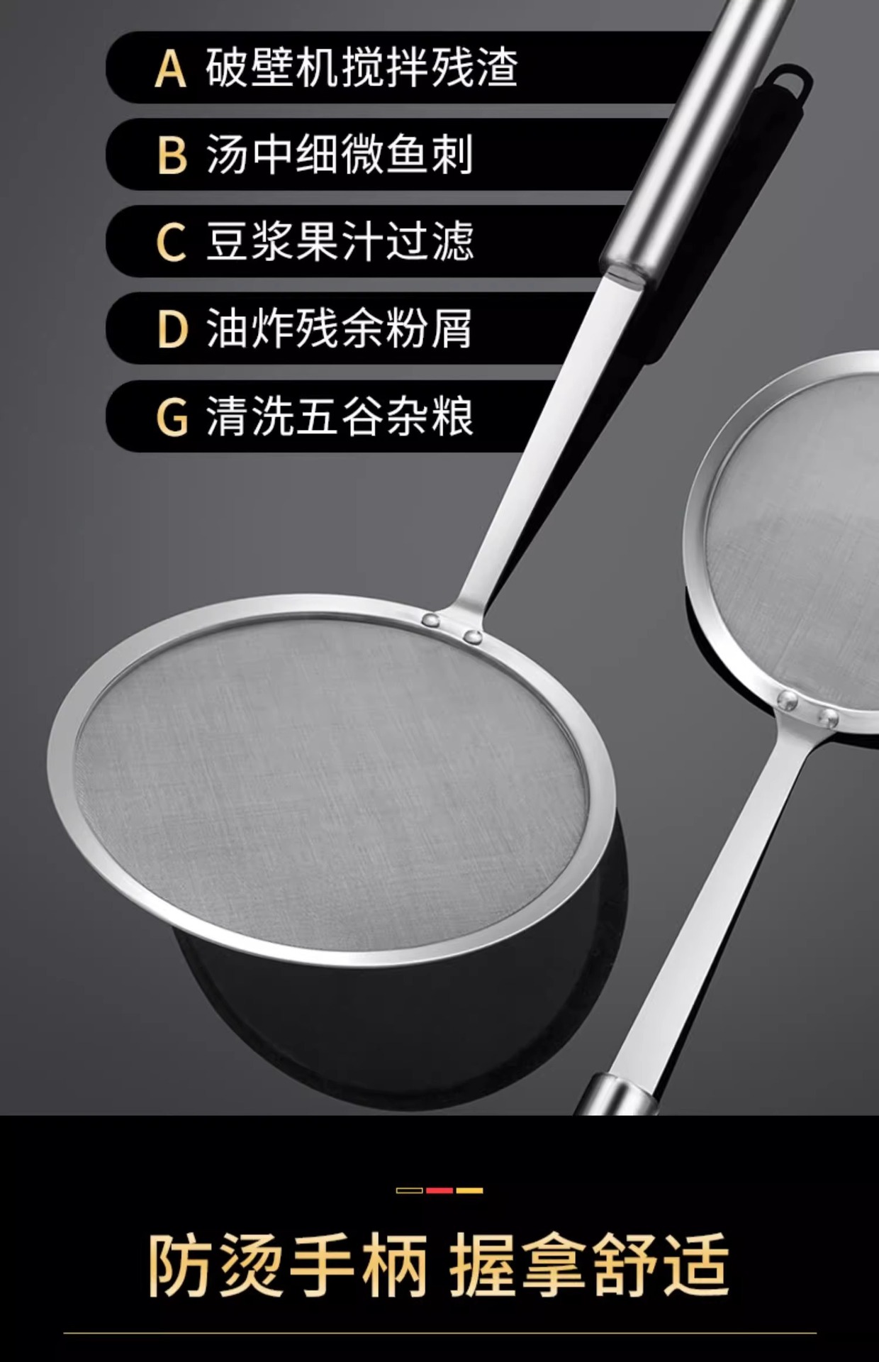 厨房不锈钢打沫勺过滤网筛煲汤撇浮沫隔油勺家用厨房大号隔渣捞沫 English | 投诉