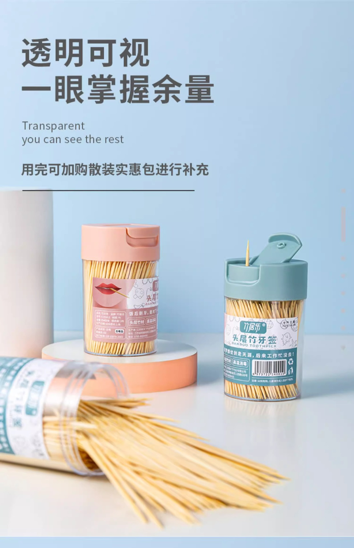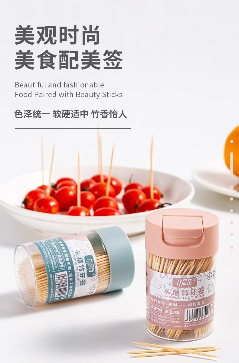 竹牙签家用一次性剔牙专用竹签盒装酒店餐厅商用便携细牙签筒批发 English | 投诉
