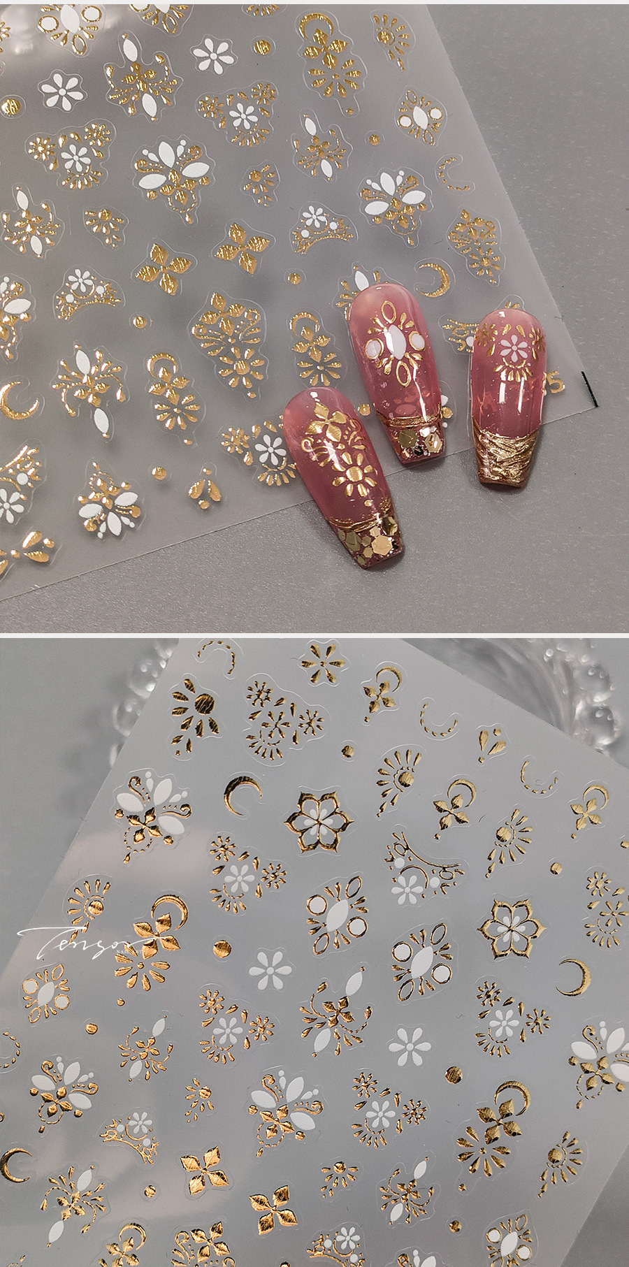 TENSOR新工艺精致小花磨砂美甲贴纸ins美甲贴烫金系列M-255 English | 投诉