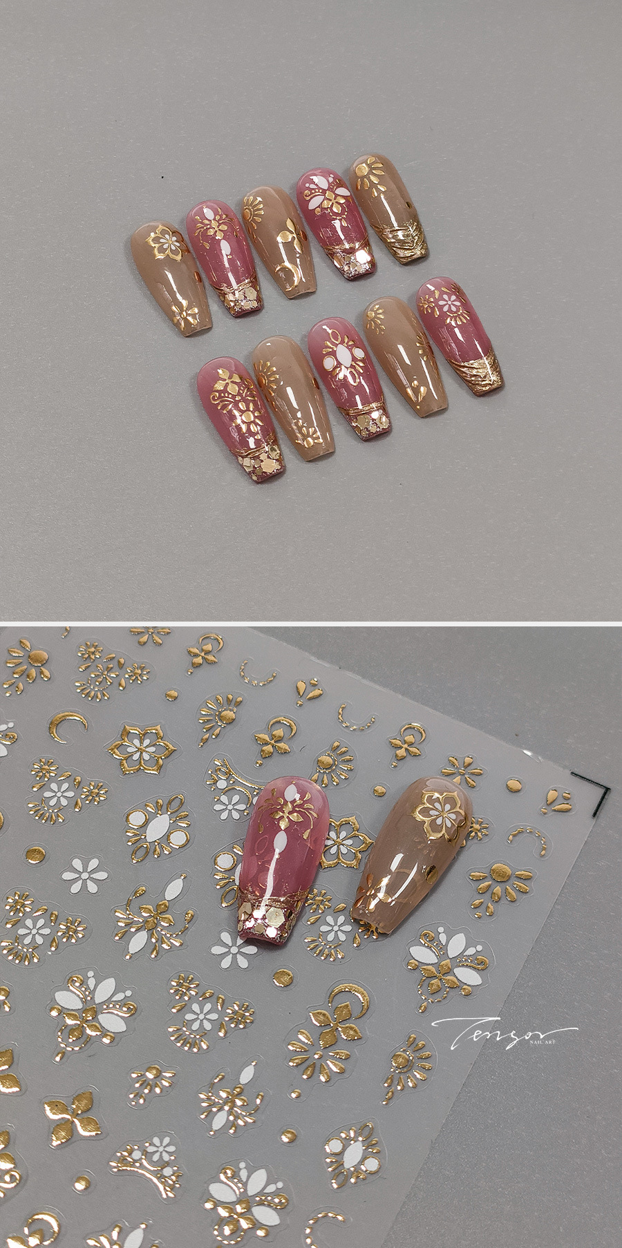 TENSOR新工艺精致小花磨砂美甲贴纸ins美甲贴烫金系列M-255
