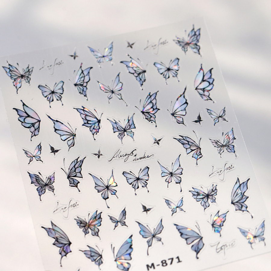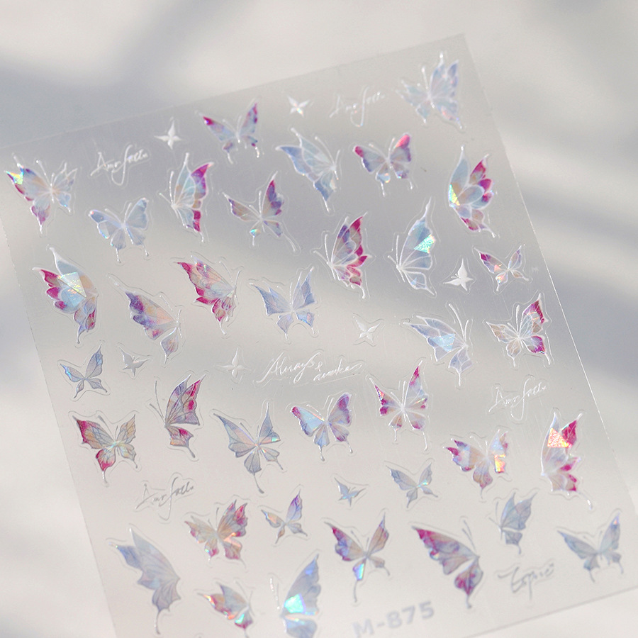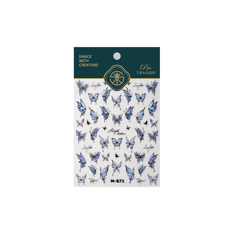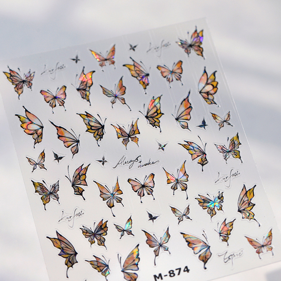 TENSOR新工艺烫金爆款淡雅蝴蝶M-871背胶冰透极光玻璃碎美甲贴纸 English | 投诉