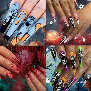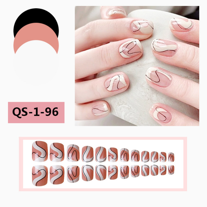 源头工厂直销美拉德穿戴甲杏仁甲黑白线条波浪纹美甲跨境甲片成品 English | 投诉