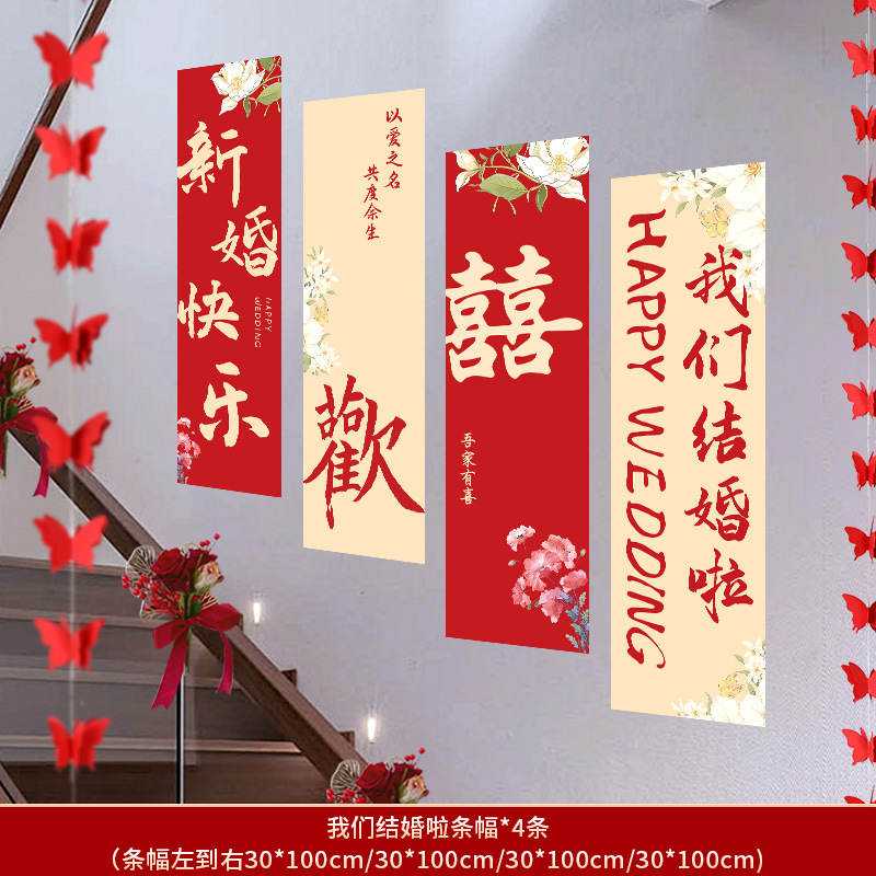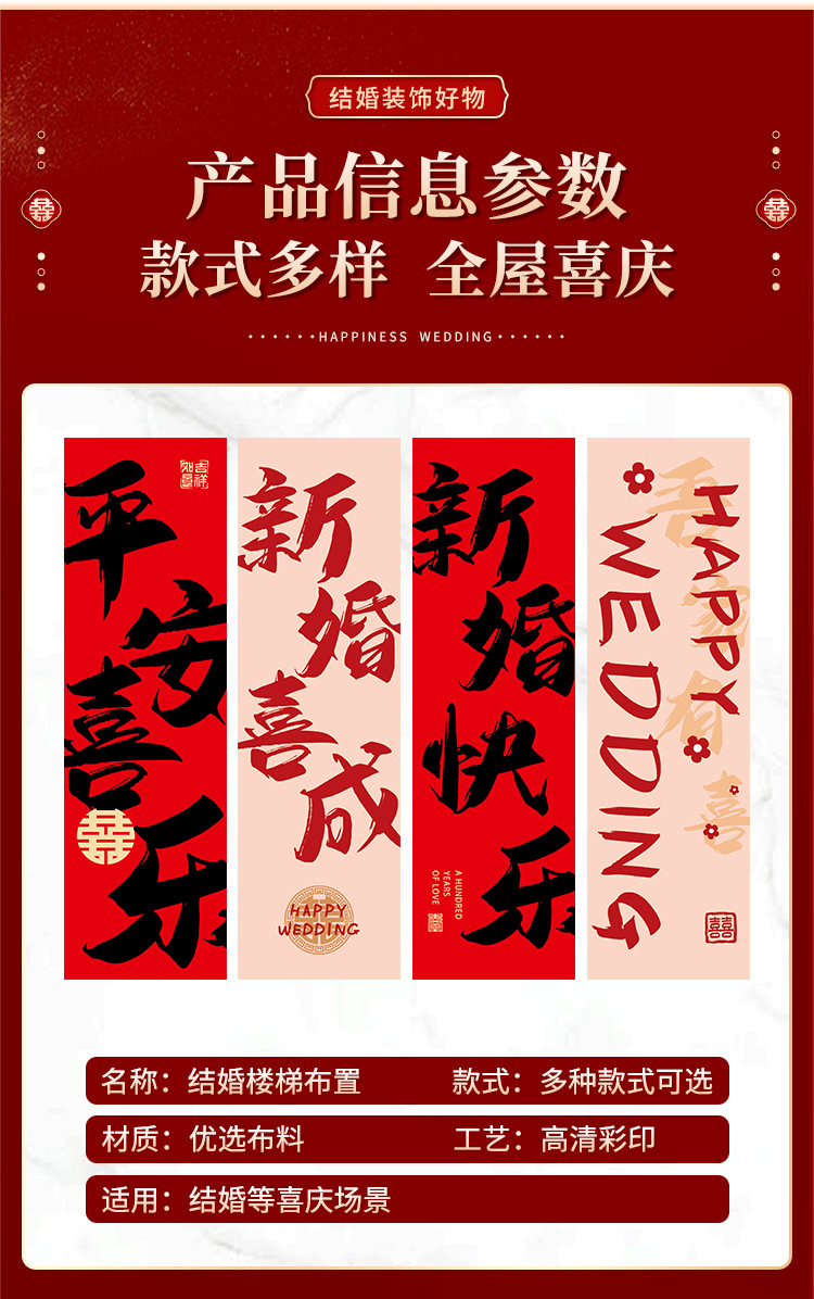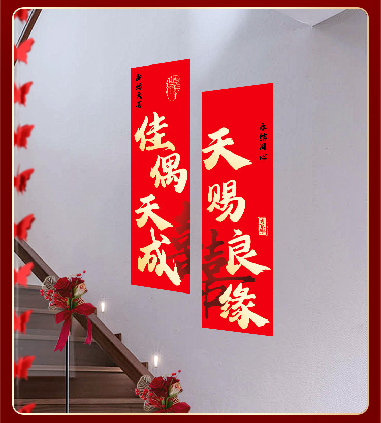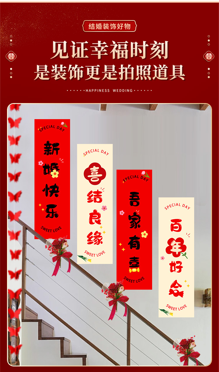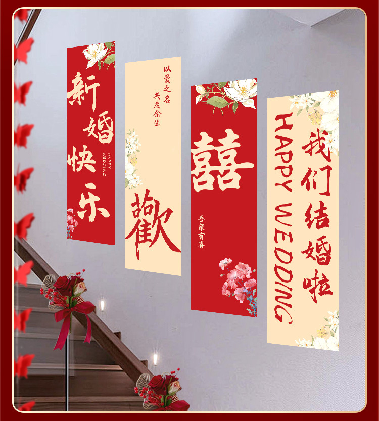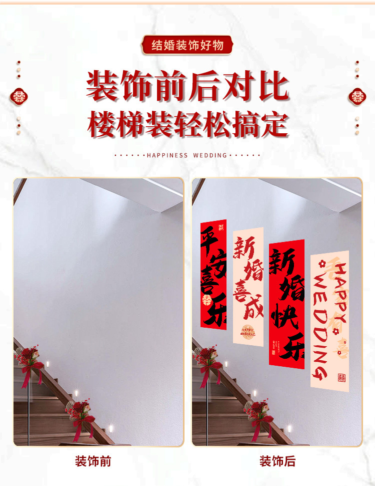 婚房布置套装楼梯喜字挂布条幅结婚礼农村自建房楼梯扶手背景装饰 English | 投诉