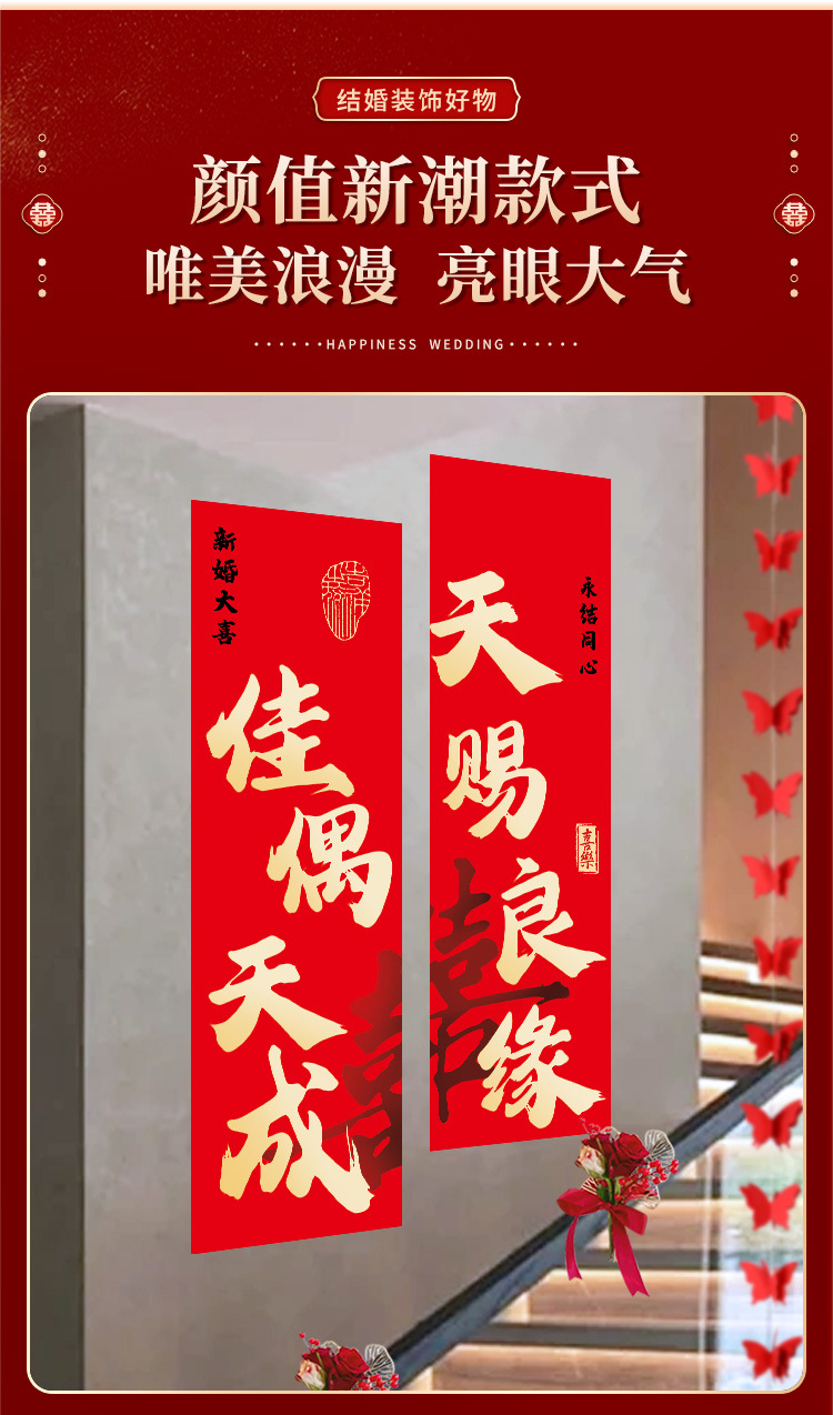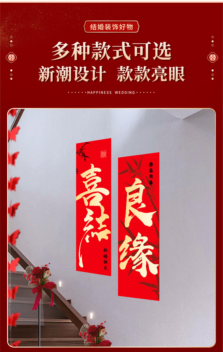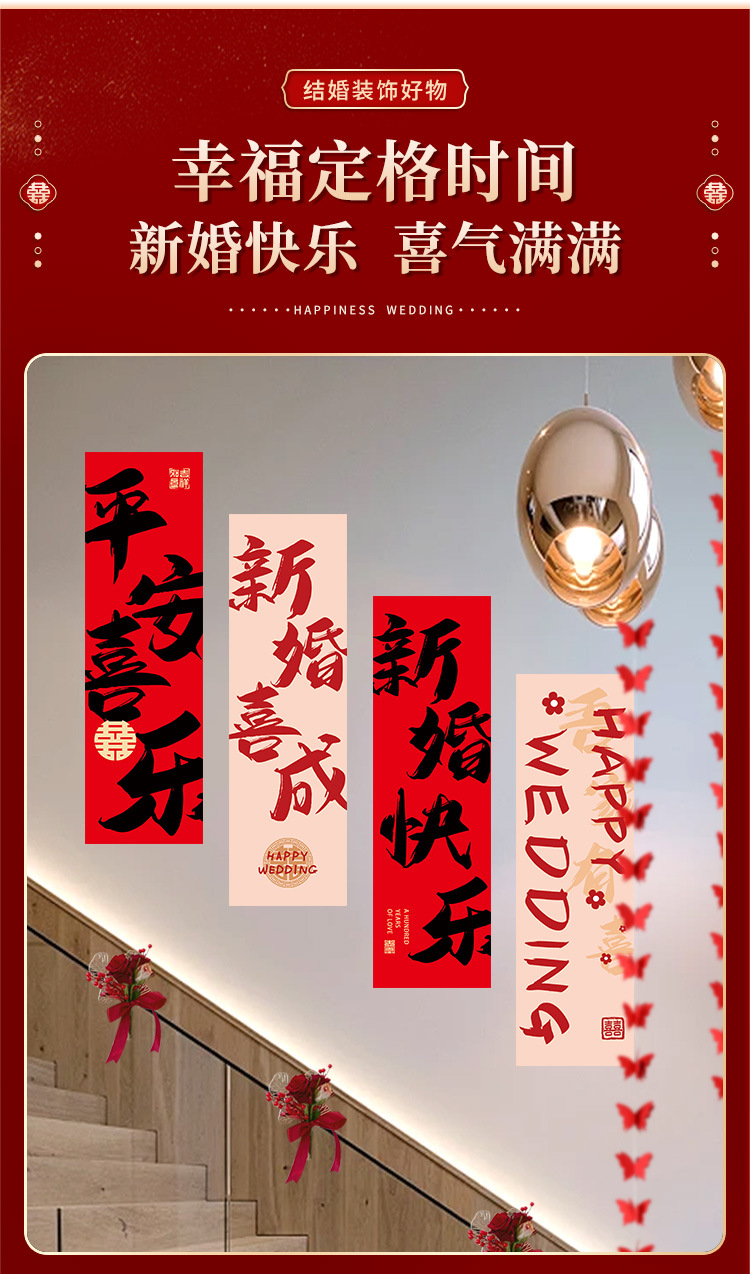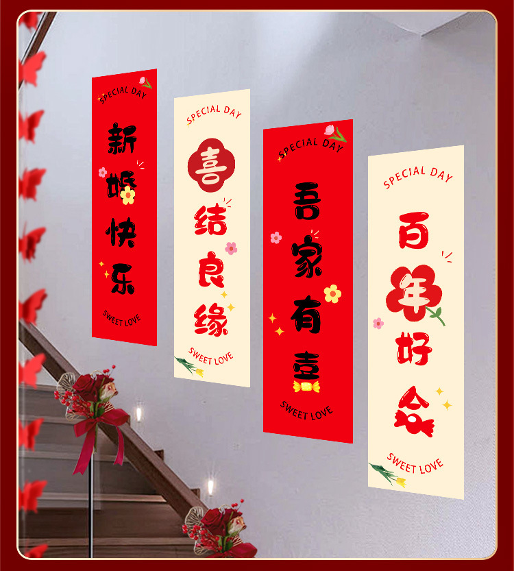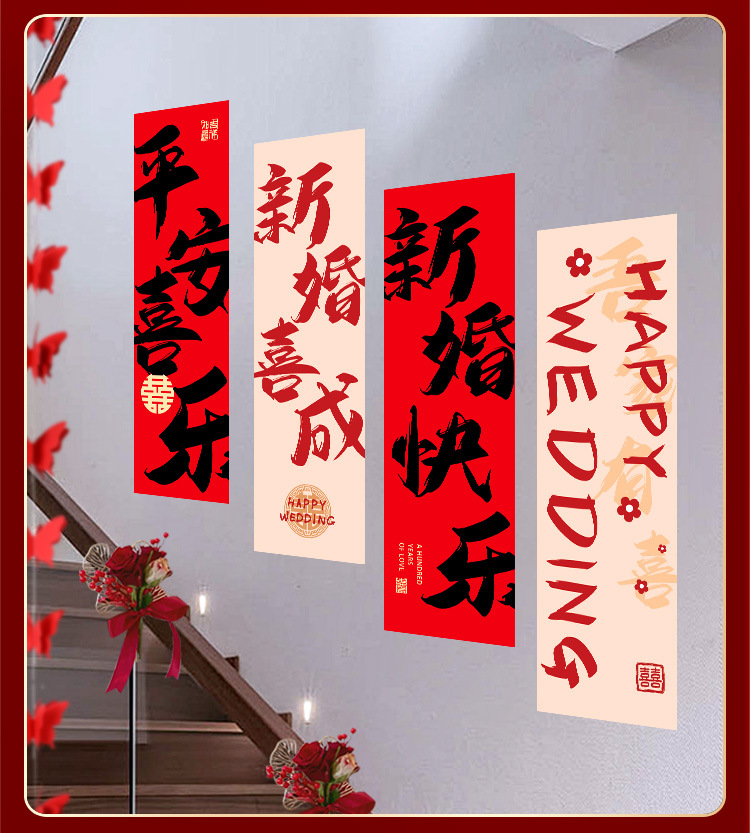 婚房布置套装楼梯喜字挂布条幅结婚礼农村自建房楼梯扶手背景装饰 English | 投诉