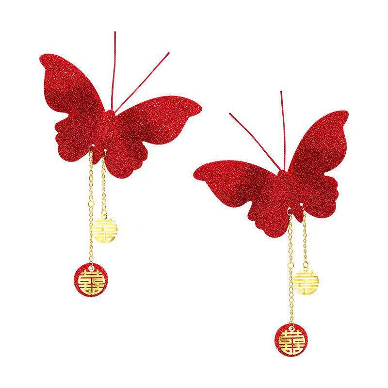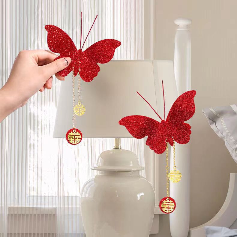 结婚立体仿真红色蝴蝶婚房装饰卧室客厅开关贴背景墙布置婚庆用品