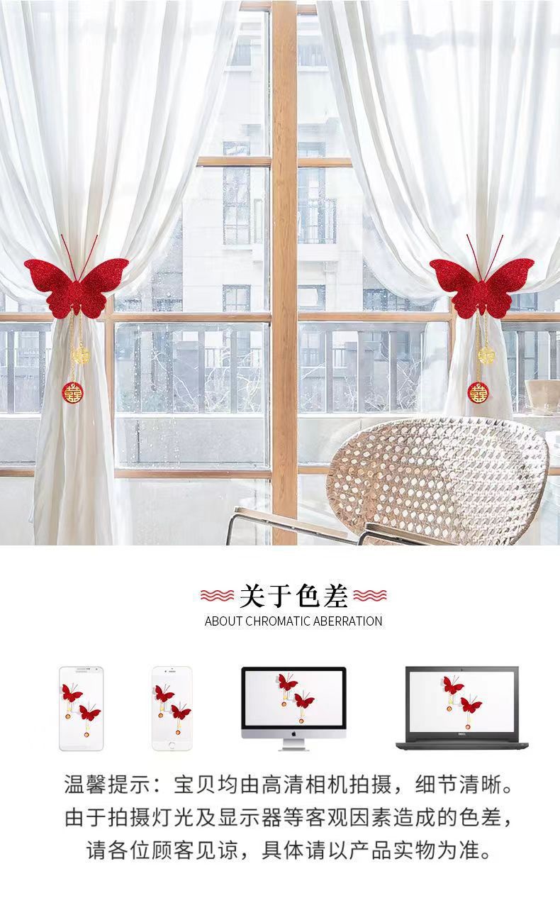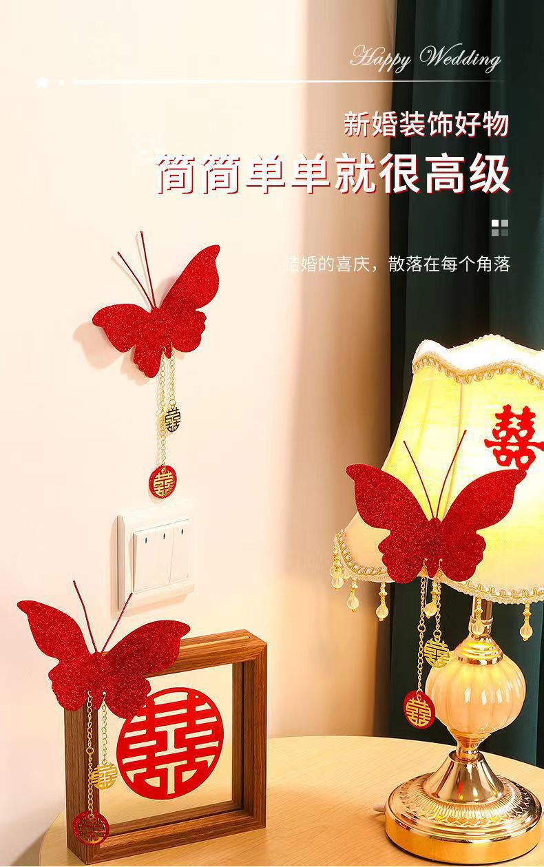 结婚立体仿真红色蝴蝶婚房装饰卧室客厅开关贴背景墙布置婚庆用品 English | 投诉