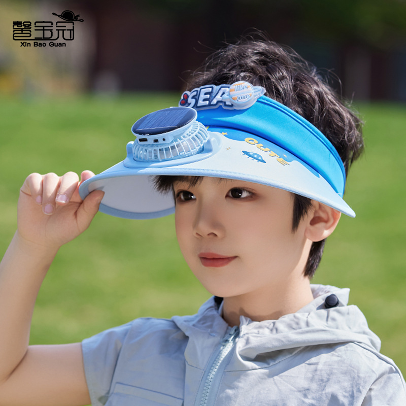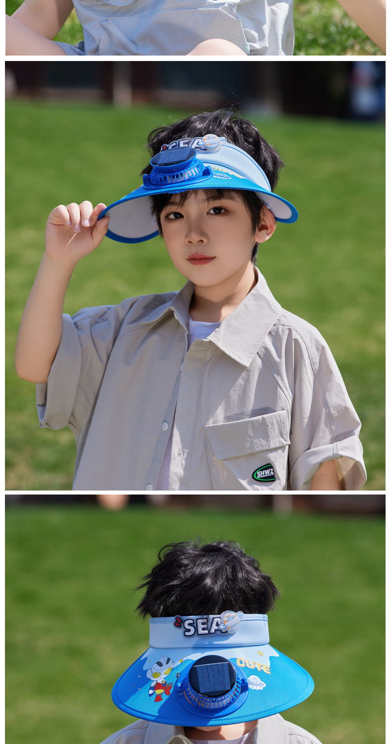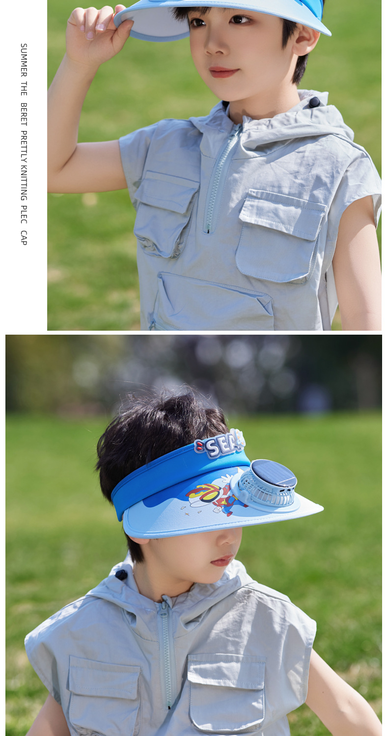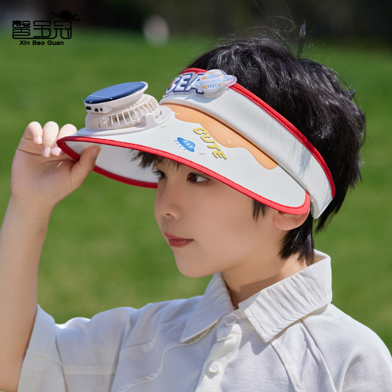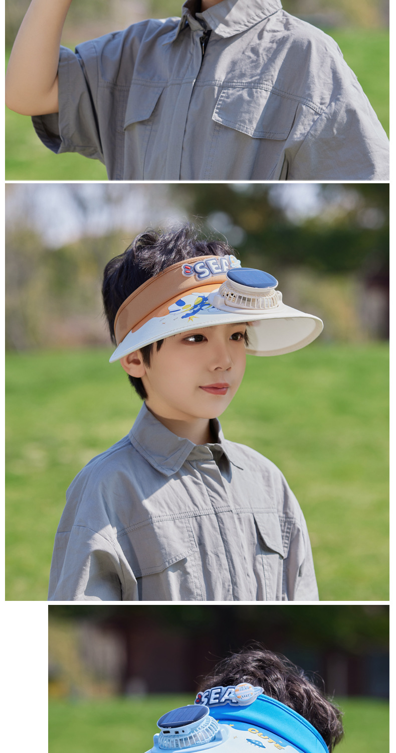 夏季儿童帽子大檐太阳能风扇帽户外出游遮阳防晒帽卡通可爱空顶帽 English | 投诉