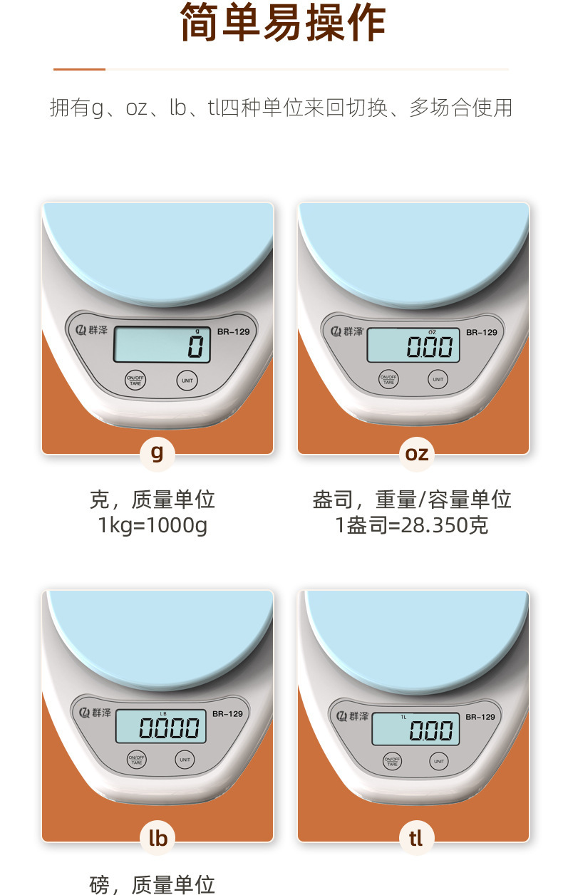 1. 称重单位: g, oz, lb
