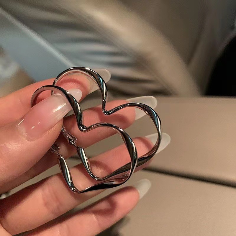 爱心大耳圈金属质感扭曲耳饰品欧美ins冷淡风极简显脸小耳钉批发