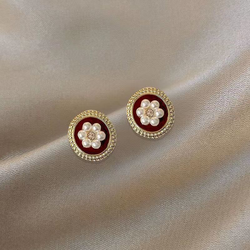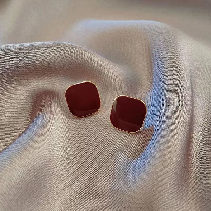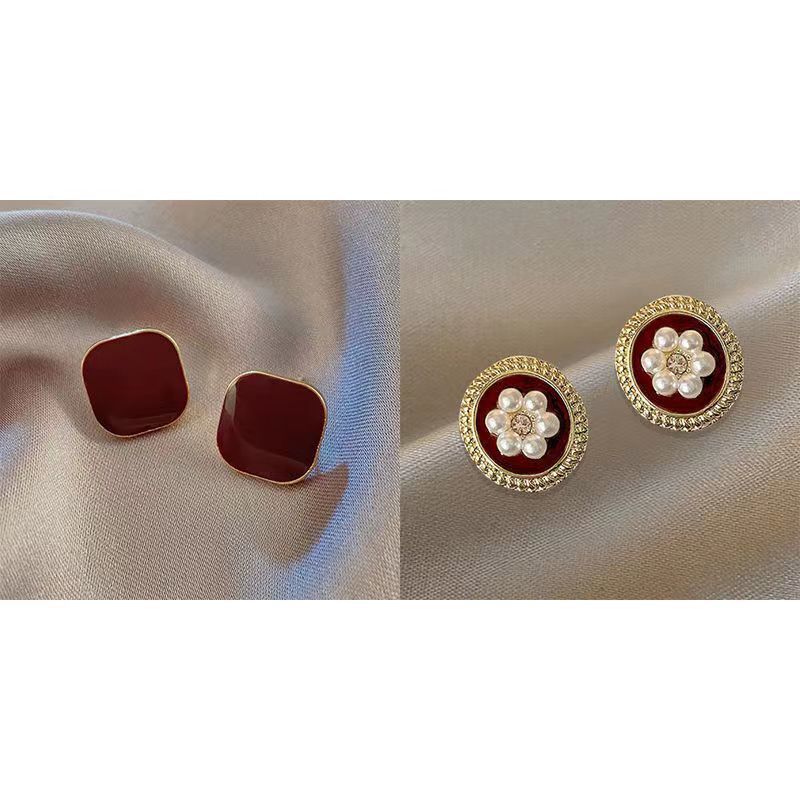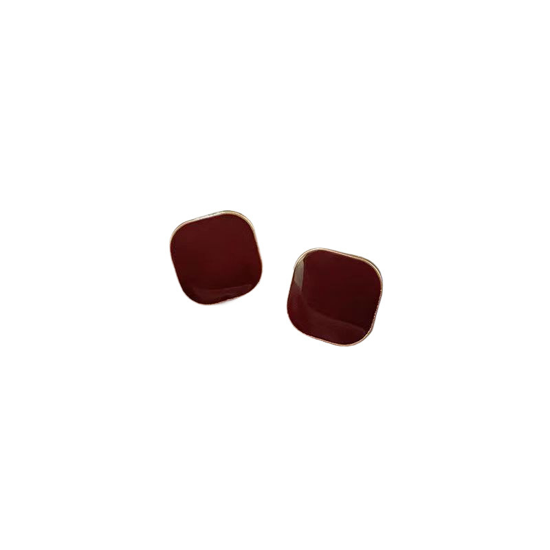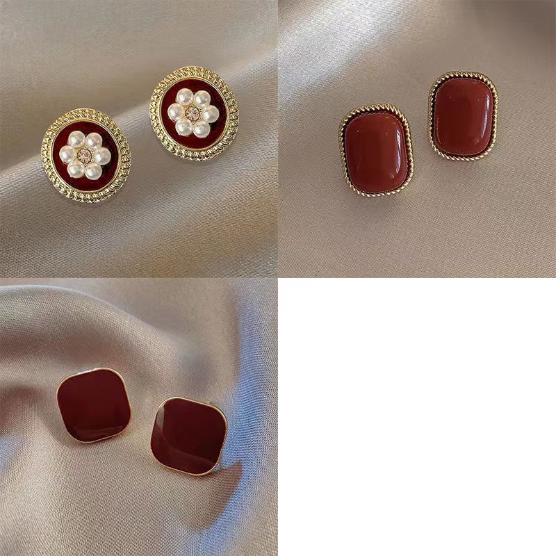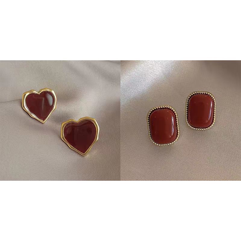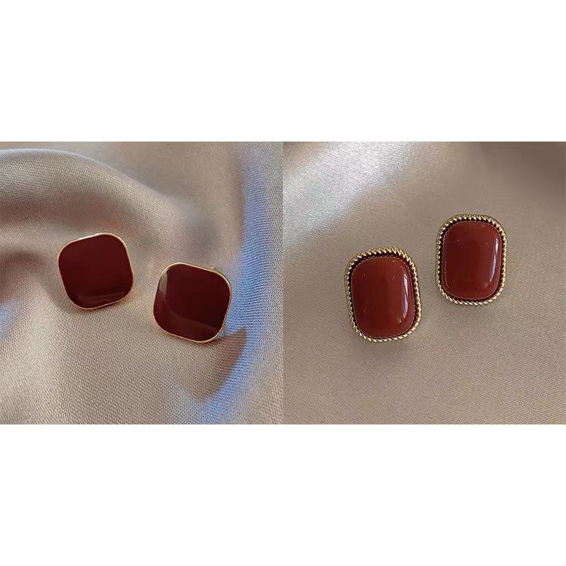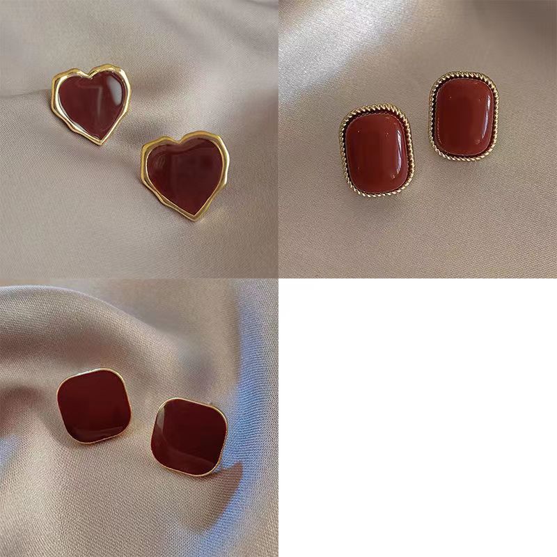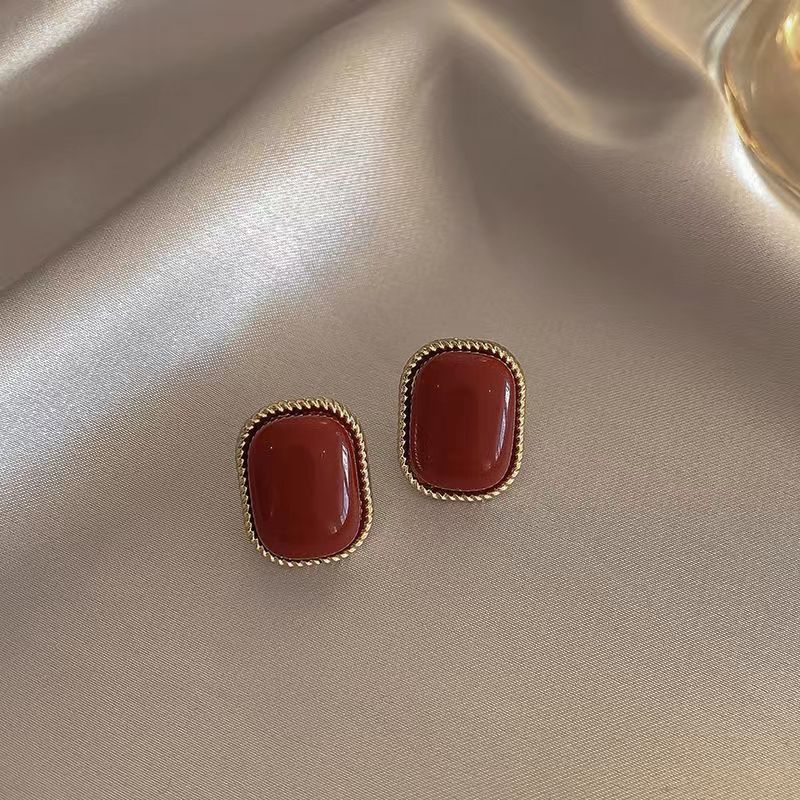 小众设计酒红复古港风耳钉女2024年新款潮气质百搭红色耳饰批发 投诉