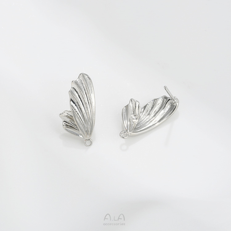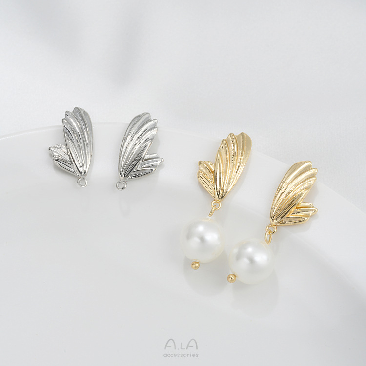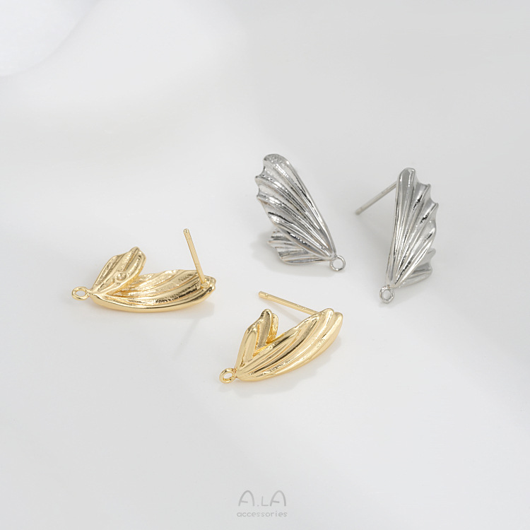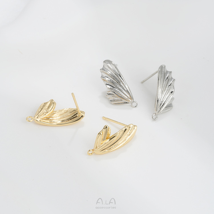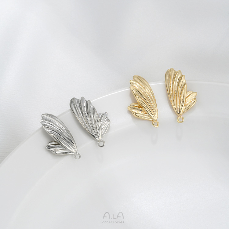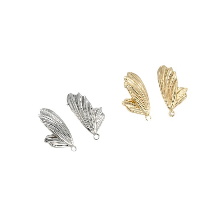 保色14K包金蝴蝶翅膀耳钉925银针带吊环diy手作耳饰材料耳环配件
