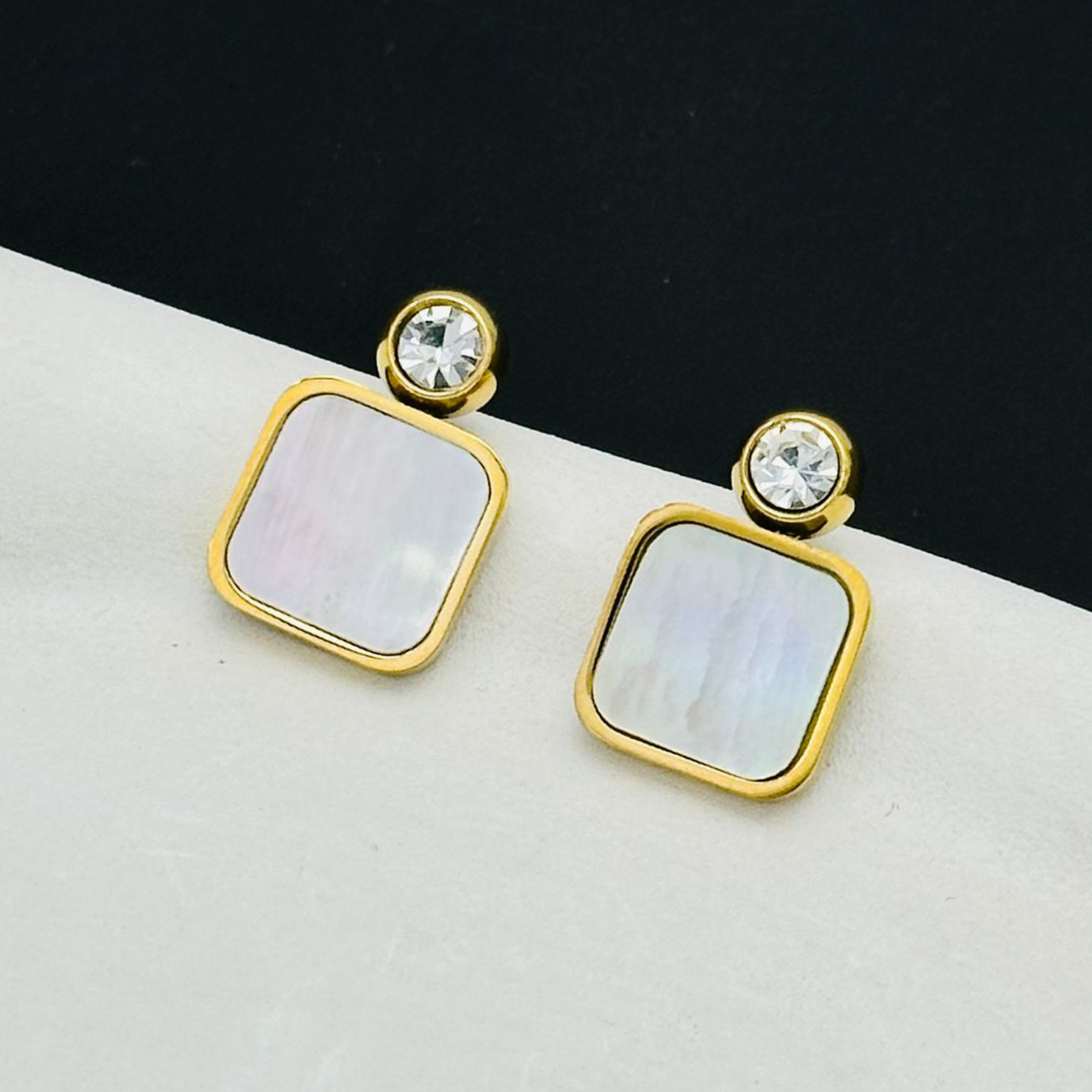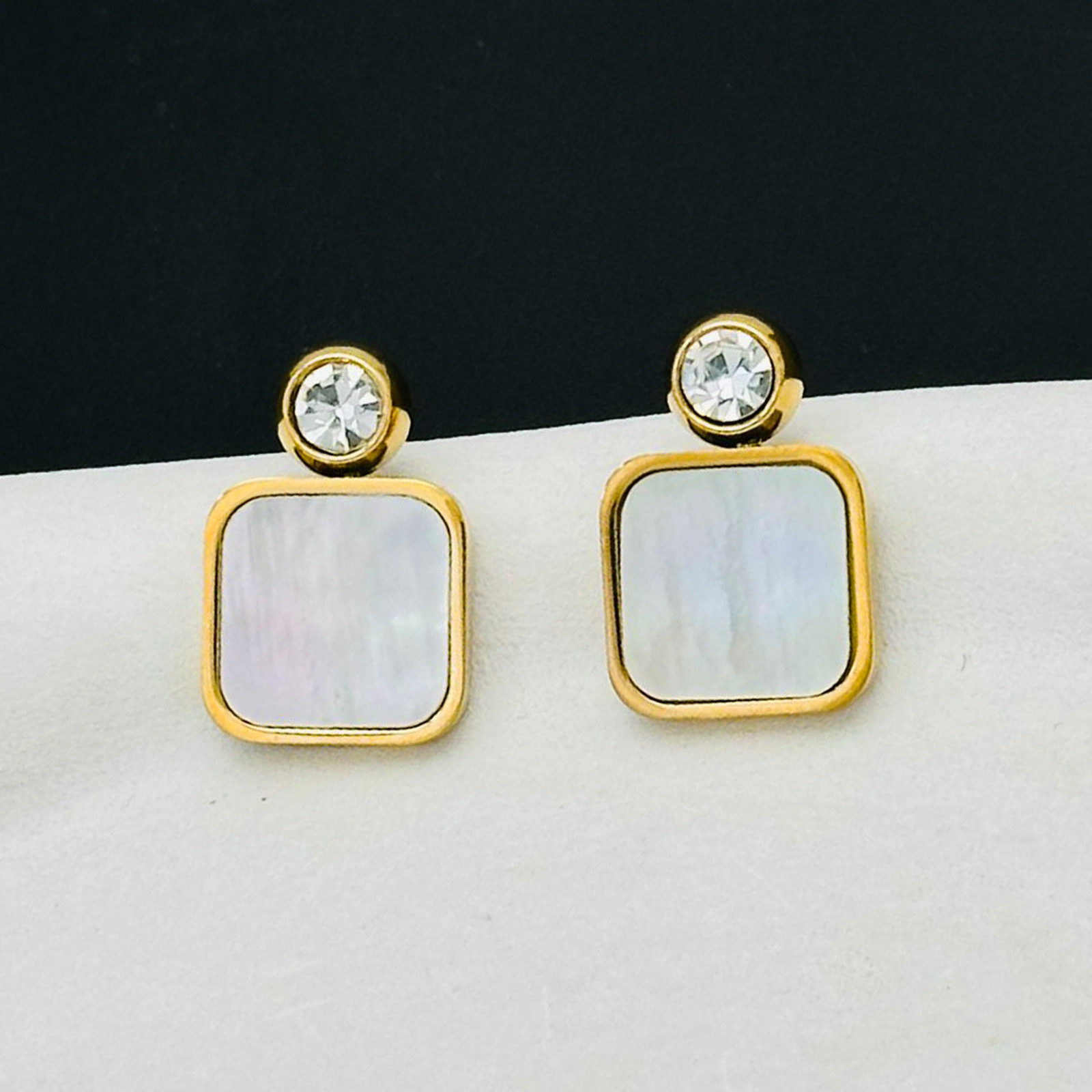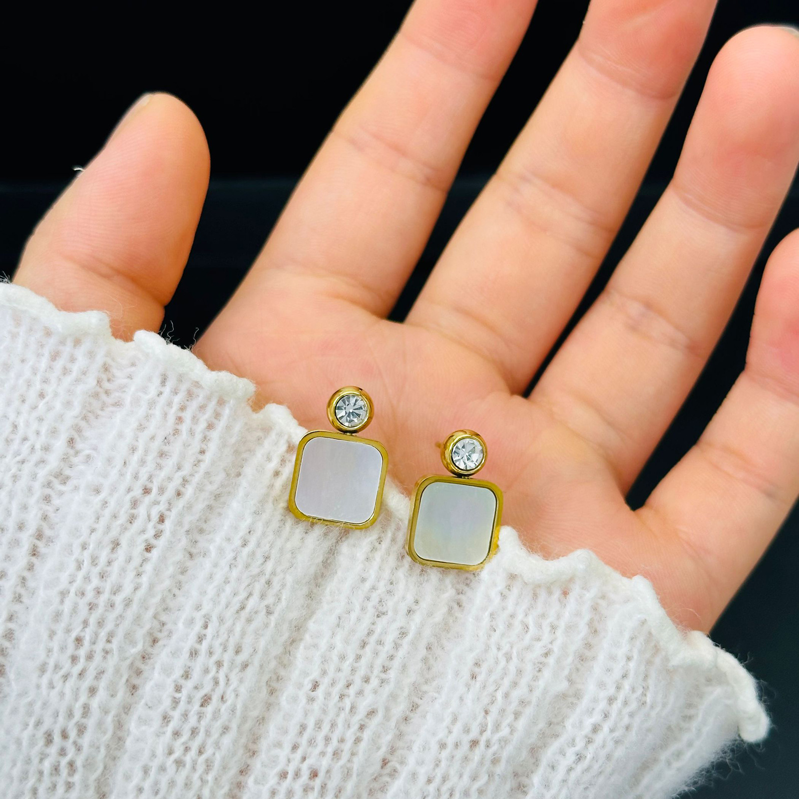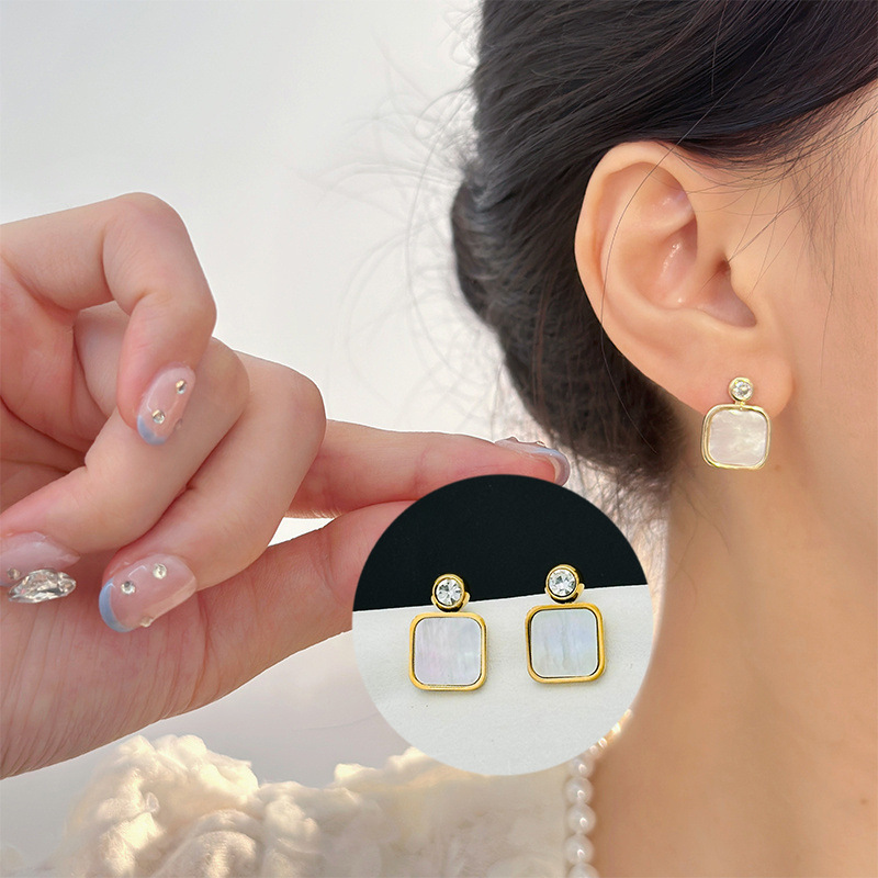 白贝耳钉镶钻女钛钢金色个性百搭潮人不掉色简约跨境重工金属饰品 投诉