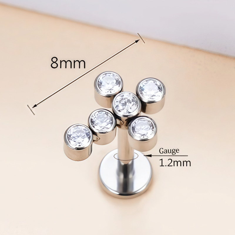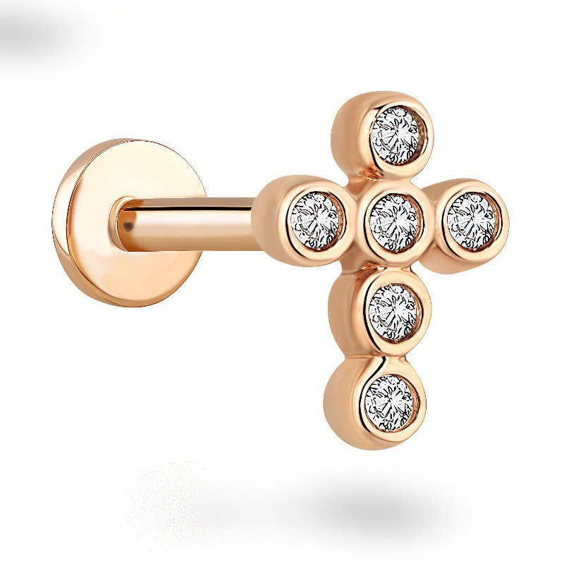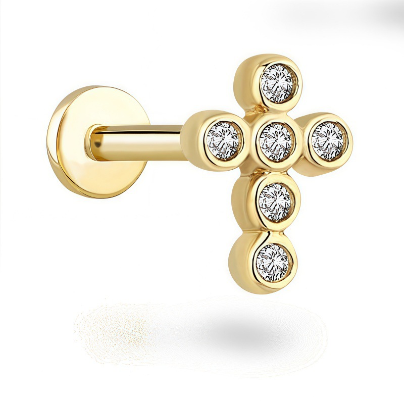 316不锈钢十字架水晶钻唇钉钛钢朋克内螺纹耳钉耳骨钉耳骨钉耳饰
