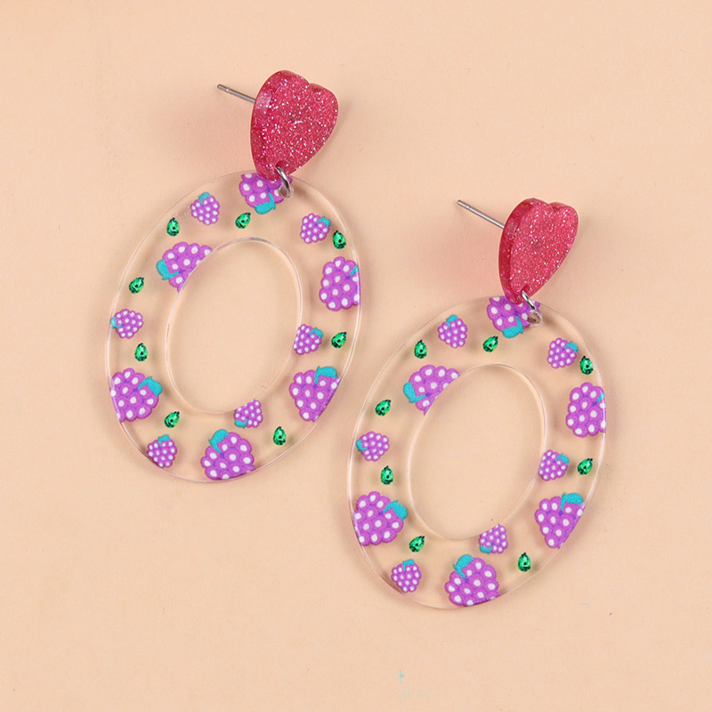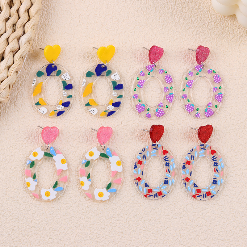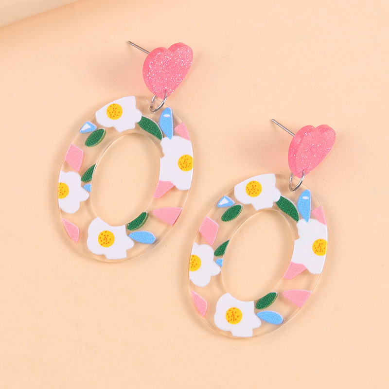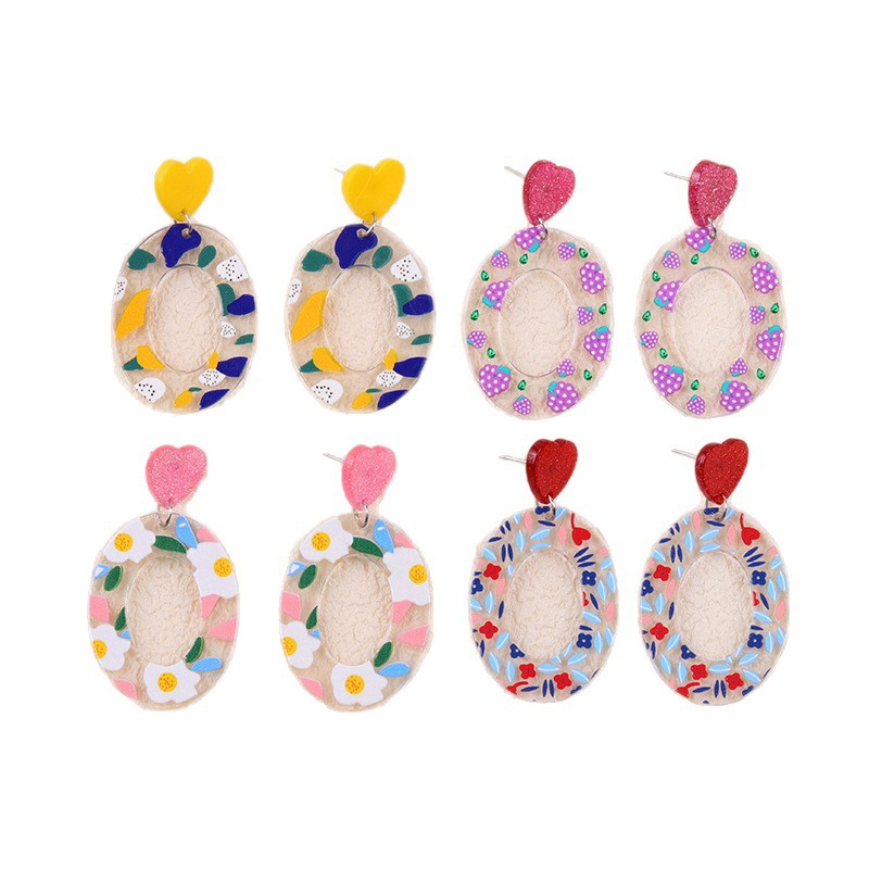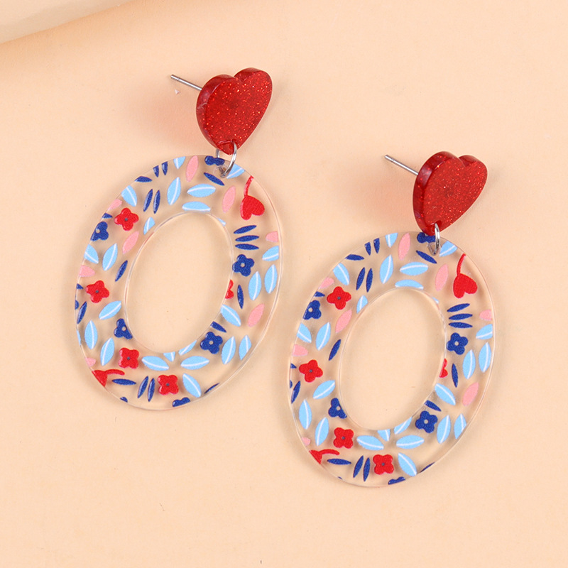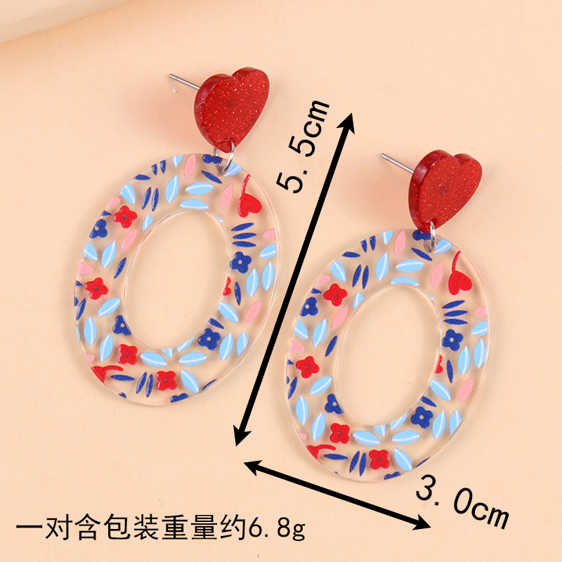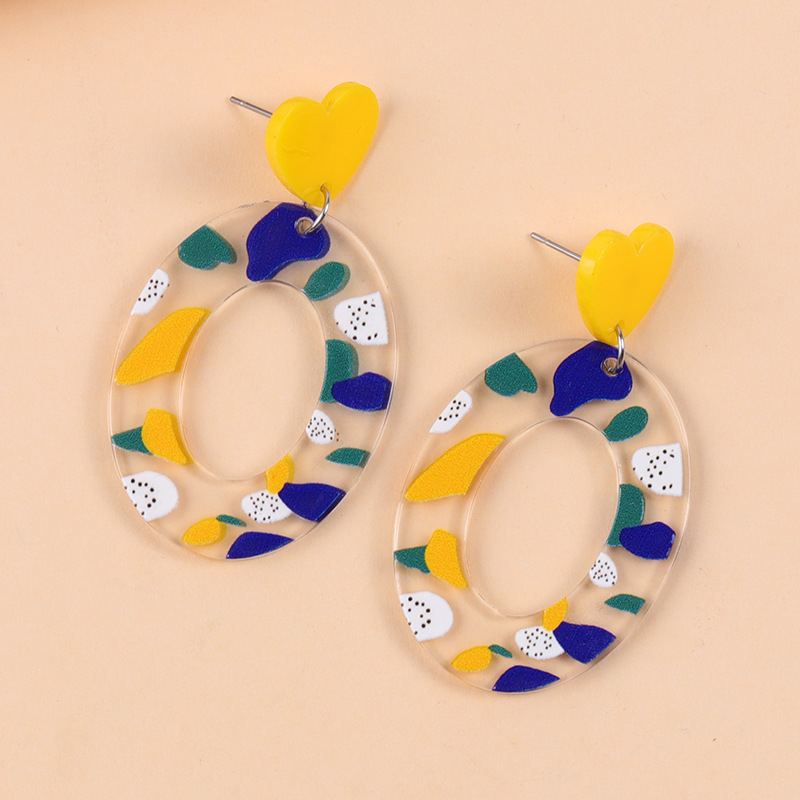 小清新甜美爱心耳钉撞色几何印花亚克力耳环时尚田园风耳坠饰品女